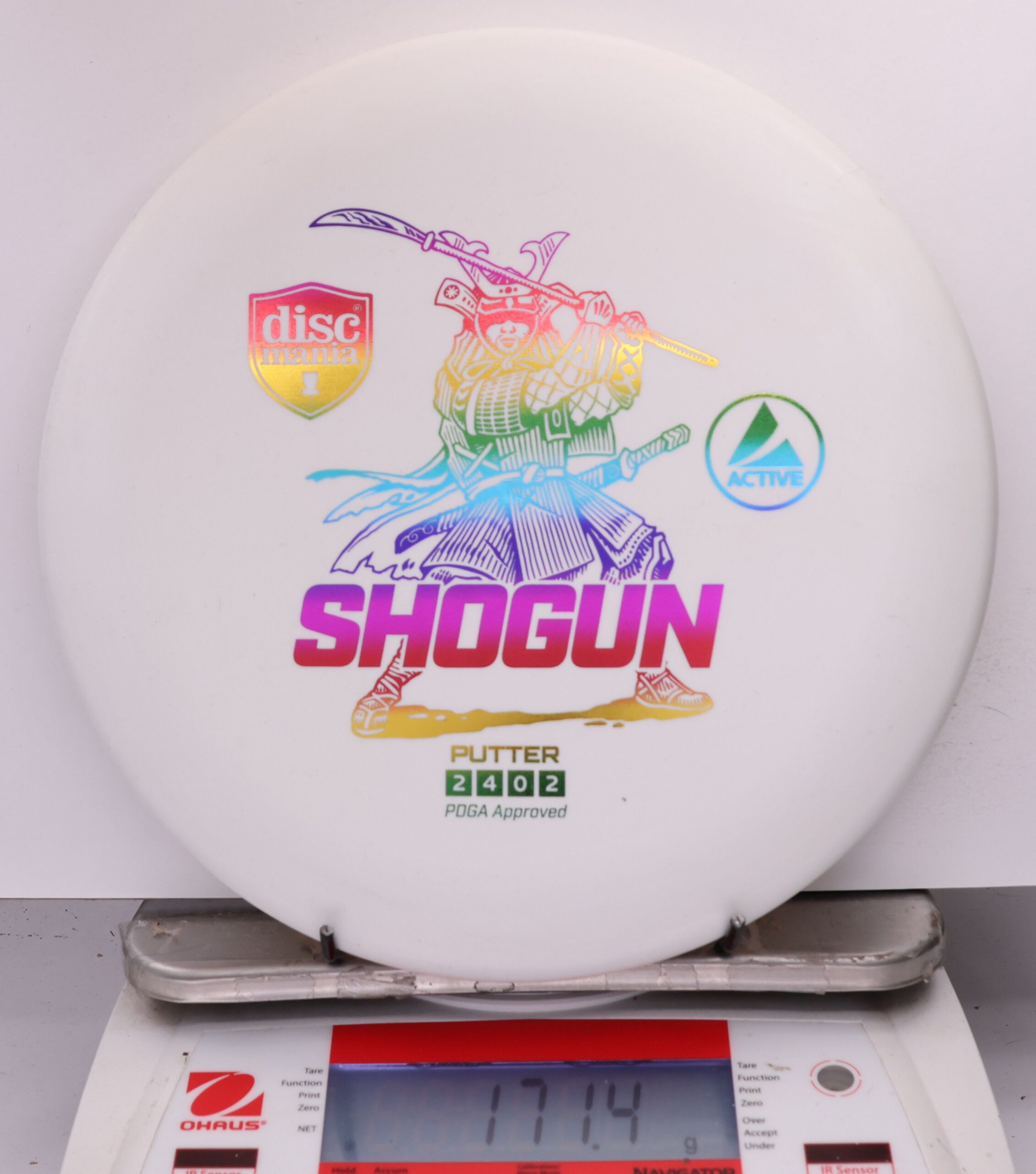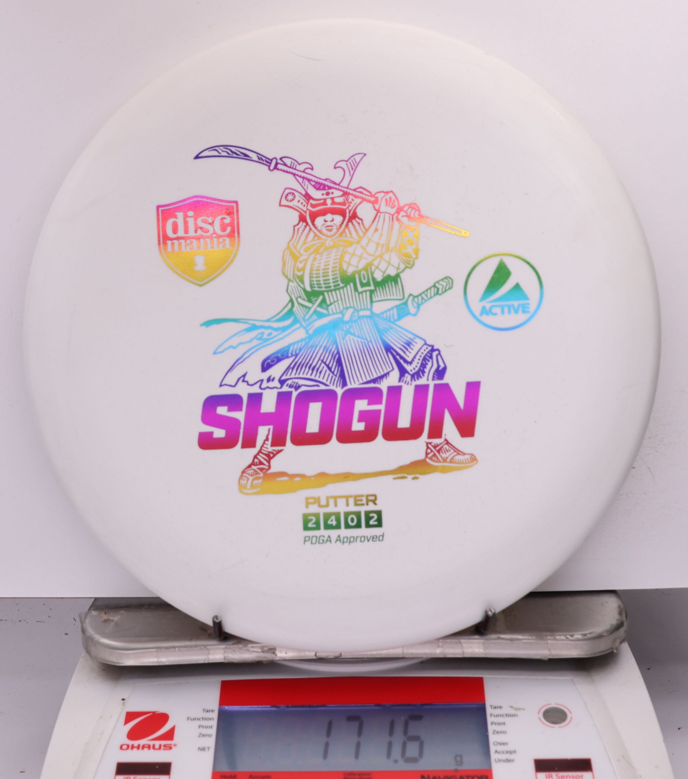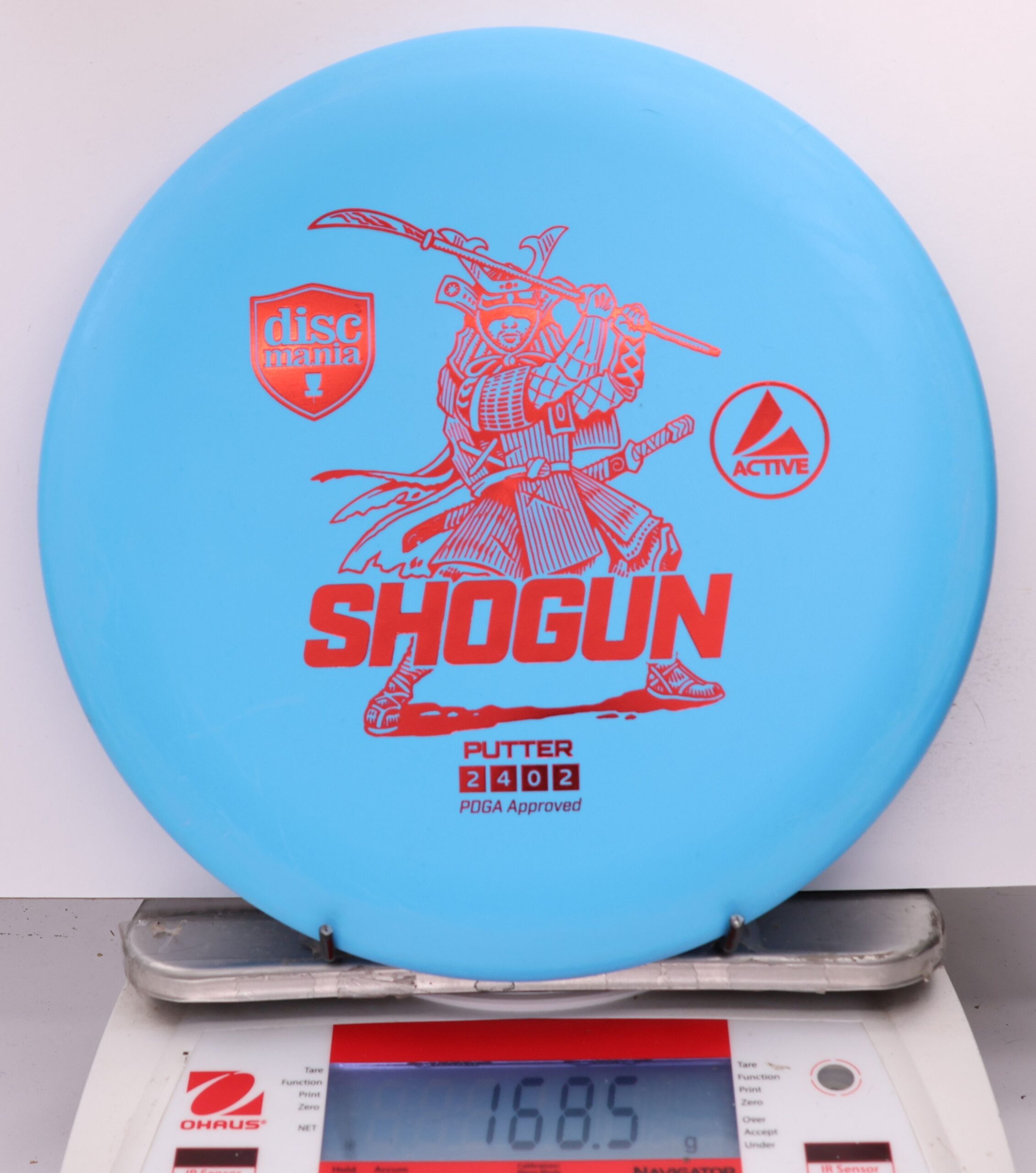 Shogun the first ever beaded putter available in Active Line. Designed to withstand a good amount of power, this deep putter provides a comfortable ergonomic feel and reliable flight when thrown off the tee and for putt/approach. The Shogun will provide relatively straight flight patterns with very minimal low speed fade, allowing it to withstand moderate wind resistance with point-and-shoot accuracy. The Active plastic is the perfect balance between keeping the disc firm as well as soft to the touch meaning the disc always feels comfortable and natural in the hand.