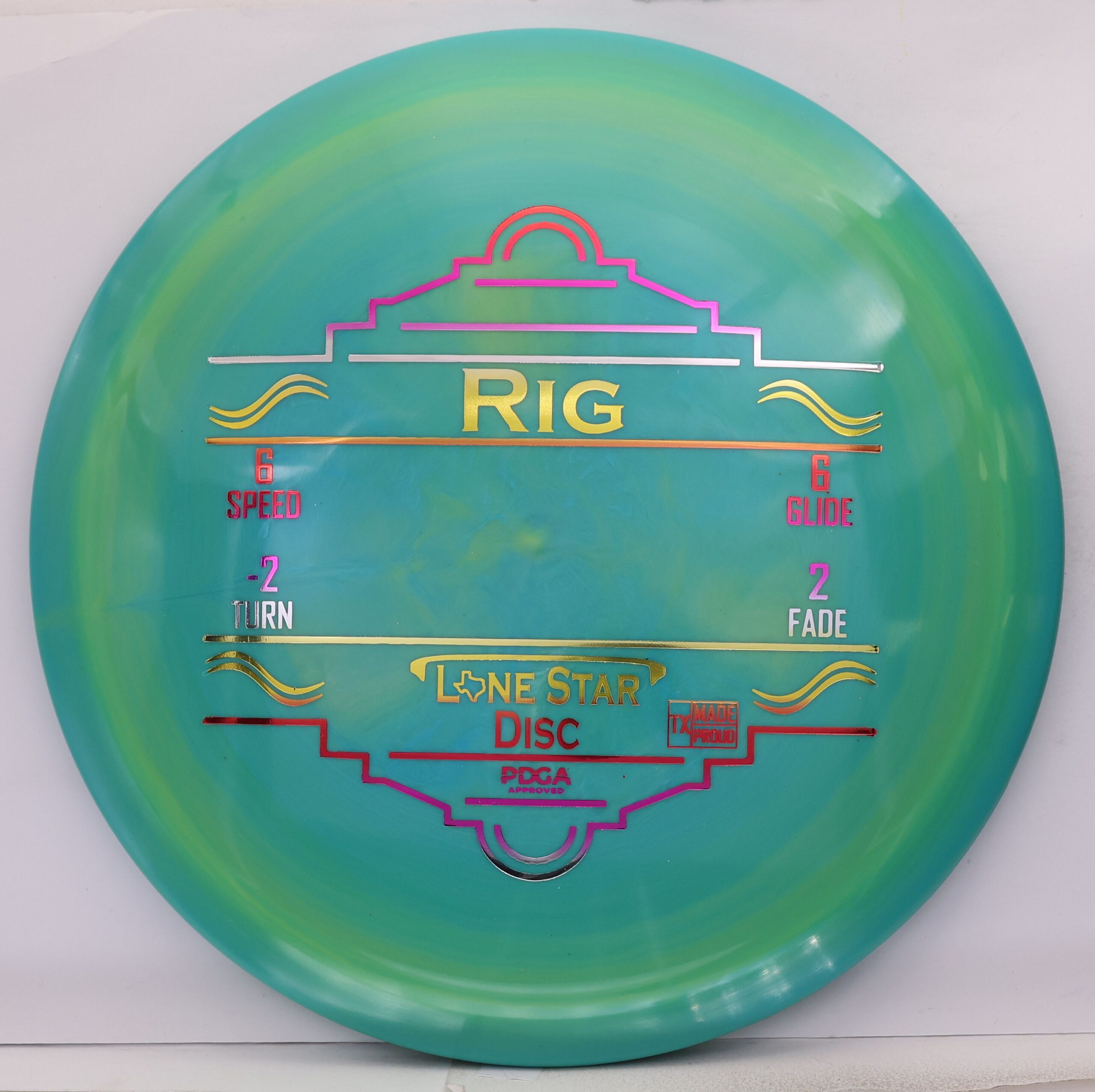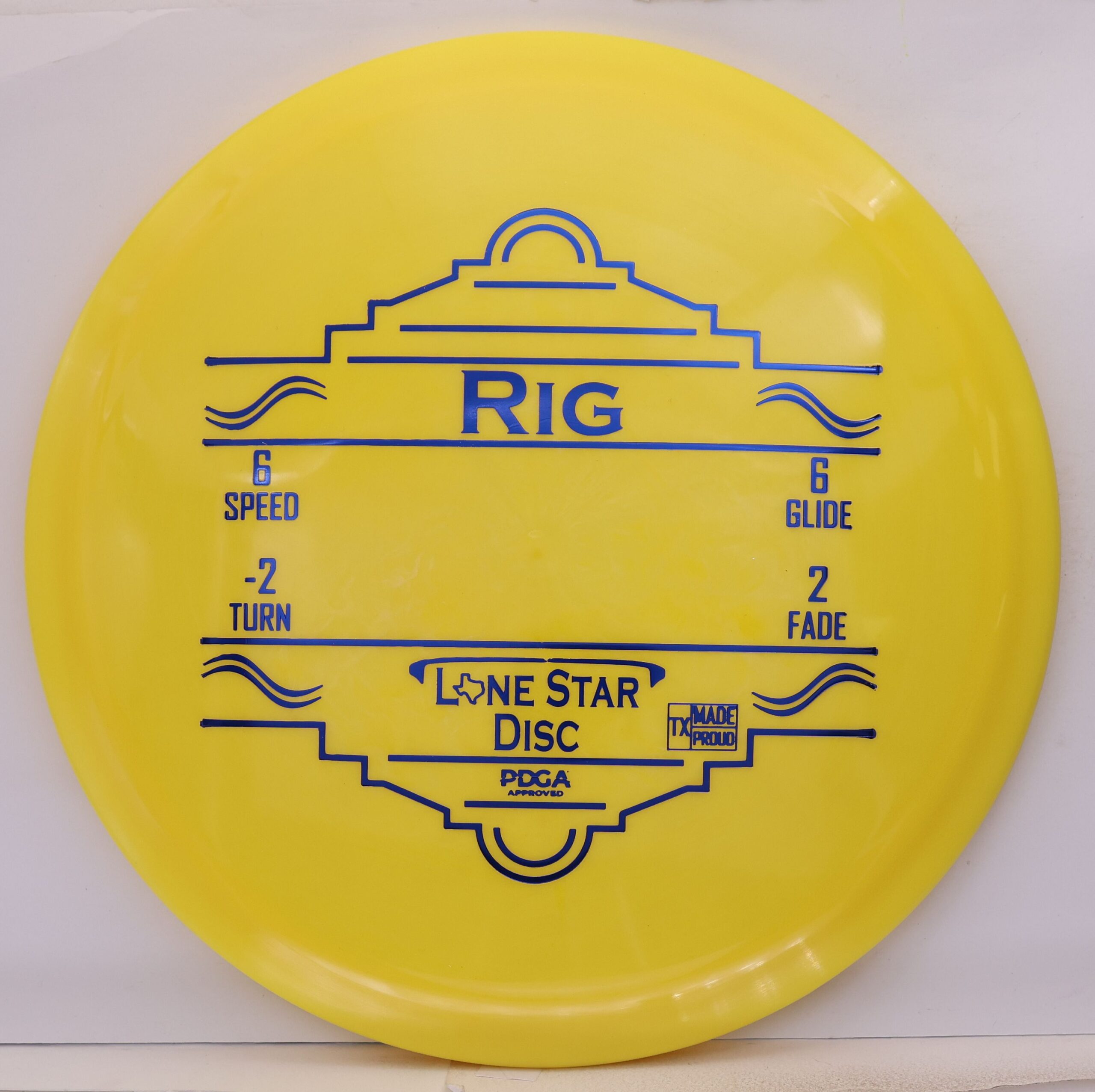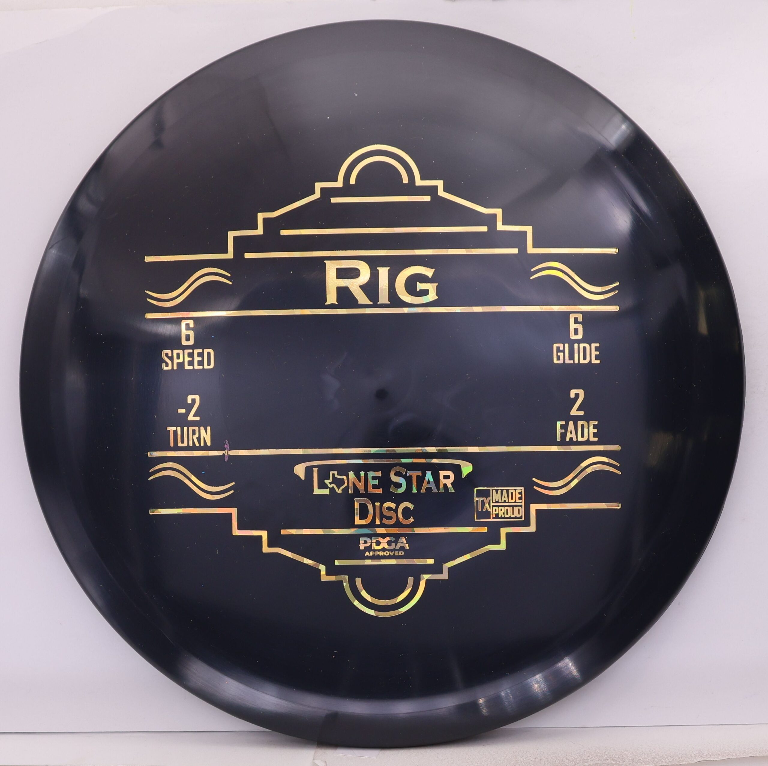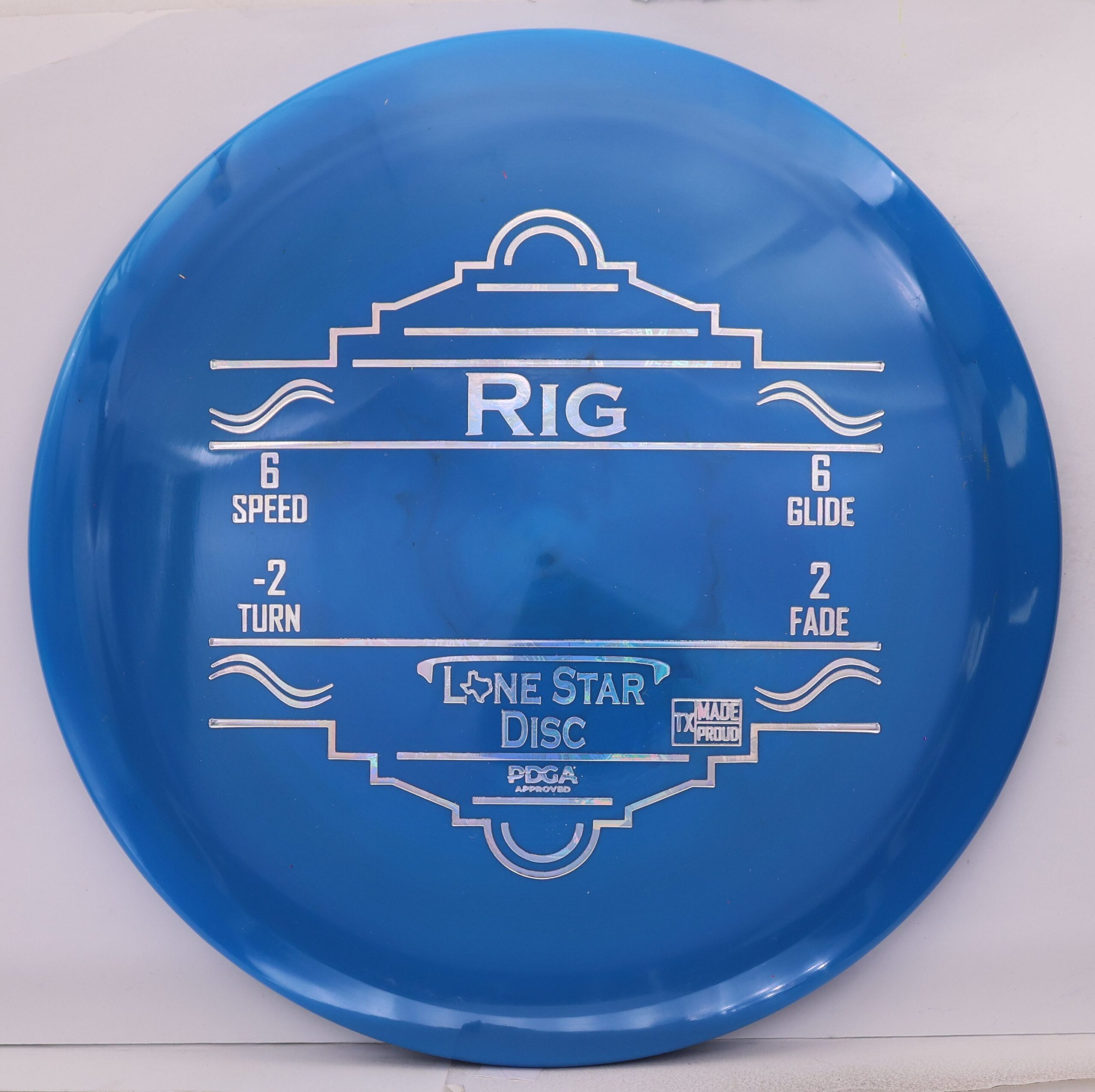 The Lone Star Disc Rig in Alpha plastic is a semi-understable fairway driver with exceptional glide and manageable turn, suited to players at virtually every skill level.
