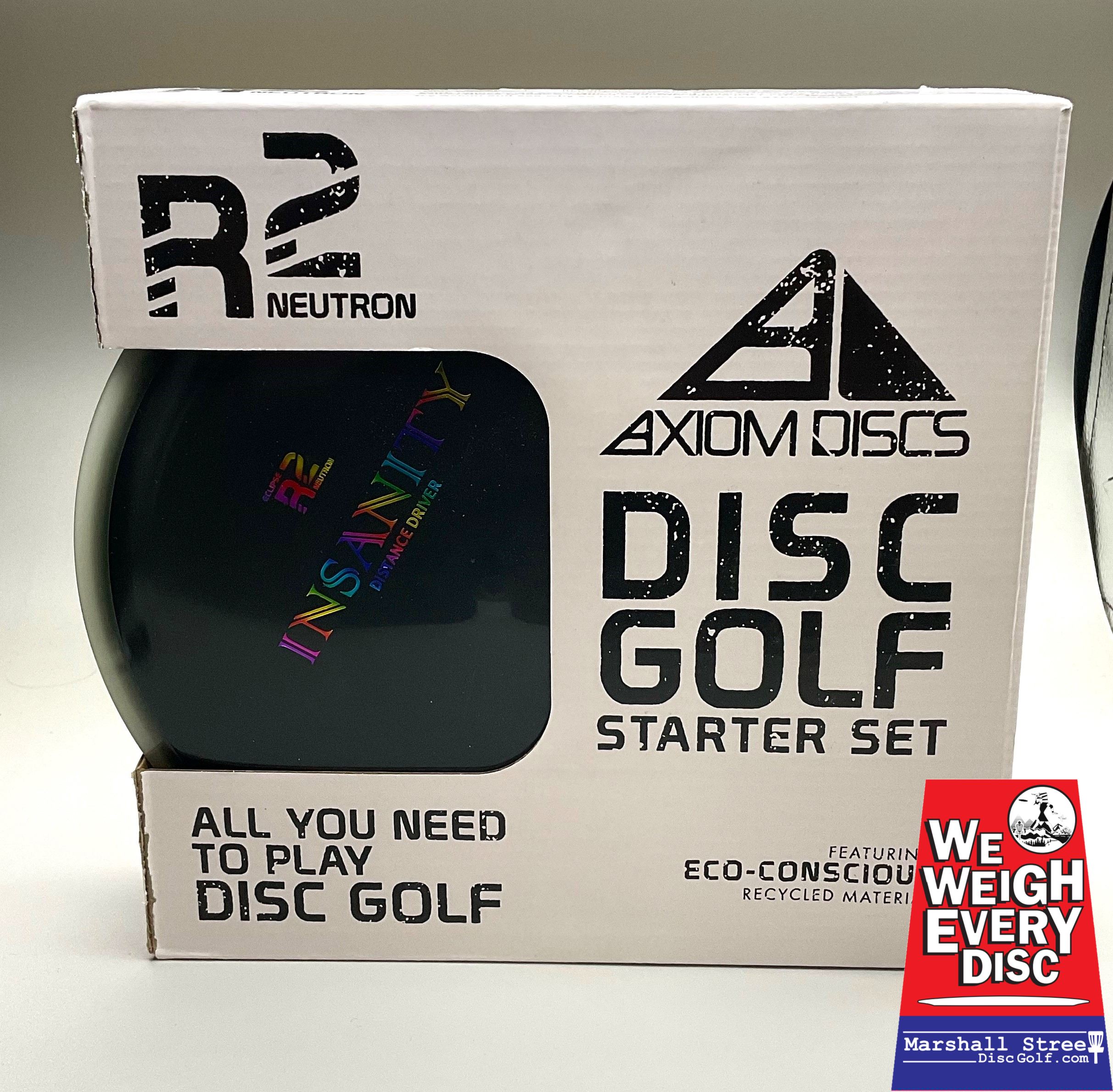 This Eclipse R2 Neutron Set comes equipped with an Insanity fairway driver (9/5/-2/1.5), a Paradox midrange (5/4/-4/0), and a Proxy putter (3/3/-1/0.5).