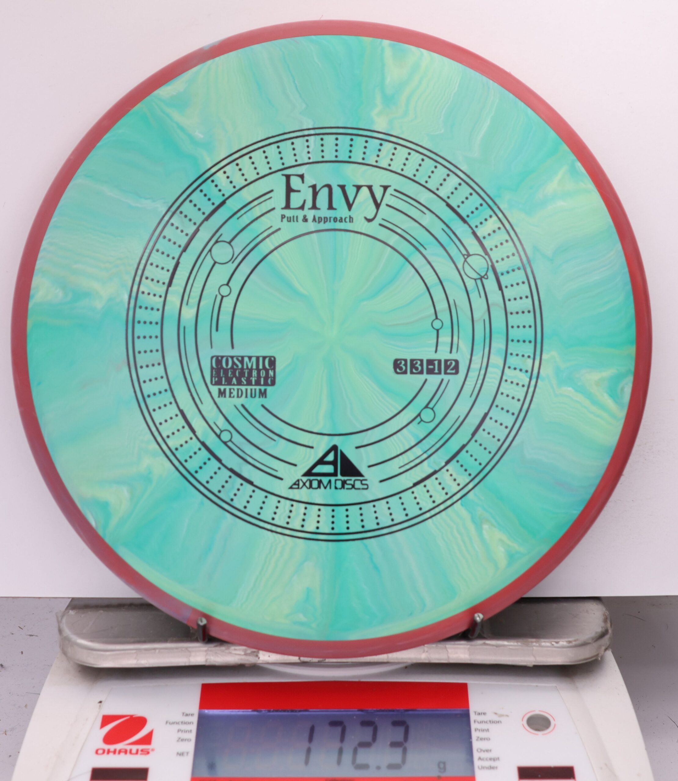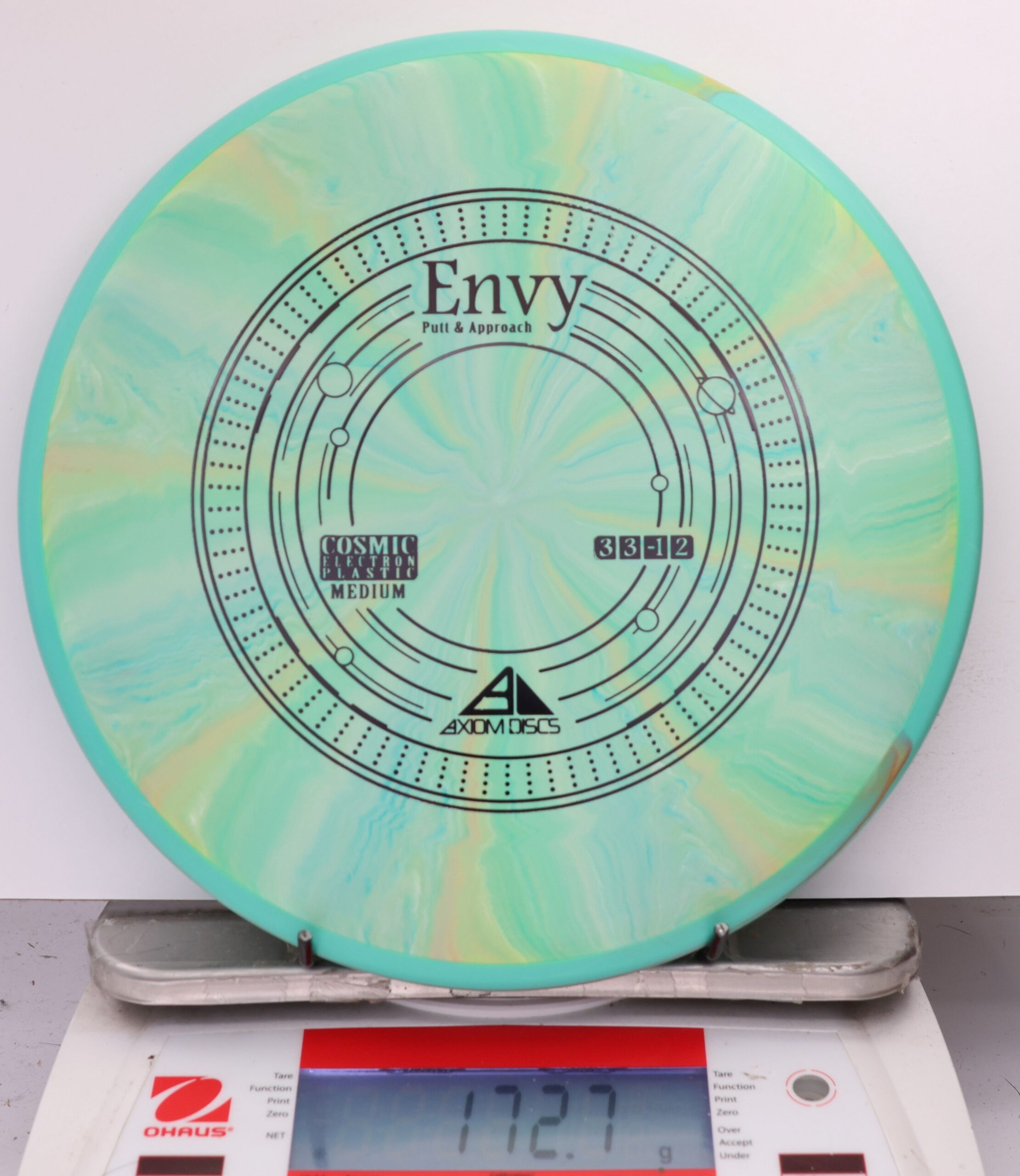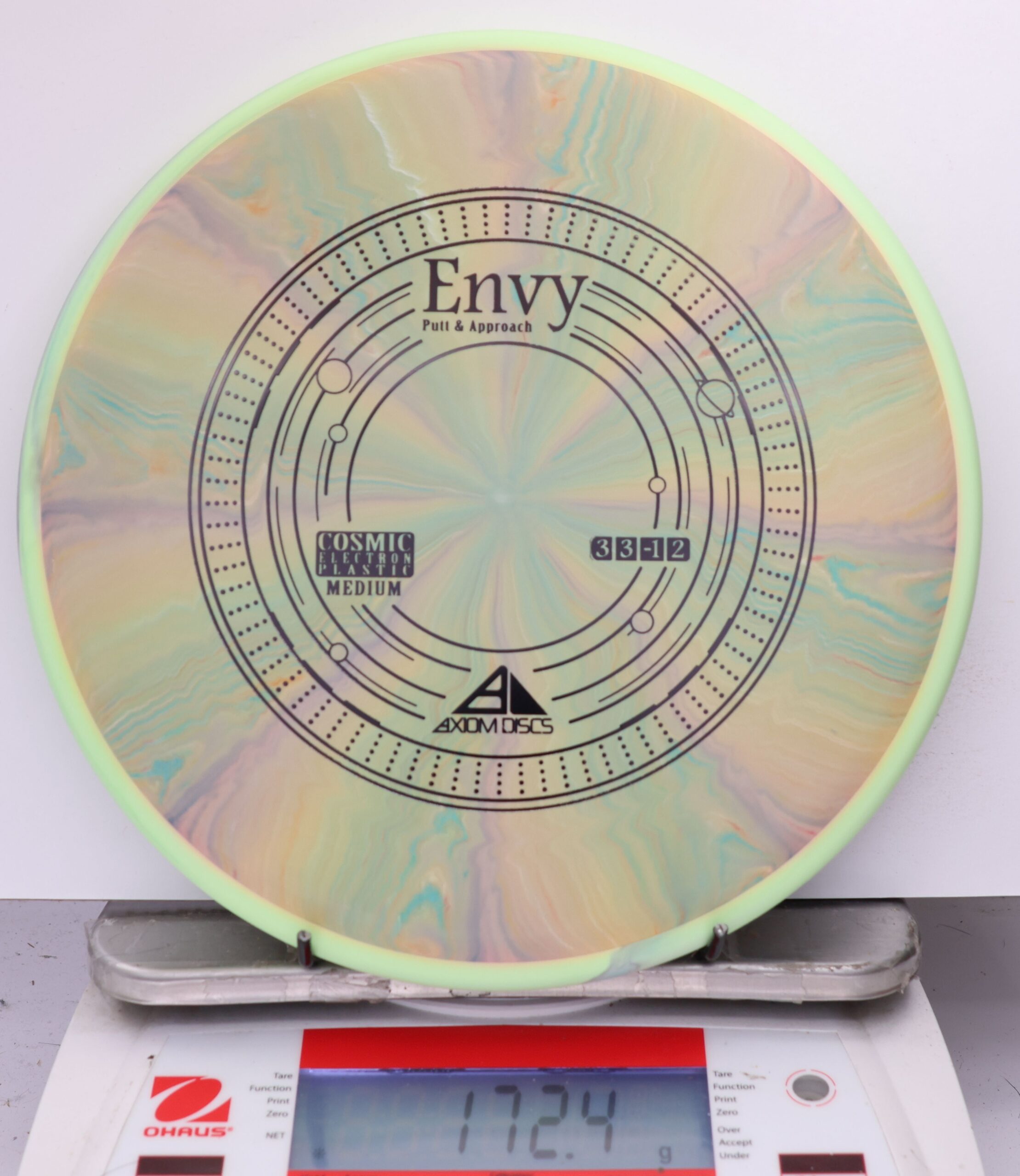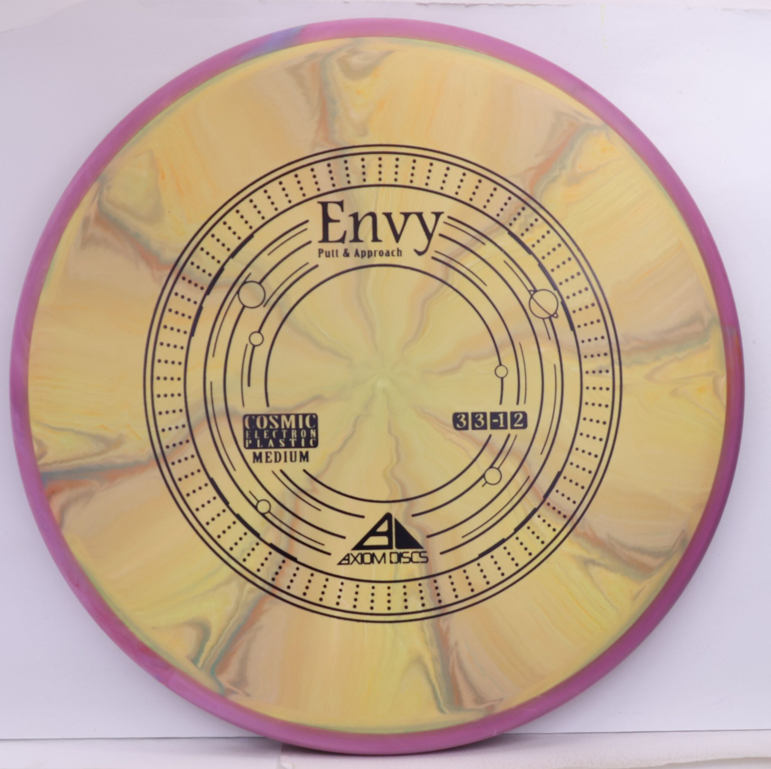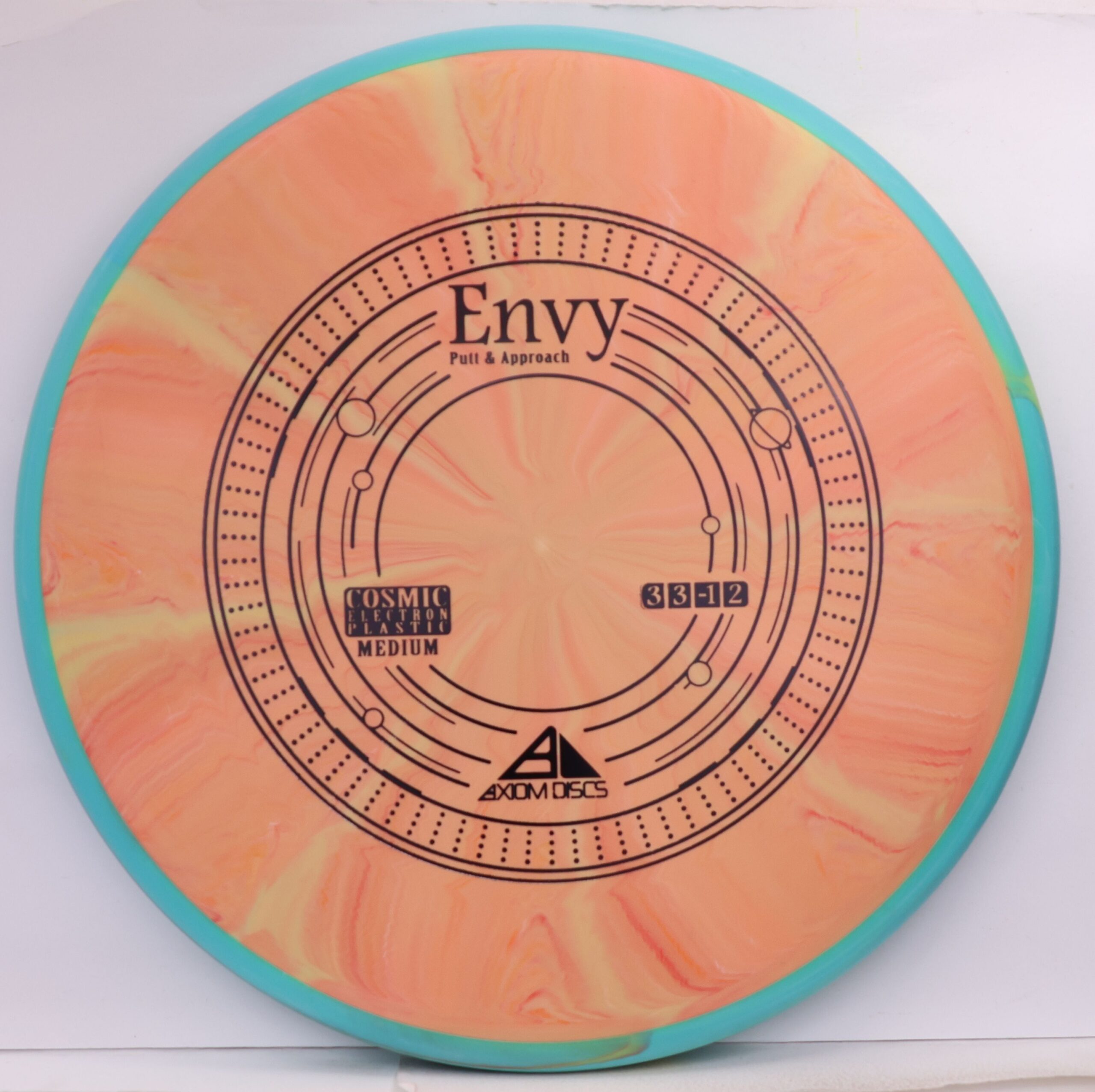 A modestly overstable putter, the Envy can look good in almost anyone’s hands for both approach shots and putts. Looking extra good in Cosmic burst, the Envy is the first mold to feature the Cosmic Electron combination.