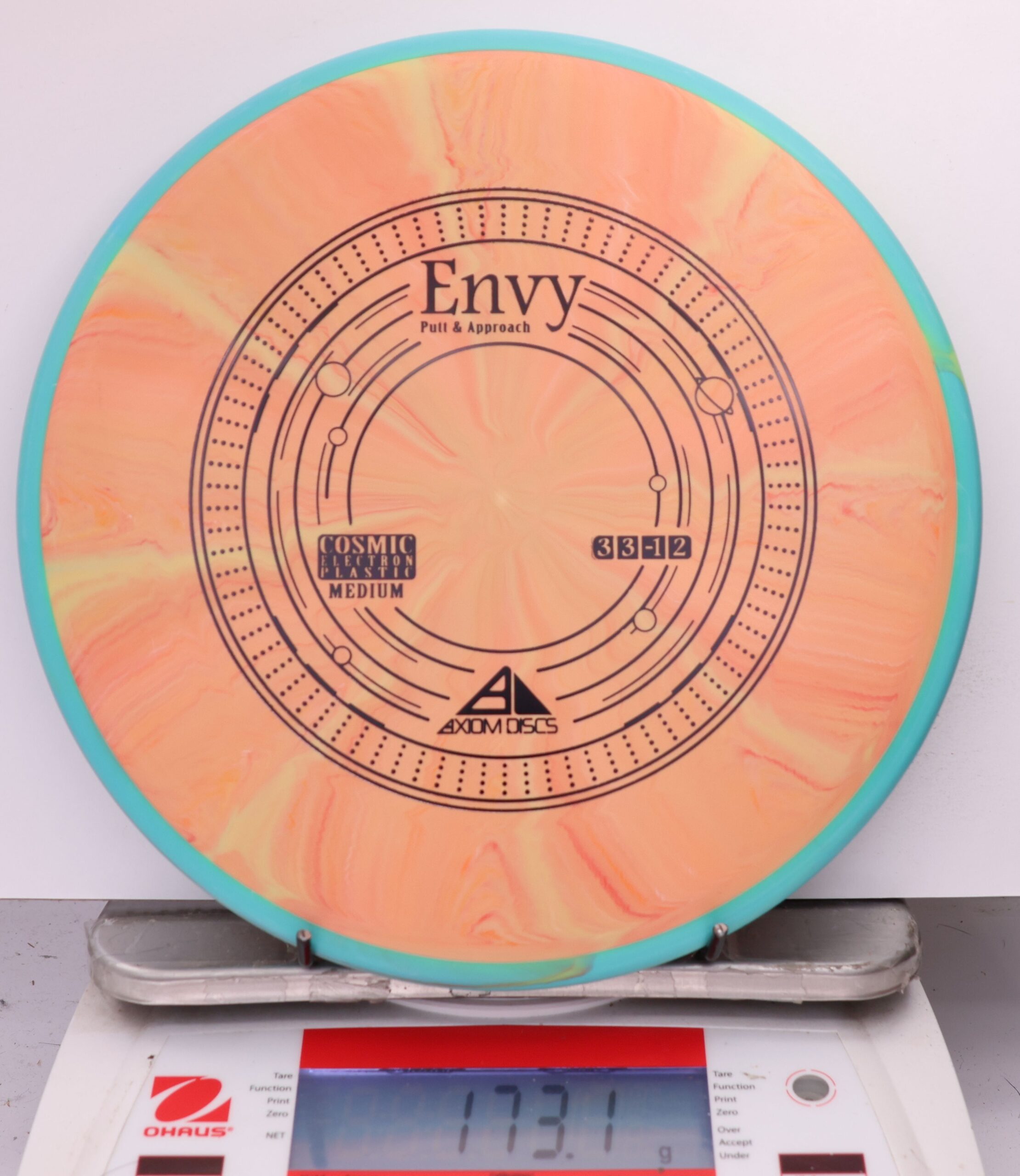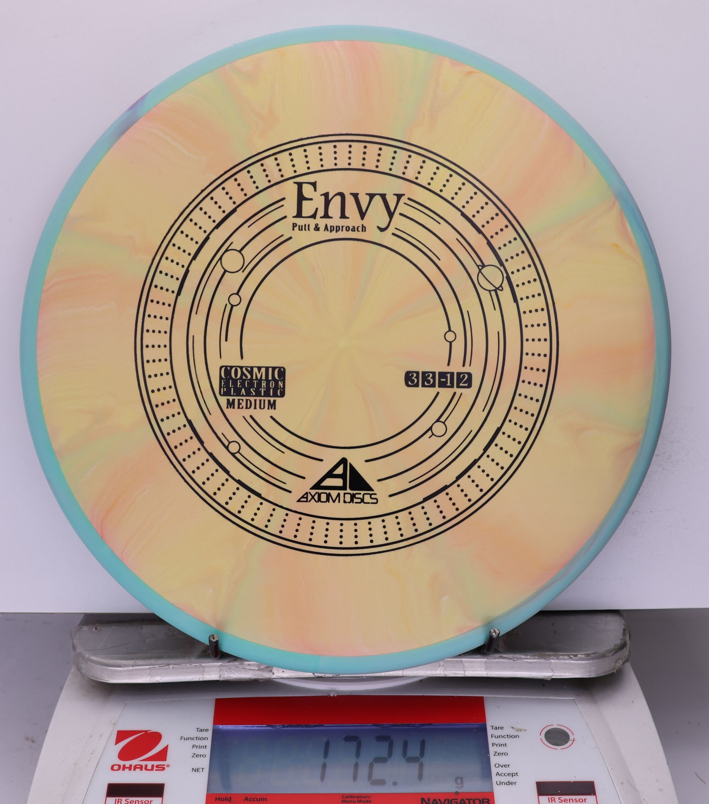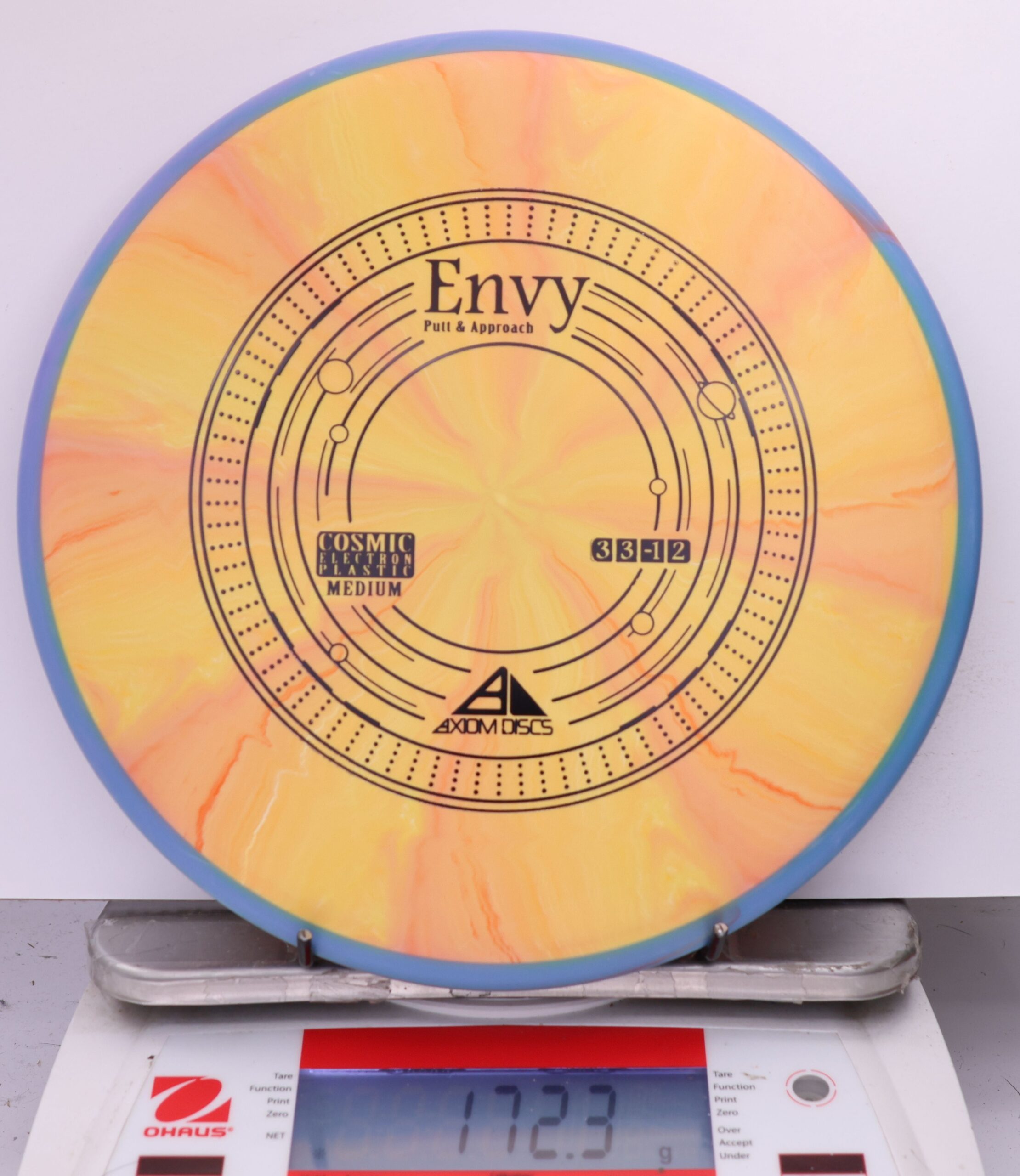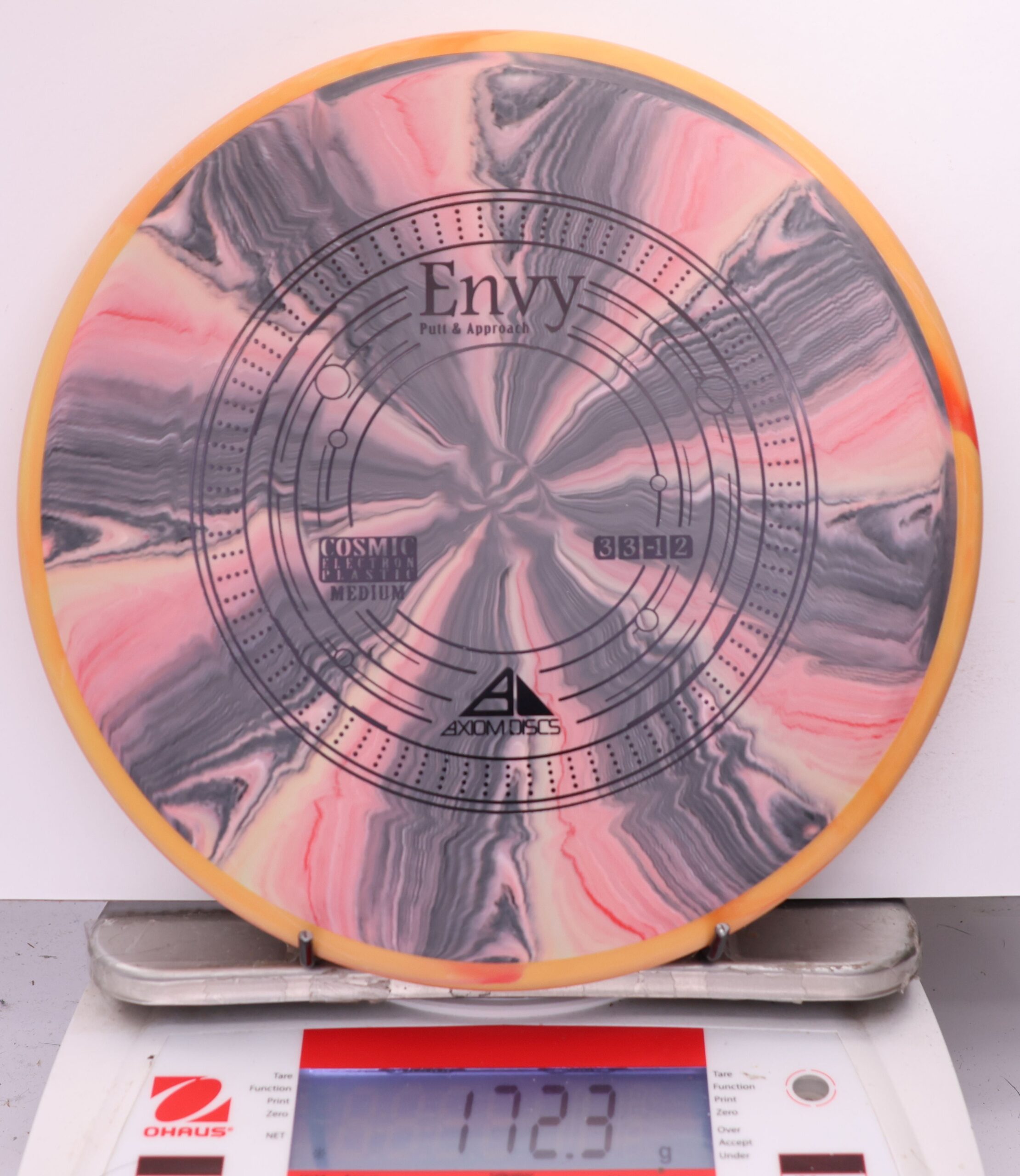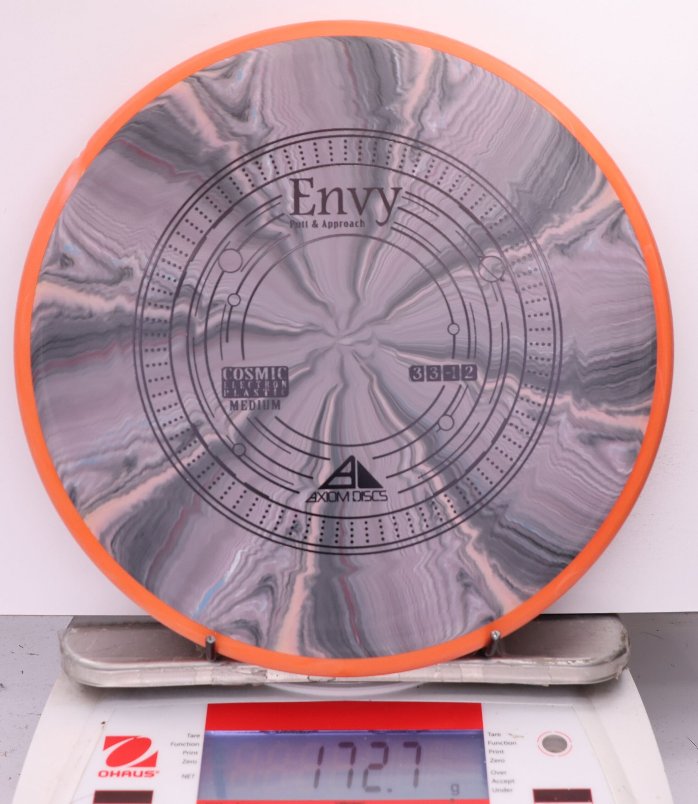 A modestly overstable putter, the Envy can look good in almost anyone’s hands for both approach shots and putts. Looking extra good in Cosmic burst, the Envy is the first mold to feature the Cosmic Electron combination.