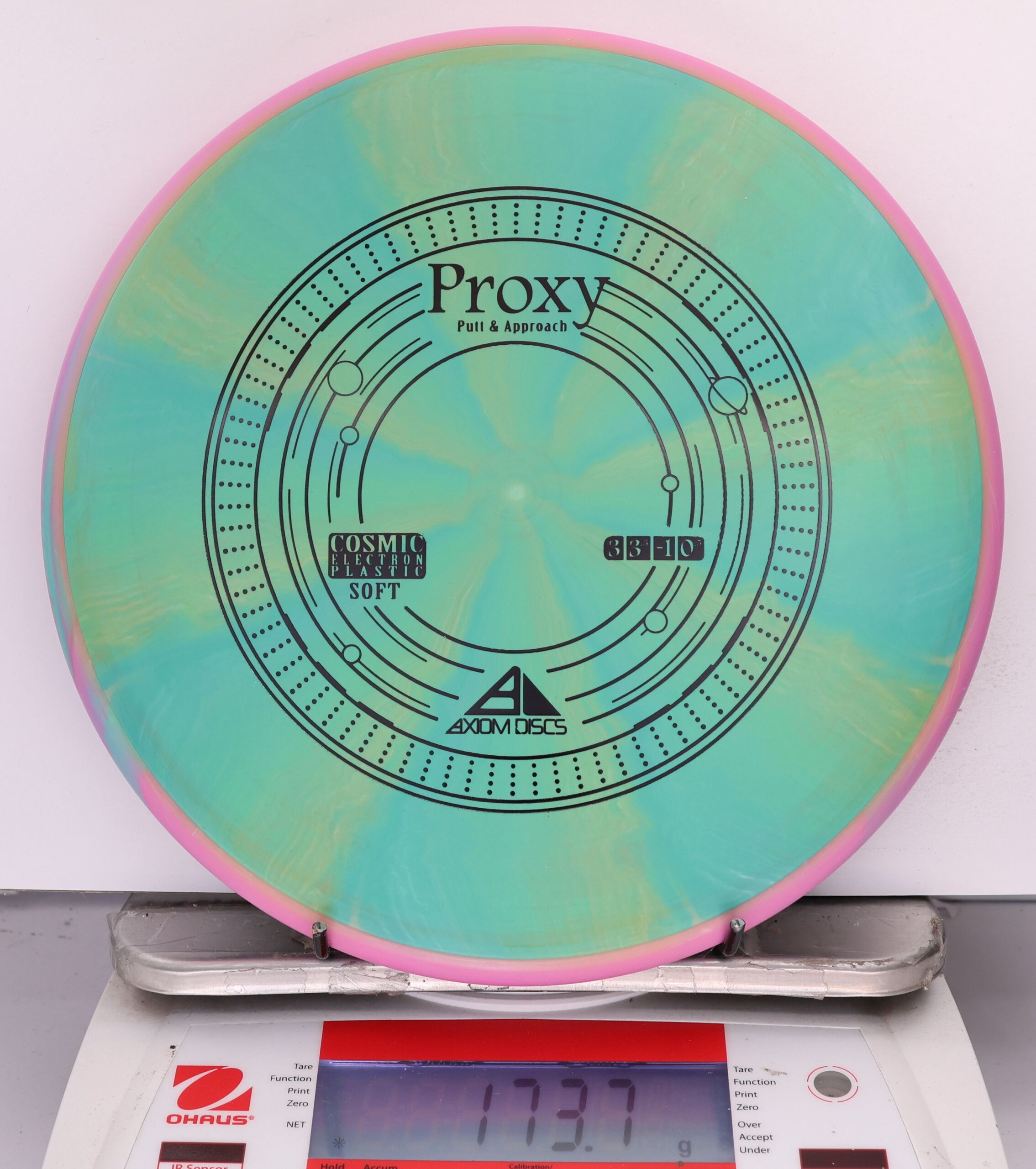 The Cosmic Electron Soft Proxy offers dead-straight flights with a touch of turn and minimal fade. Its gummy feel grabs chains and terrain alike, making it perfect for putts, approaches, and finesse drives—plus it looks wild doing it.