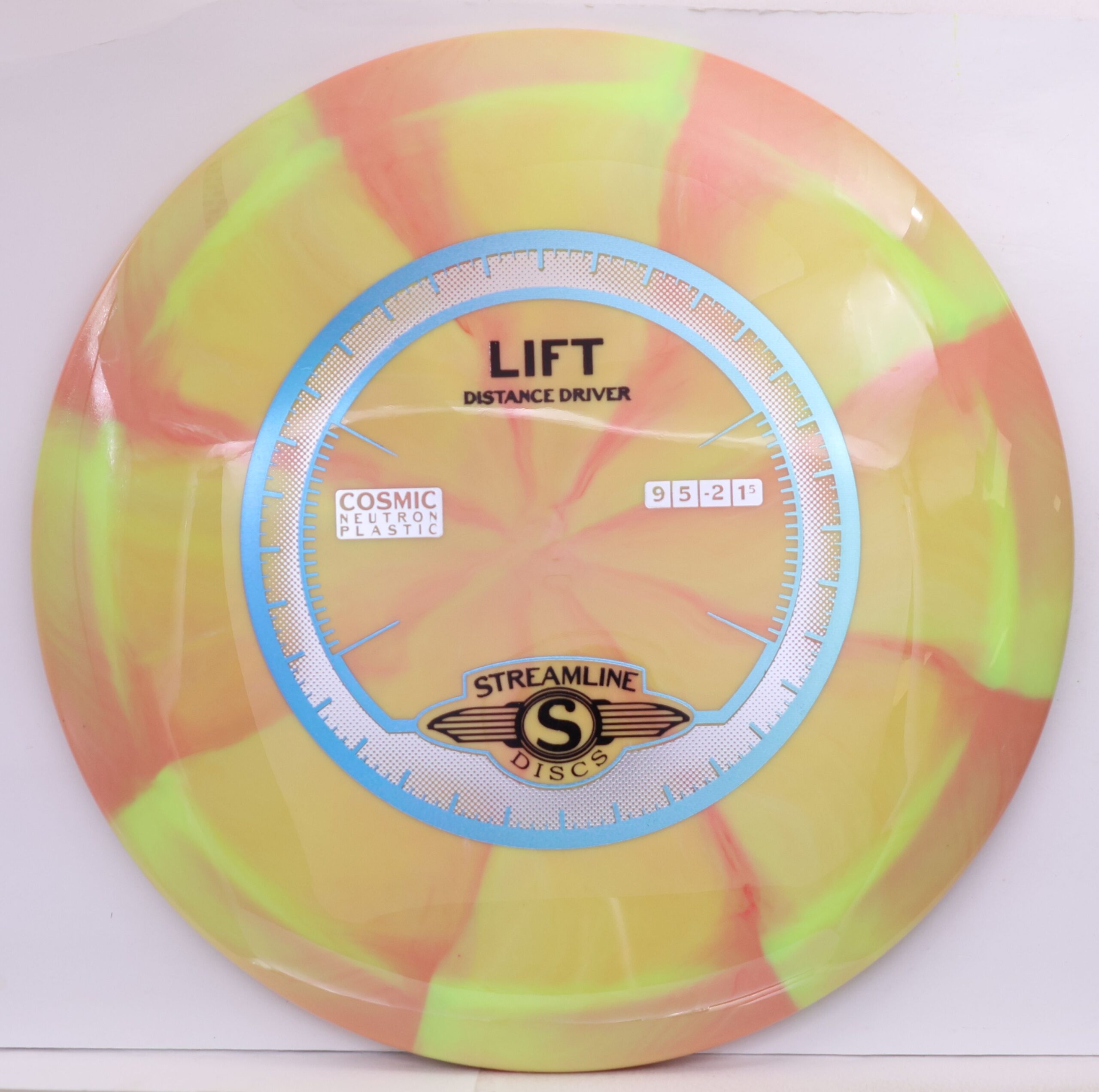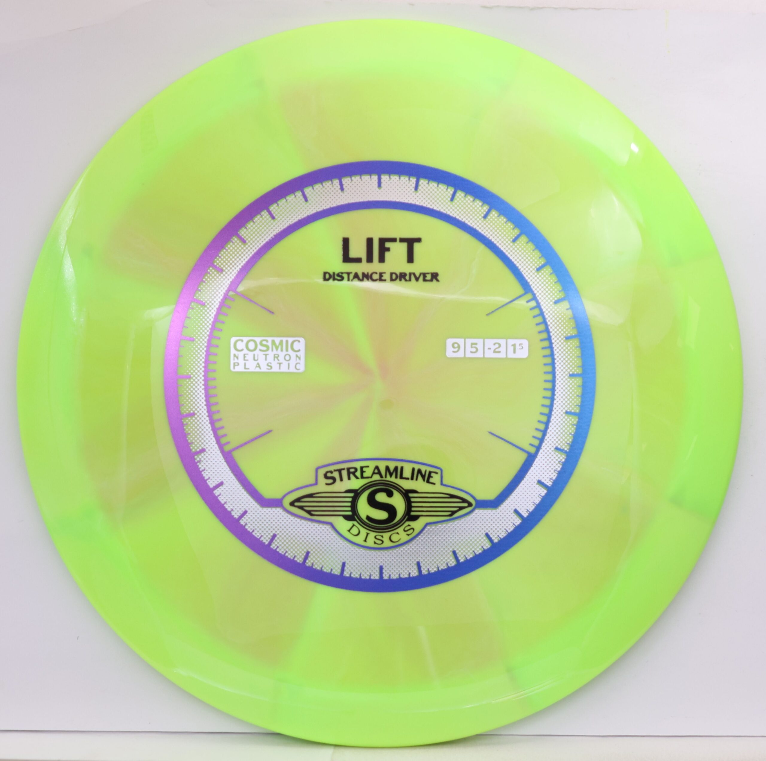 Prepare for liftoff with the new distance driver from Streamline, the Lift! The Lift is Streamline’s new understable distance driver, designed as a straight flying driver with a comfortable rim size and slightly domed profile. The Lift is the second disc along with the Flare in the new 19mm Speed 9 Driver Class for Streamline. In Streamline Neutron Plastic the Lift has premium grip and durability, along with a huge variety of Neutron and Cosmic Neutron color options. For controllable flight lines with effortless glide, activate Bernoulli’s principle with the new Streamline Neutron and Cosmic Neutron Lift!