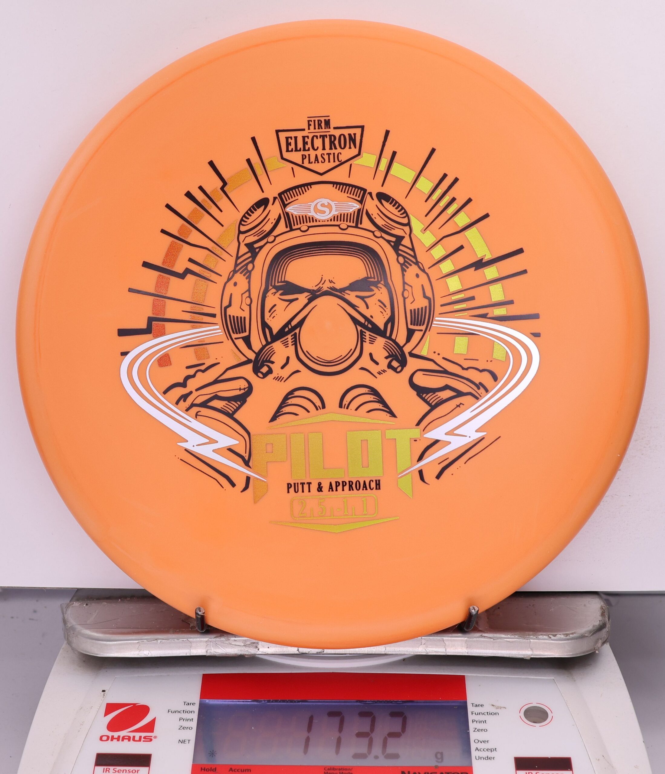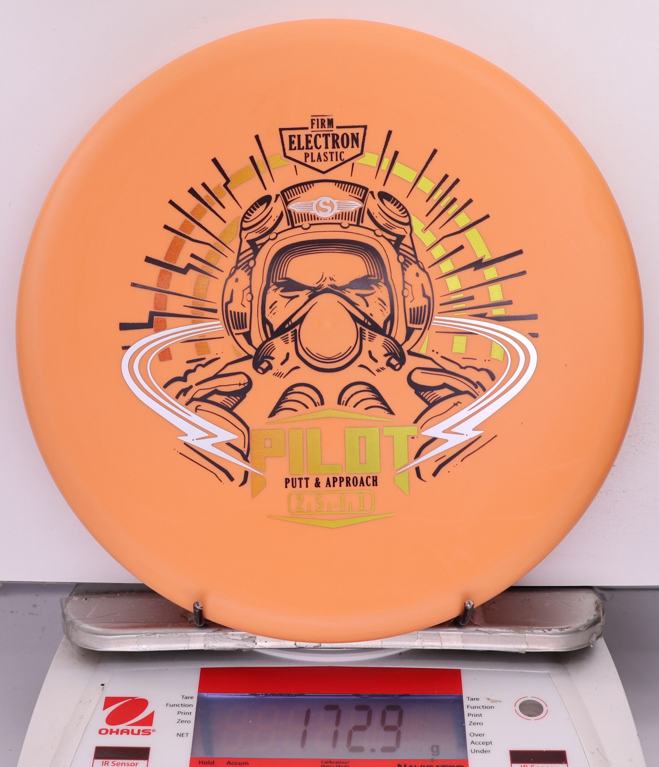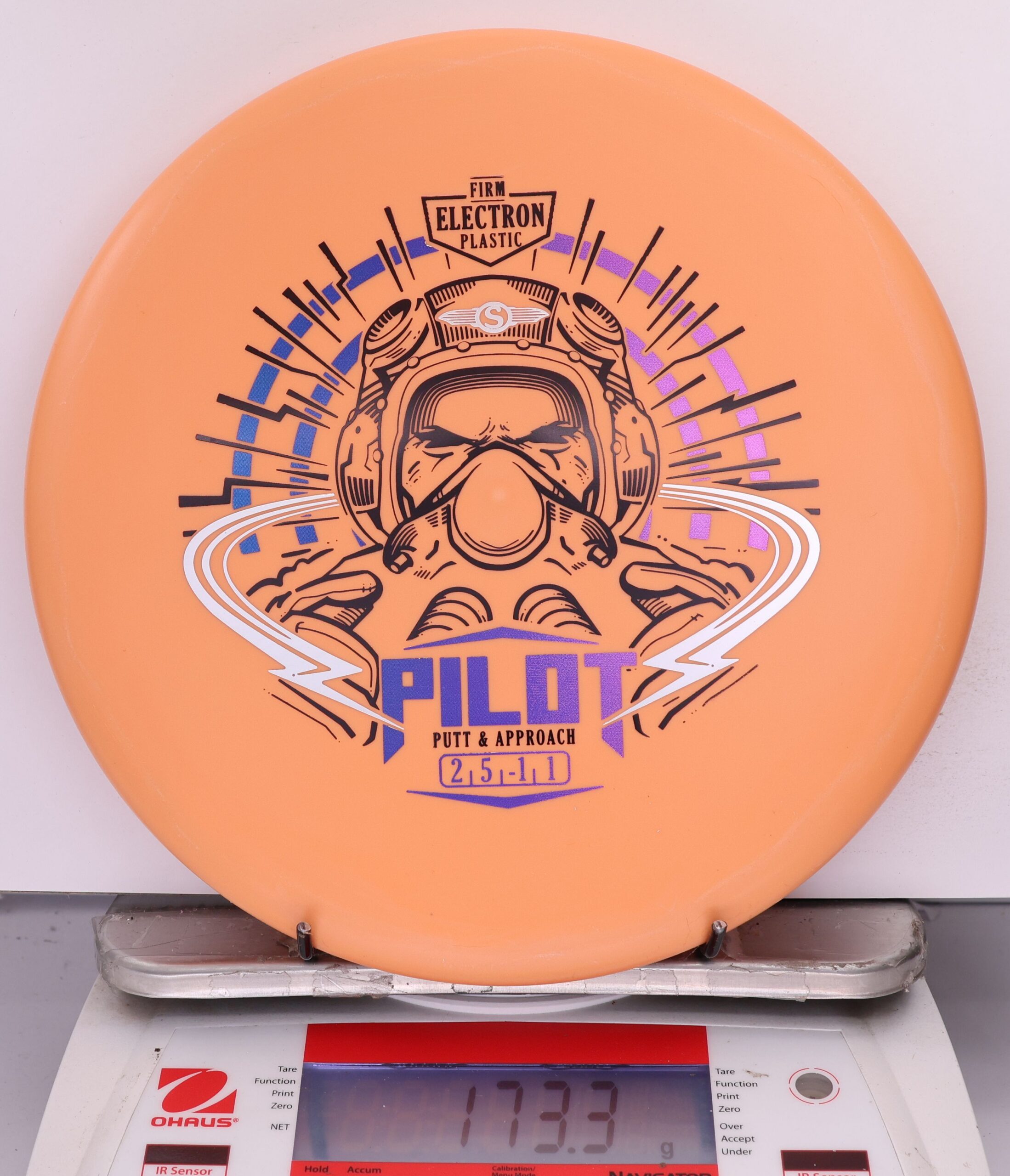 The Electron Firm Pilot is a straight-flying, stable putt-and-approach disc with a flat profile and small bead rim. Crafted in rigid Electron Firm plastic, it offers crisp release, consistent glide, and dependable fade—great for mid-range drives and precise putting.