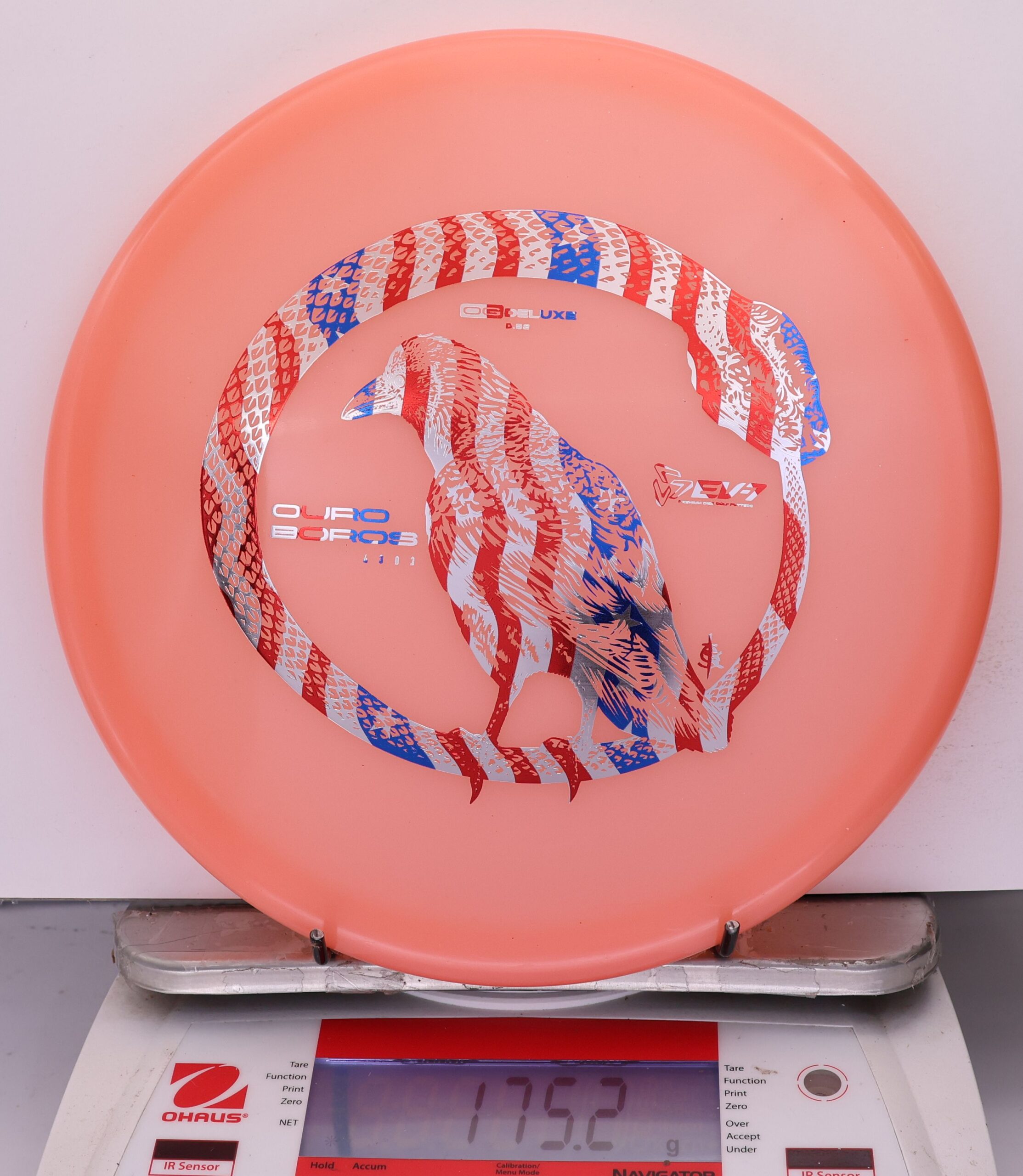 The Ouroboros in OG Deluxe is an overstable approach disc with a slightly firm feel, clean release, straight carry, and a defined fade with moderate skip.