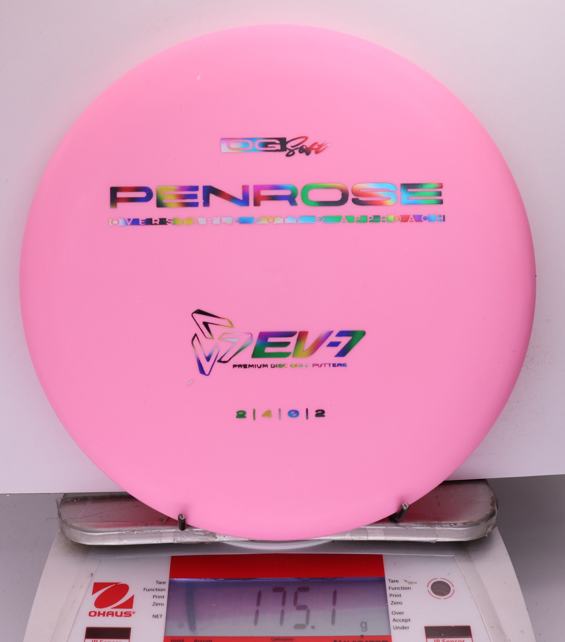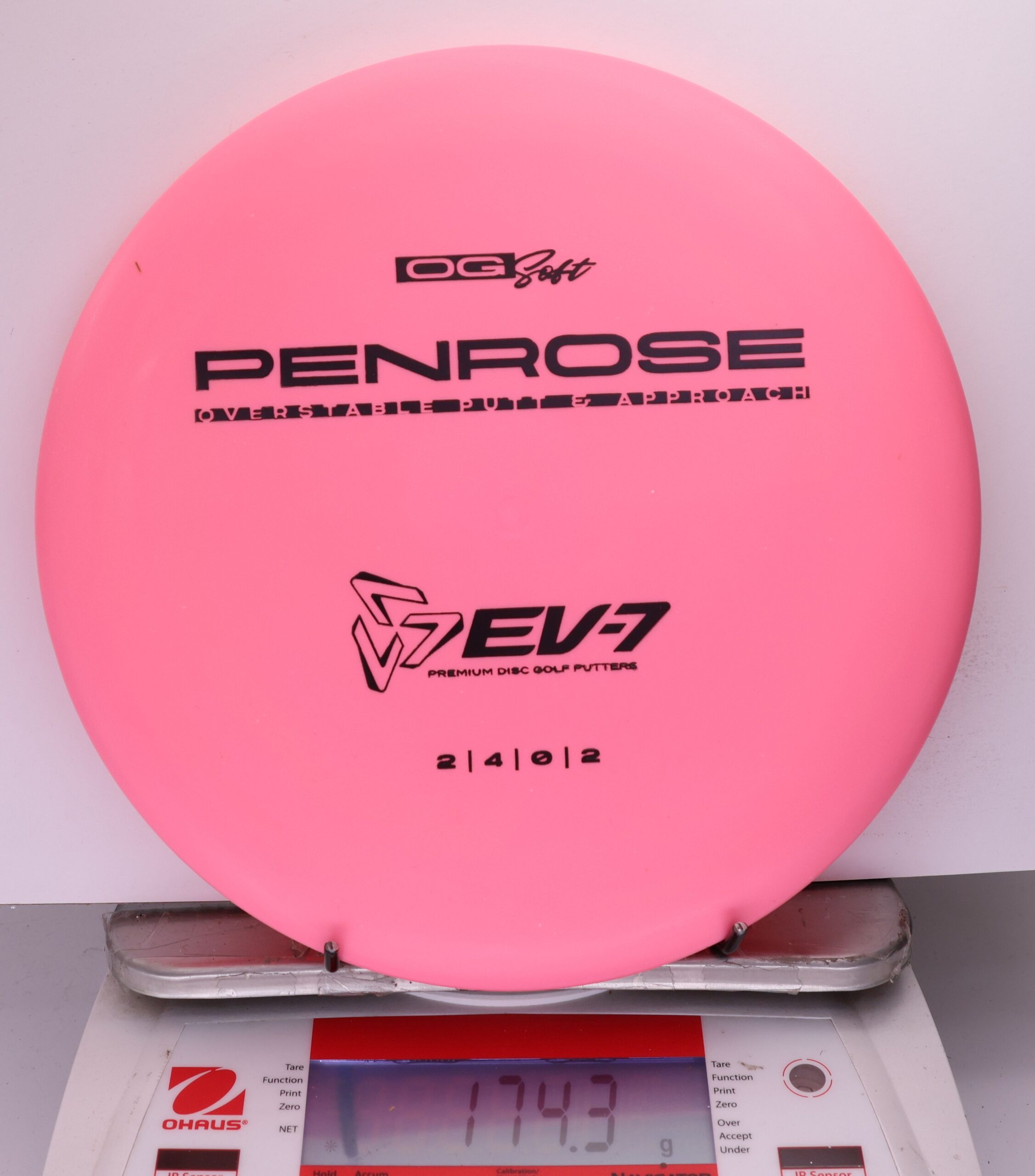 The Penrose is EV-7’s debut putt and approach disc. It has reliable high-speed over stability and resistance to turn, but is uniquely straight with consistent fade at lower speeds on the putting green. With a slightly deeper profile, small bead, and smooth feel, the Penrose fits the hand comfortably, inspiring confidence for both putts and upshots.