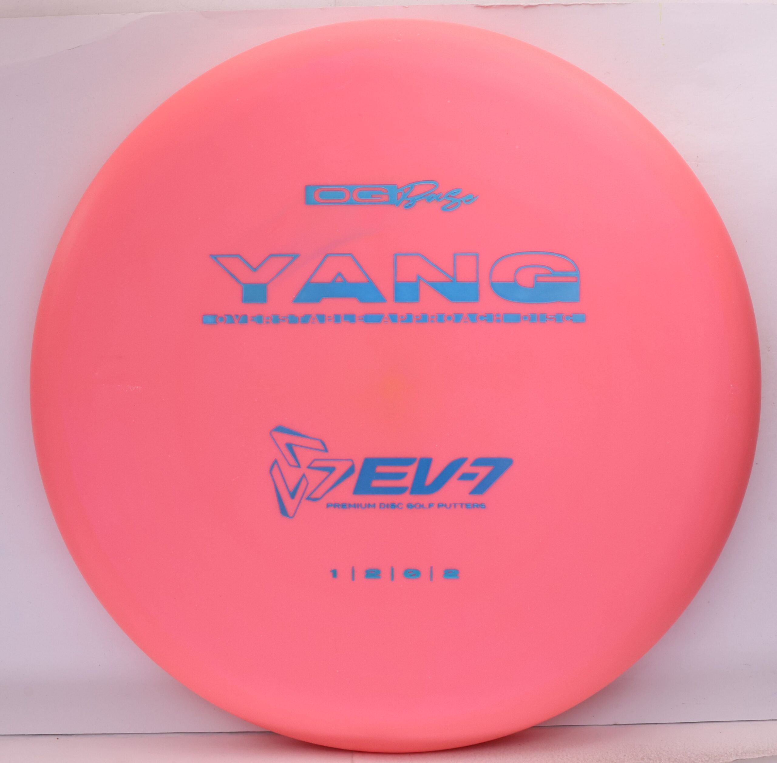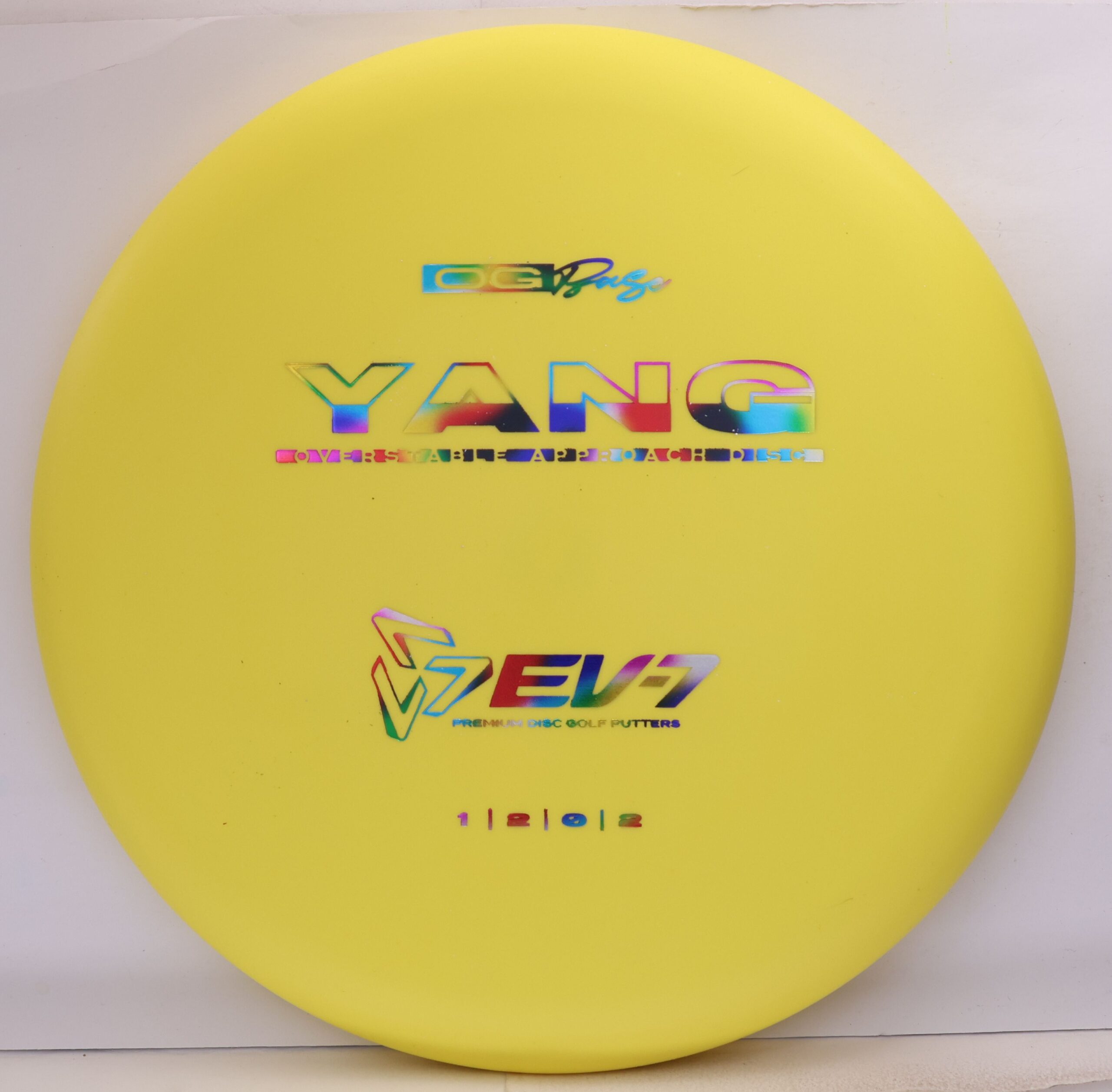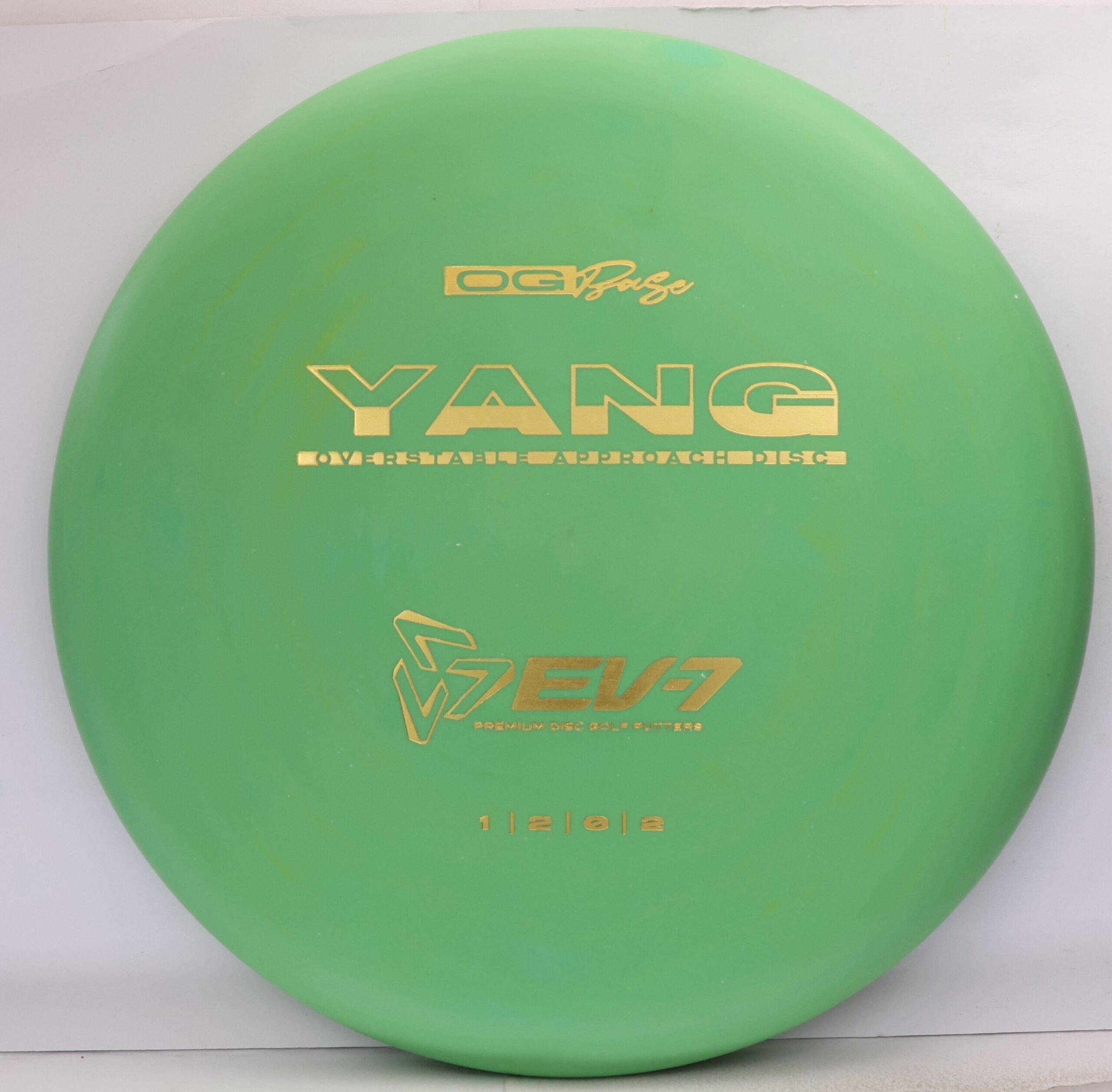 The Yang is a ground play disc, it’s slow, slightly overstable, shallow, and has a big bead. It’s made to skip on hyzer approaches, and gently slide on straight shots in to the green. It will flatten and fade of anhyzer shots for a softer landing. Due to it’s lack of glide, The Yang won’t blow past the basket – it’s perfect for shots 250′ and in.