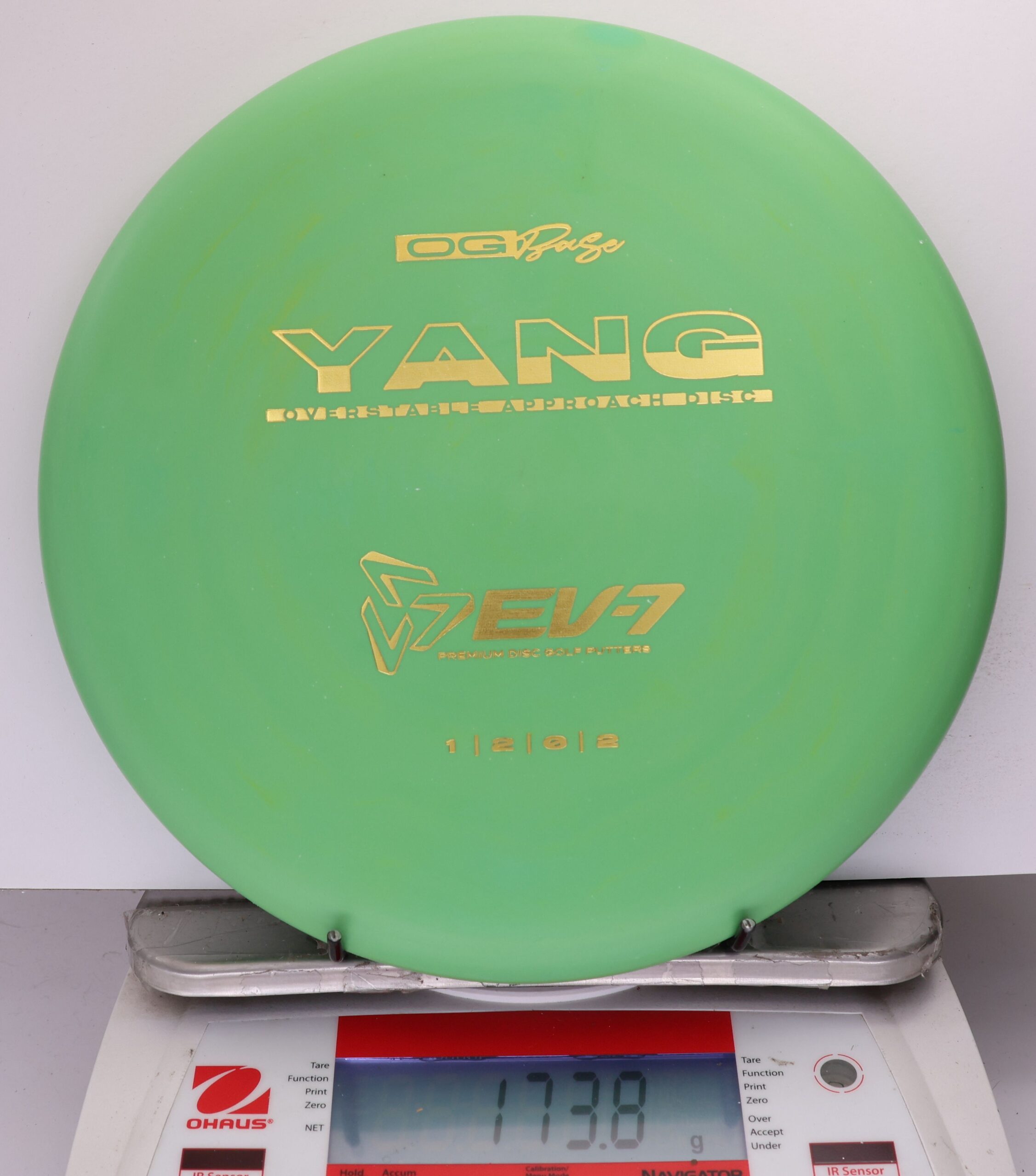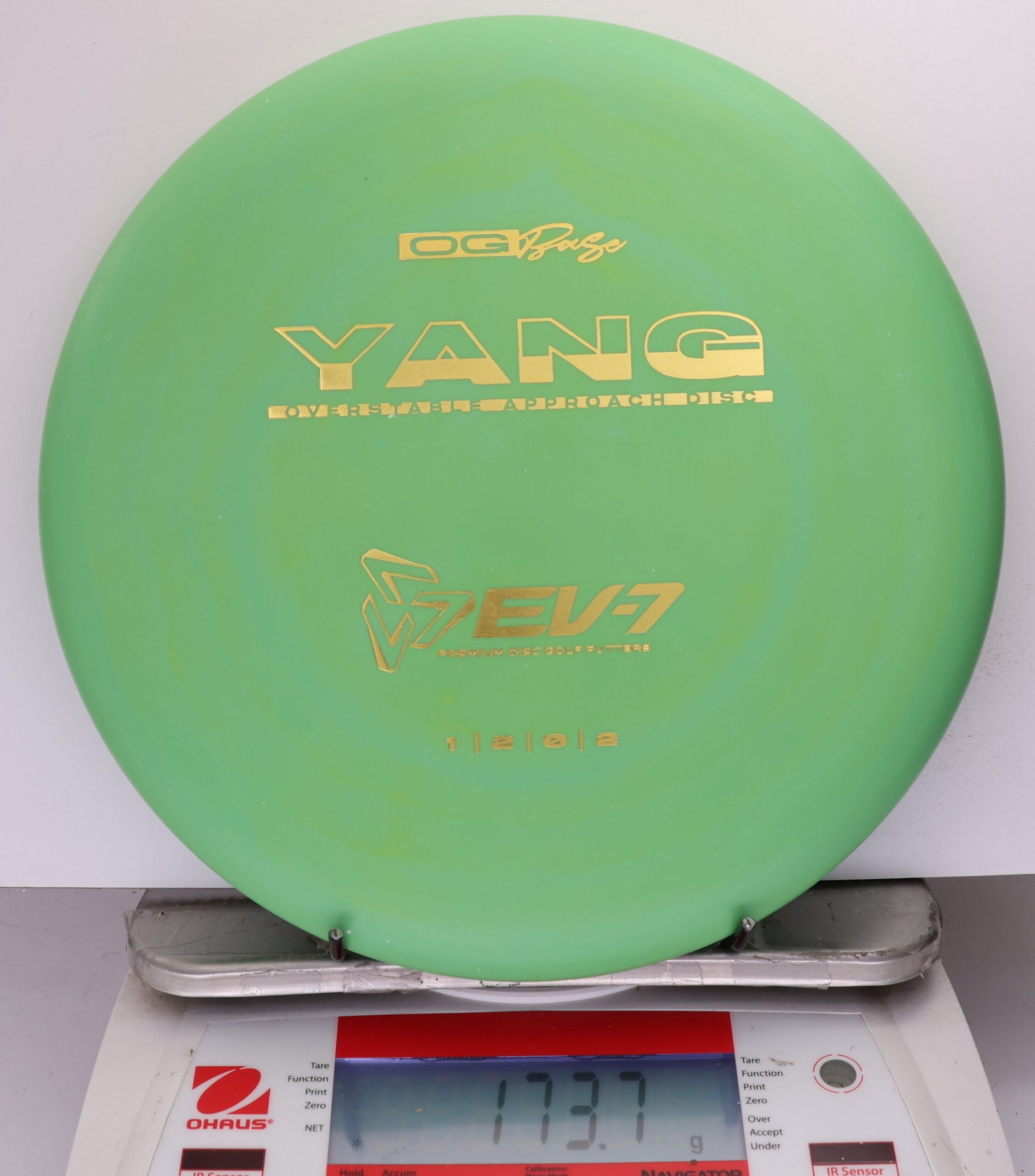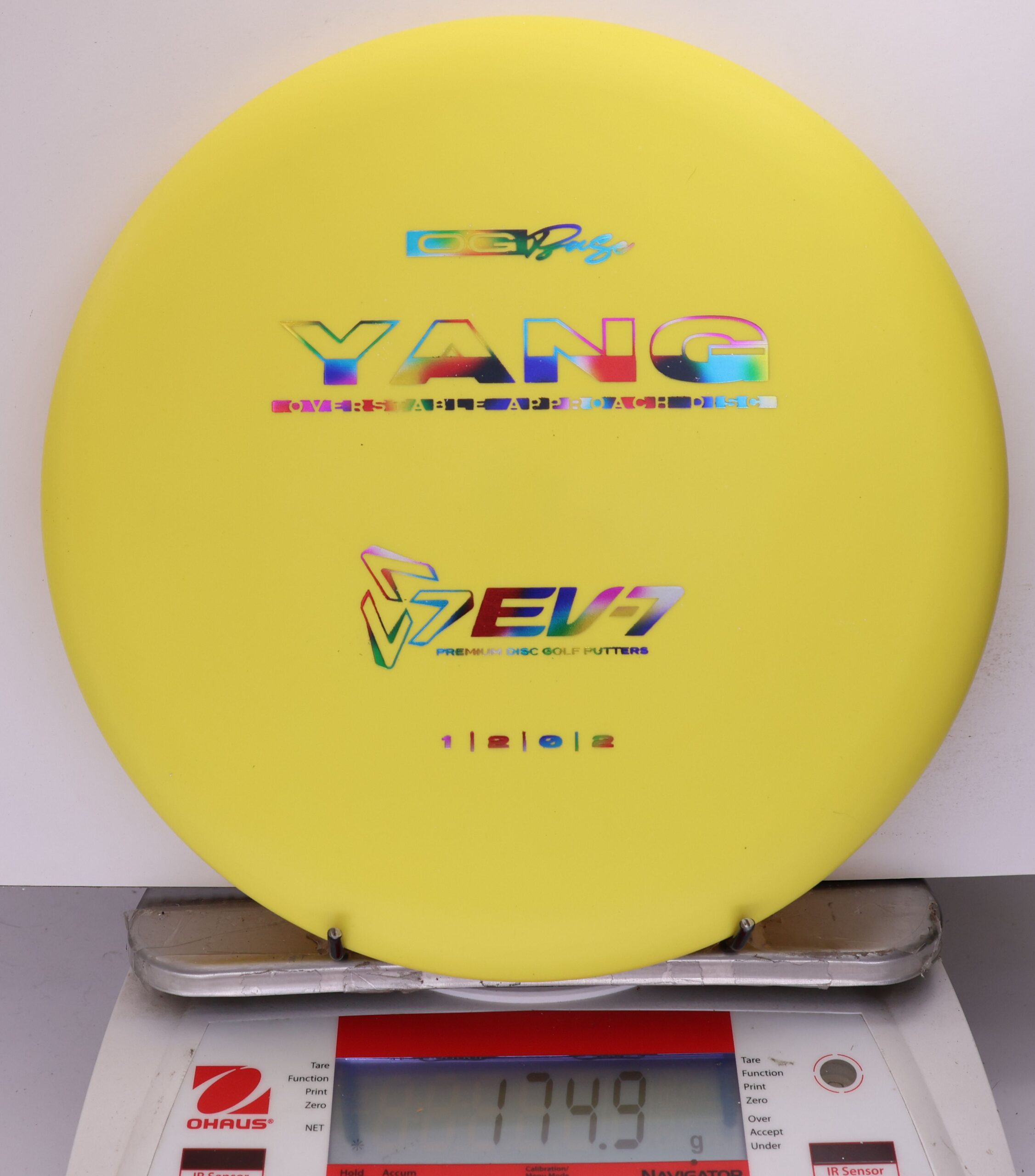 The Yang is a ground play disc, it’s slow, slightly overstable, shallow, and has a big bead. It’s made to skip on hyzer approaches, and gently slide on straight shots in to the green. It will flatten and fade of anhyzer shots for a softer landing. Due to it’s lack of glide, The Yang won’t blow past the basket – it’s perfect for shots 250′ and in.