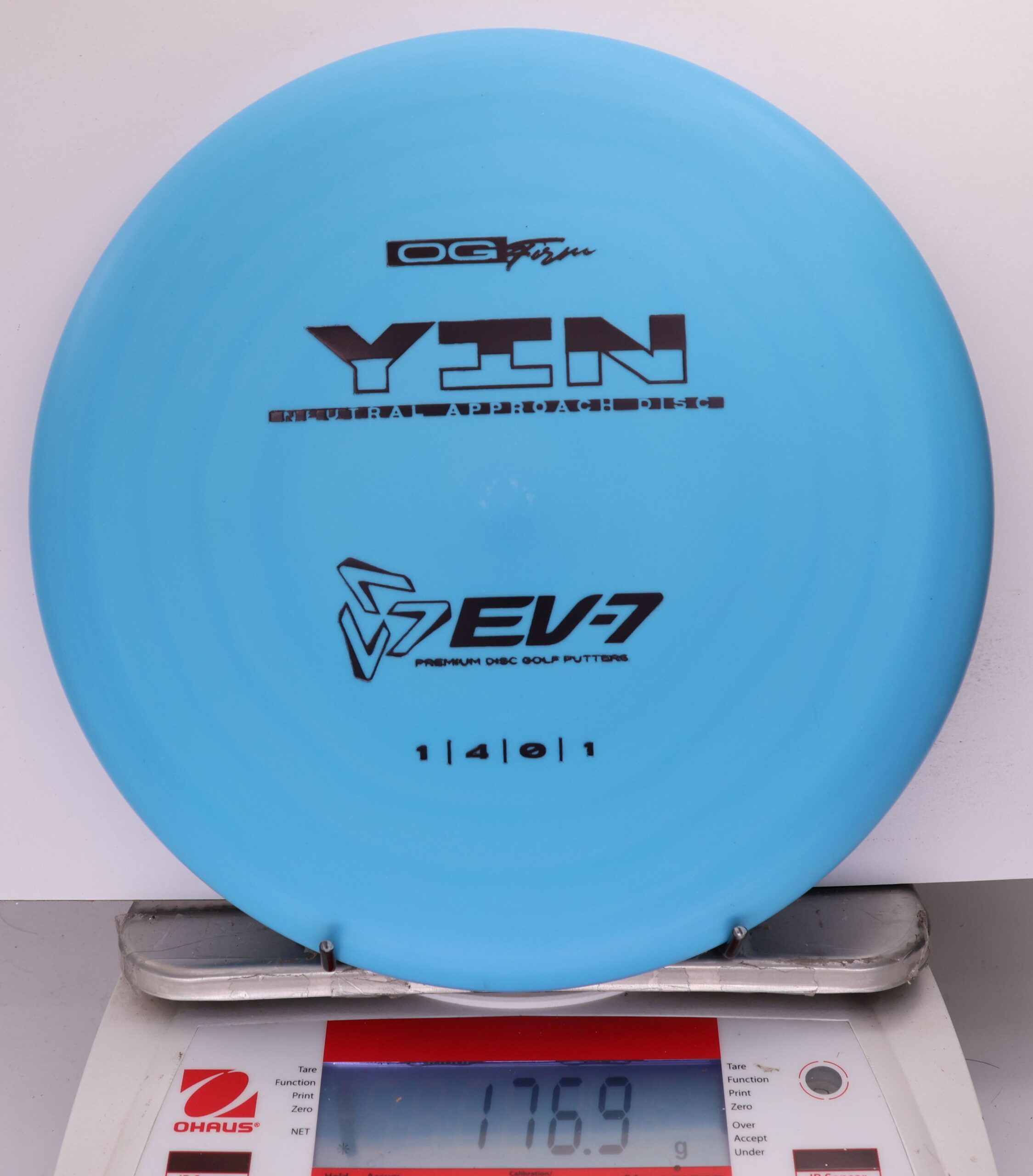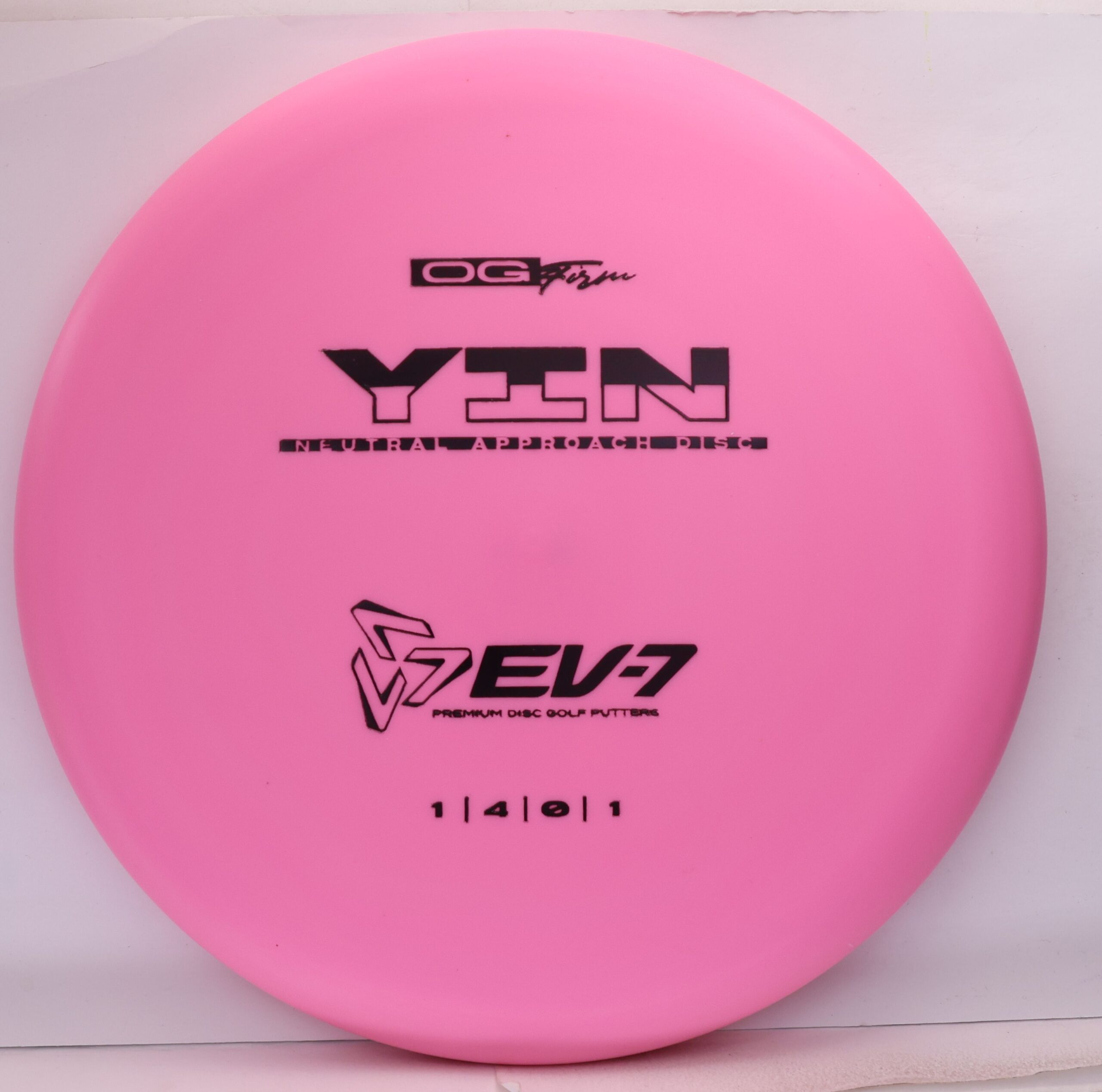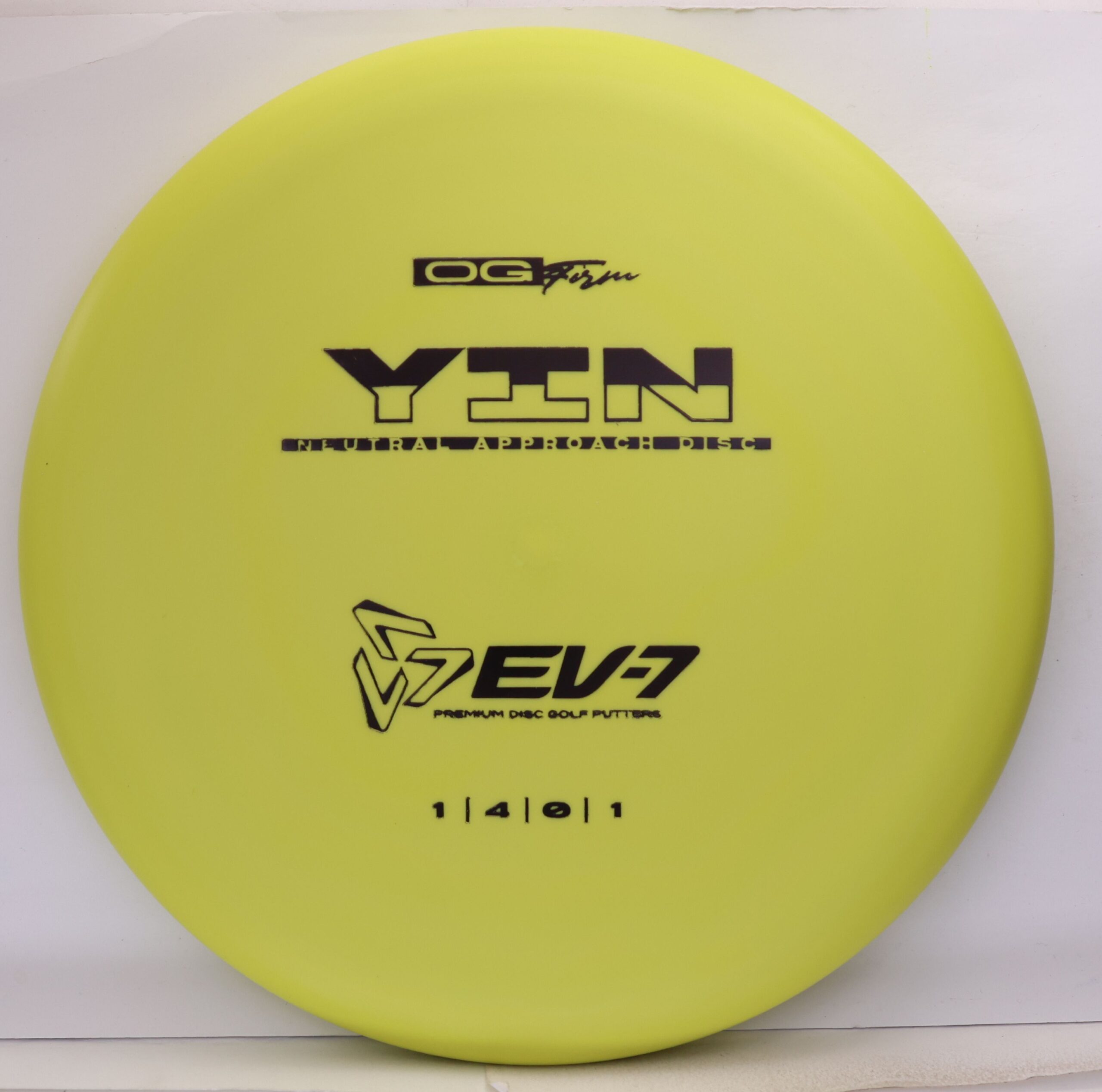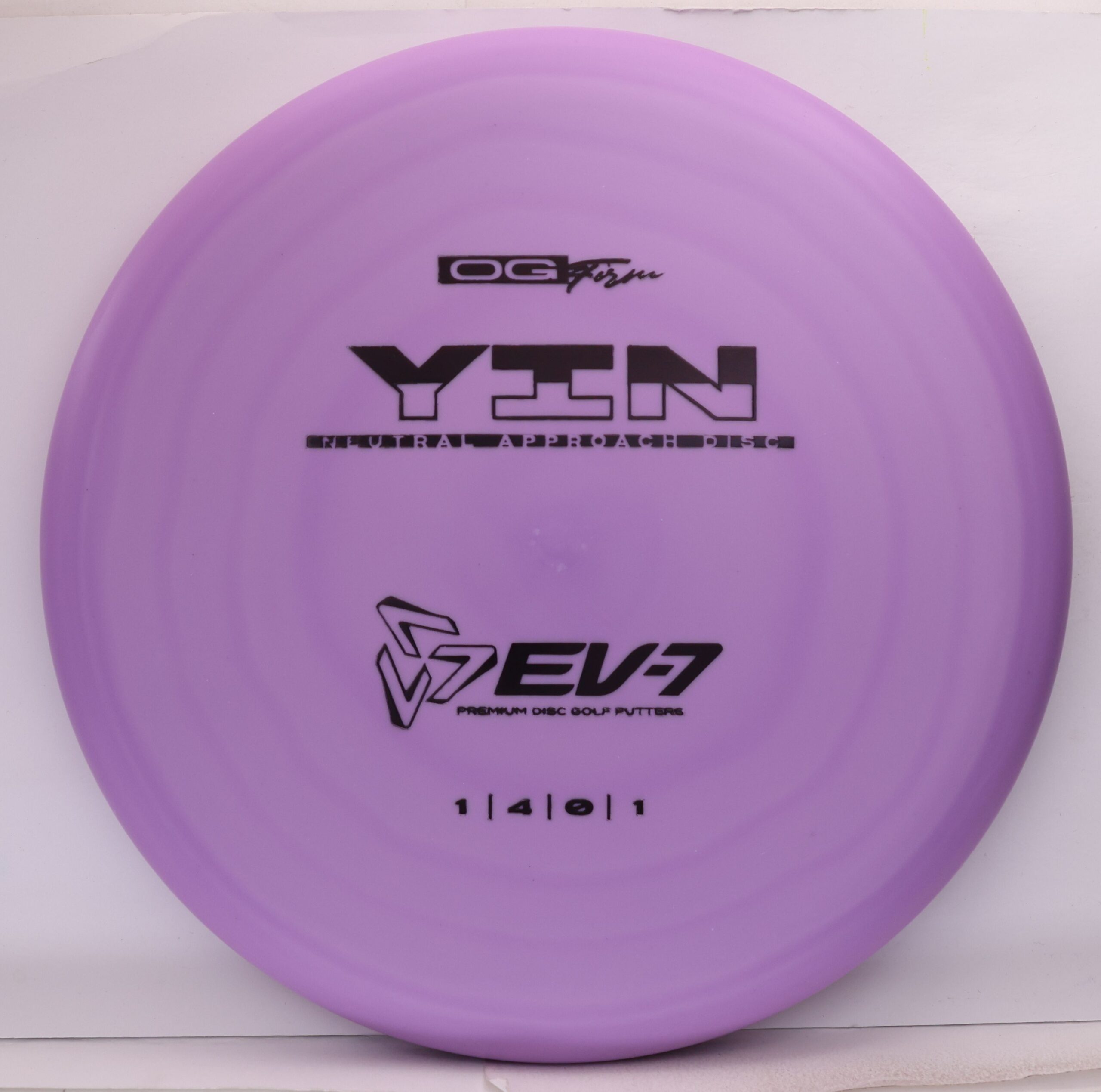 The Yin is an air shot disc, it’s slow, with a neutral flight, shallow, and beadless. It holds whatever line you throw it on, and floats in to the green at the end of its flight. It will both and hyer and anhyzer line, without the harsh fade or dump of more overstable approach discs. Due to it’s low speed, the Yin won’t blow past the basket either – it’s perfect for shots 250′ and in.