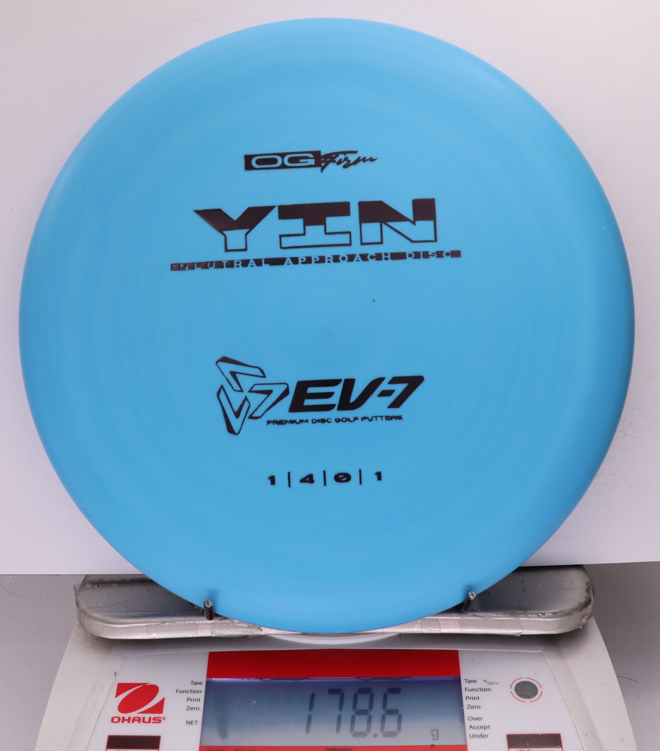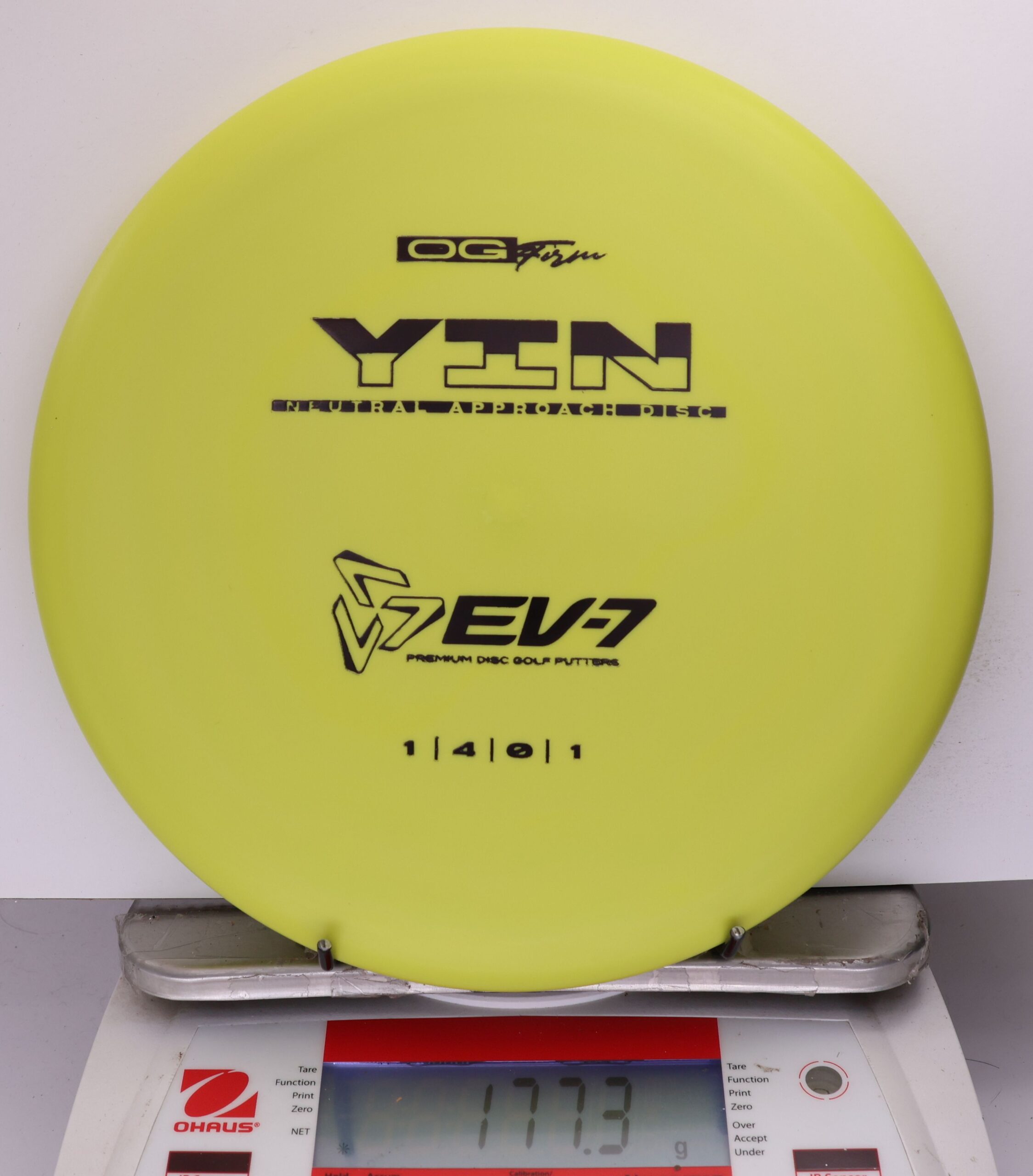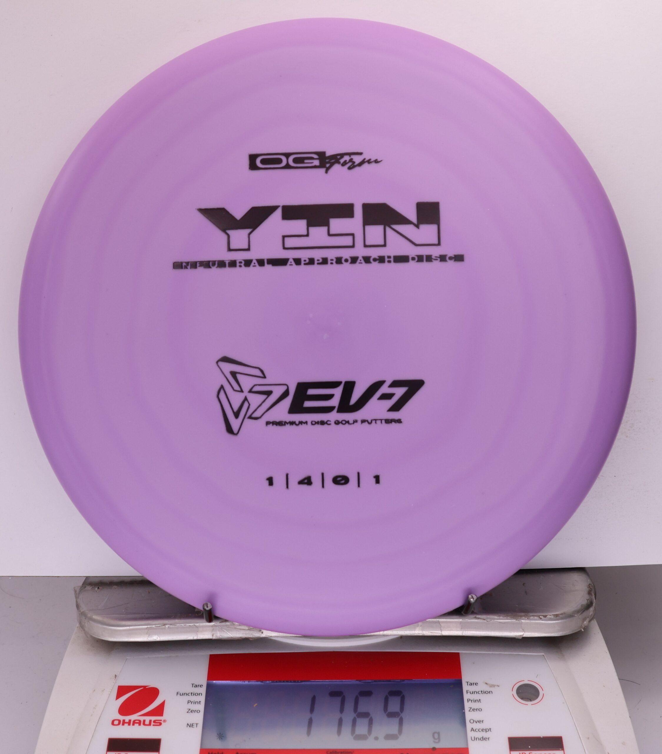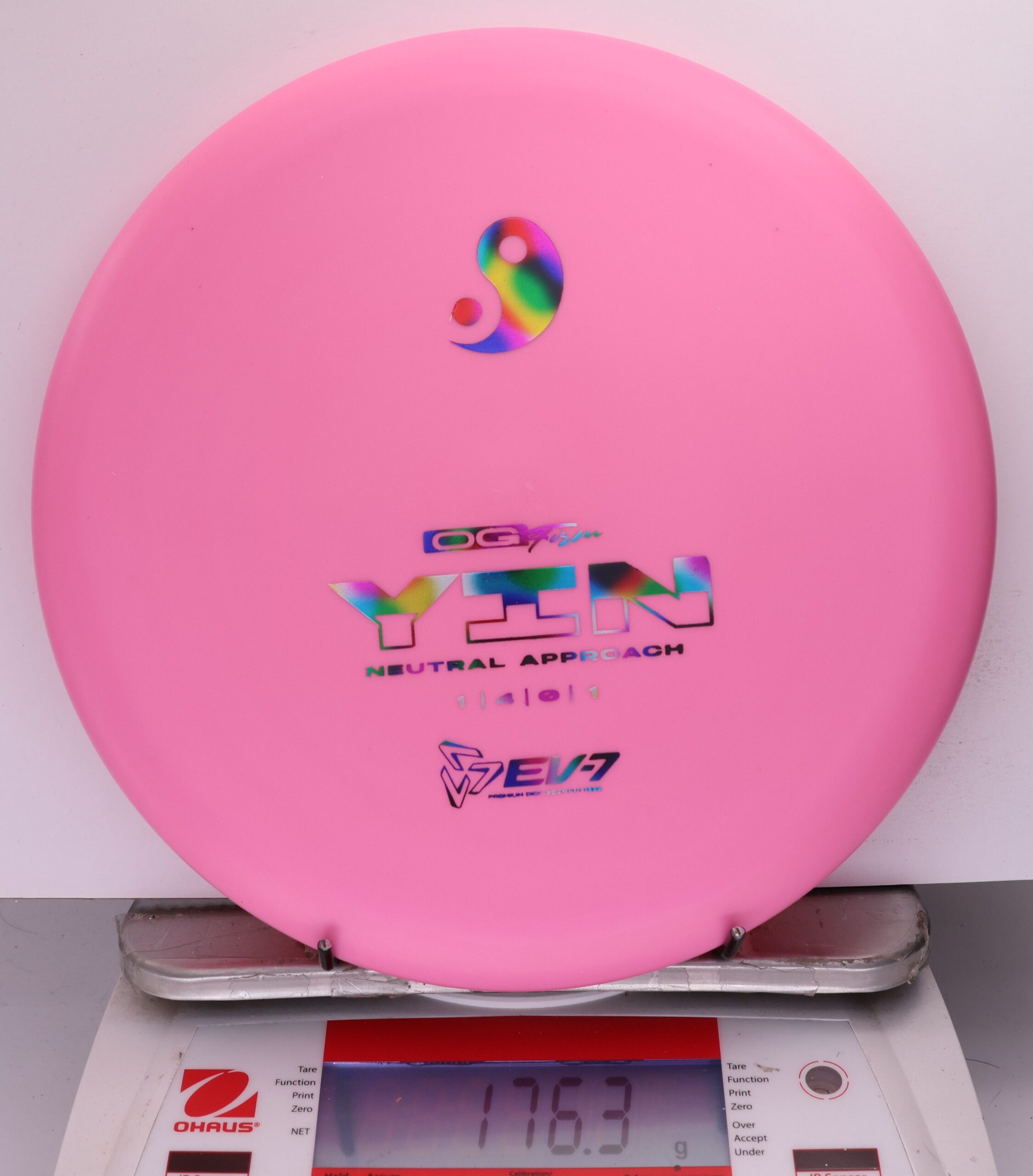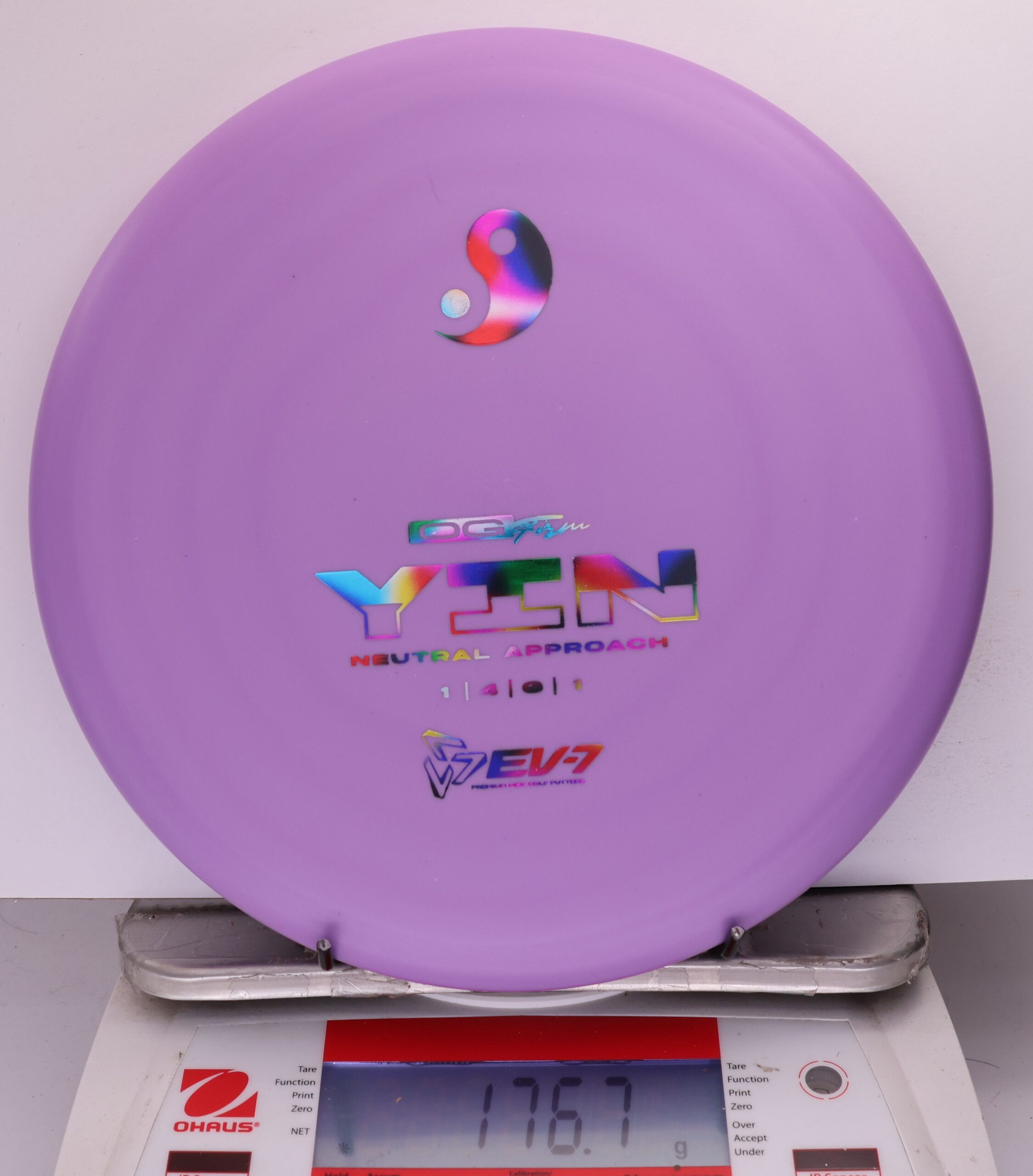 The Yin is an air shot disc, it’s slow, with a neutral flight, shallow, and beadless. It holds whatever line you throw it on, and floats in to the green at the end of its flight. It will both and hyer and anhyzer line, without the harsh fade or dump of more overstable approach discs. Due to it’s low speed, the Yin won’t blow past the basket either – it’s perfect for shots 250′ and in.