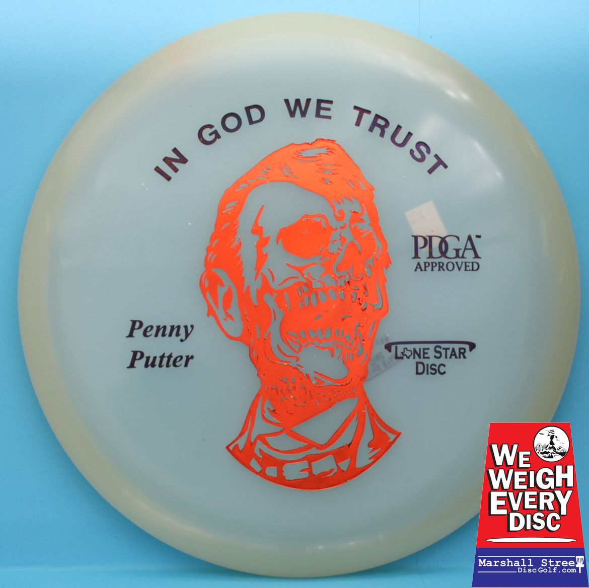 The Glow Penny Putter Halloween 23 is made by Lone Star Discs.