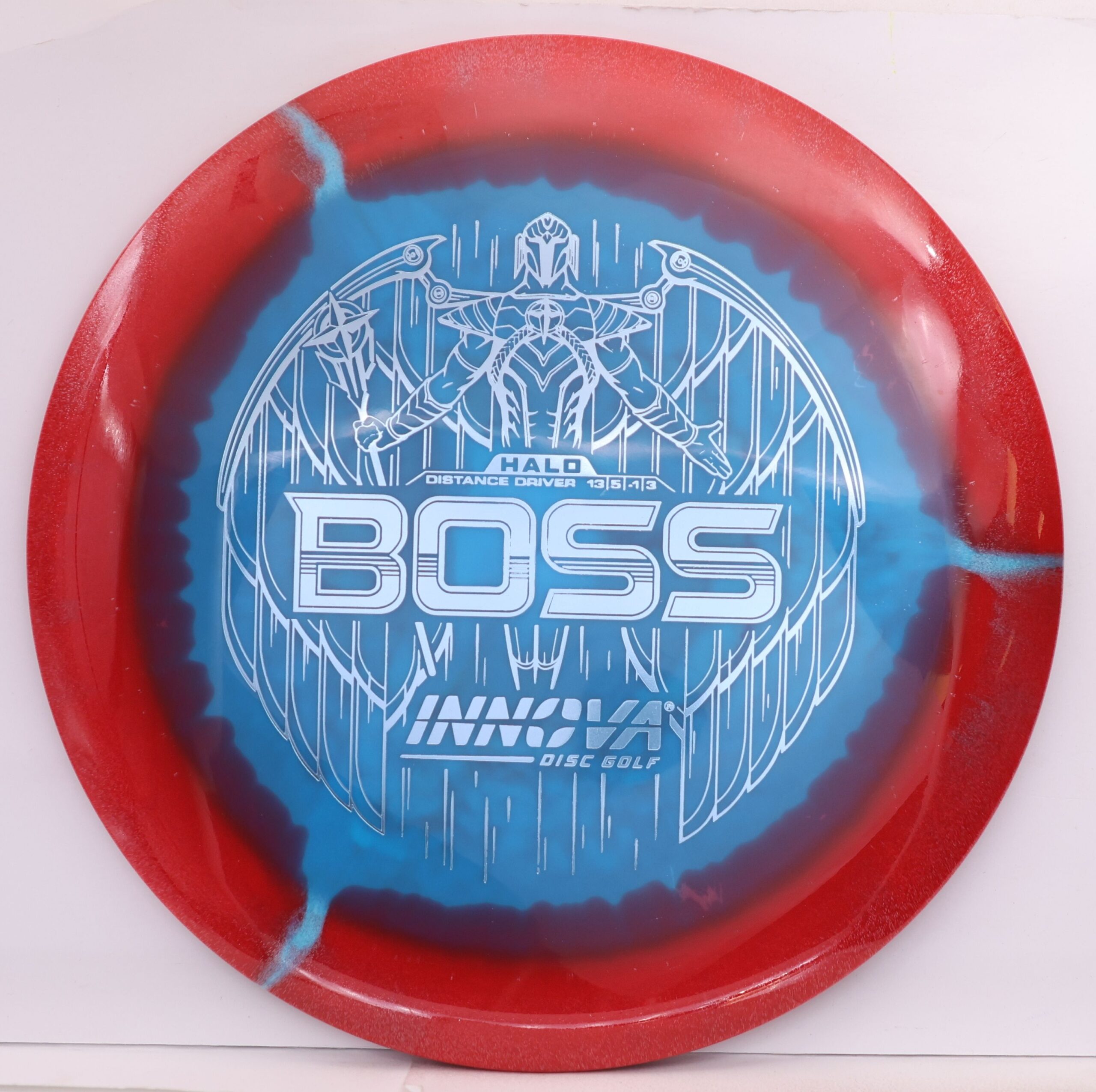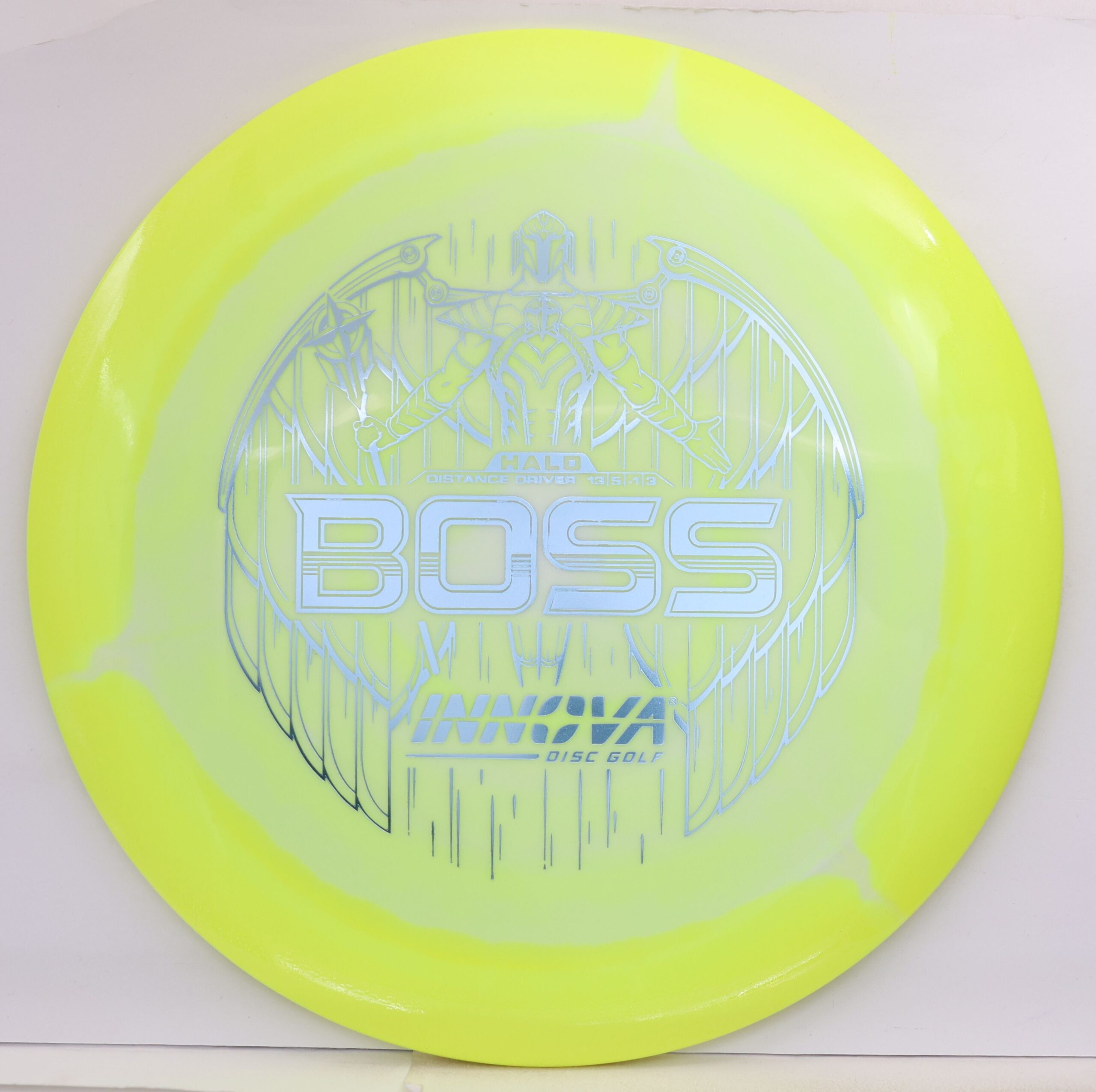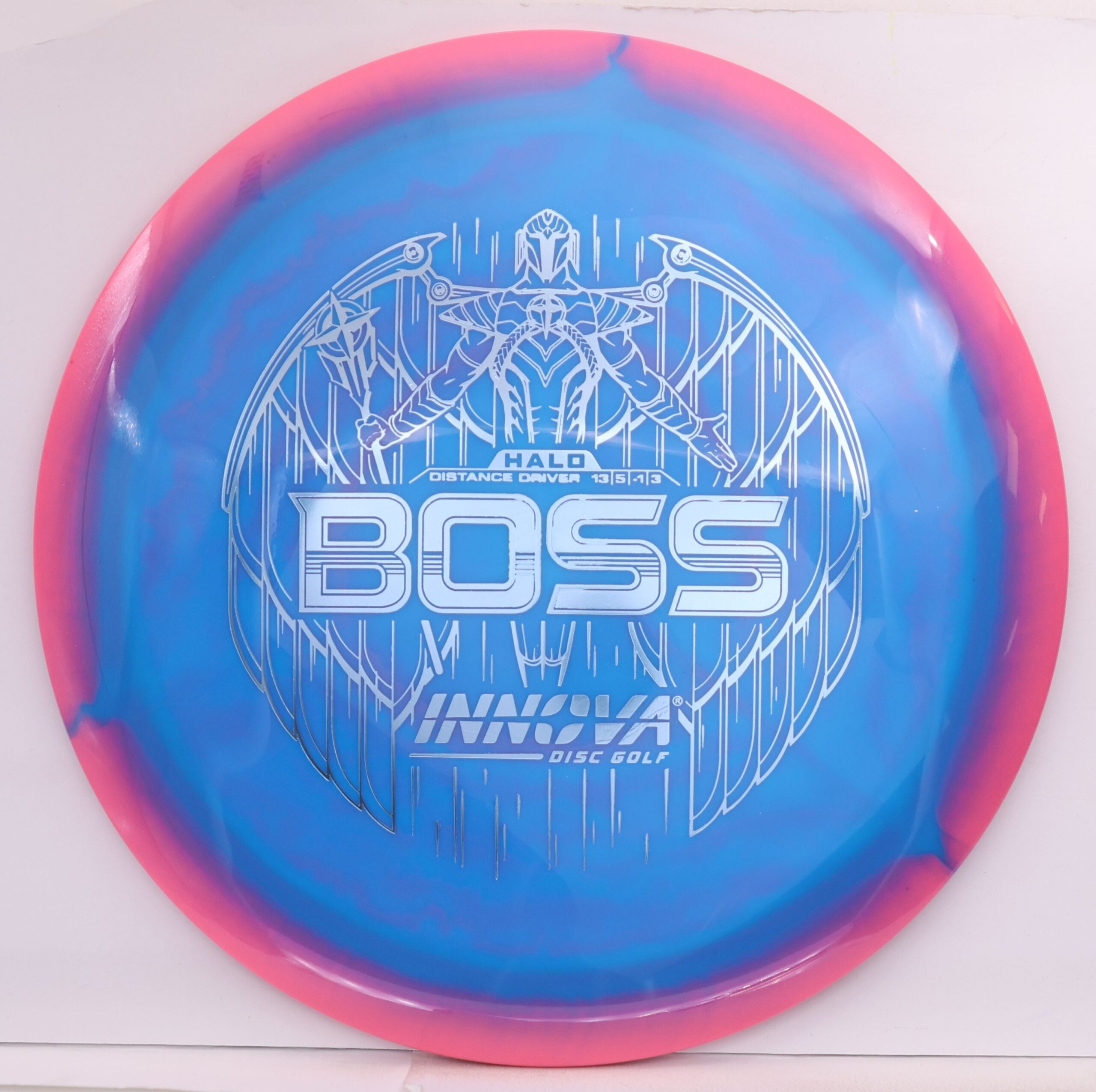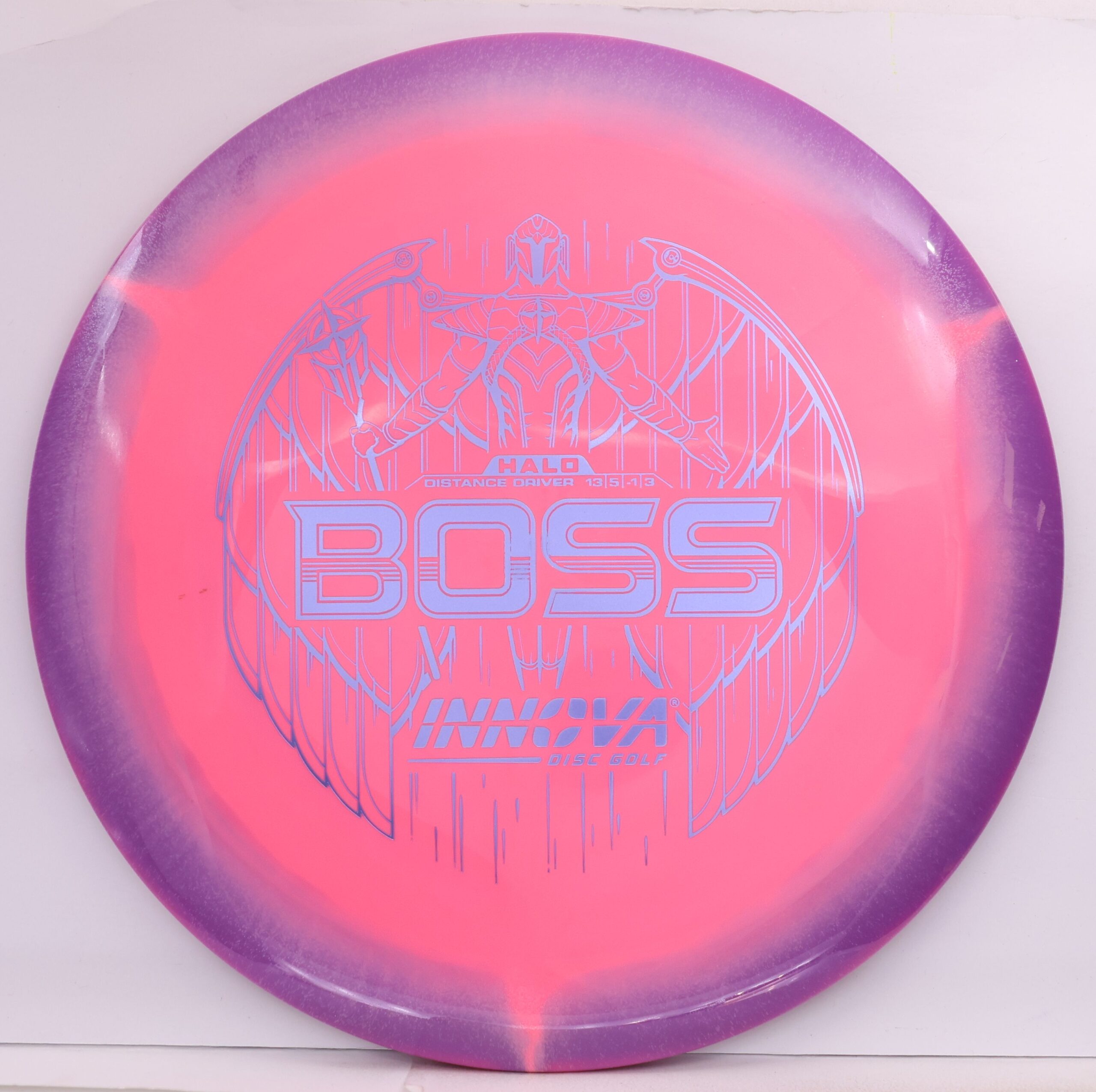 The Halo Star Boss is a powerhouse distance driver designed for advanced throwers seeking maximum distance and reliable fade. Featuring Innova’s premium Halo Star plastic, it offers exceptional durability, grip, and striking visuals—perfect for big arms and windy conditions alike.