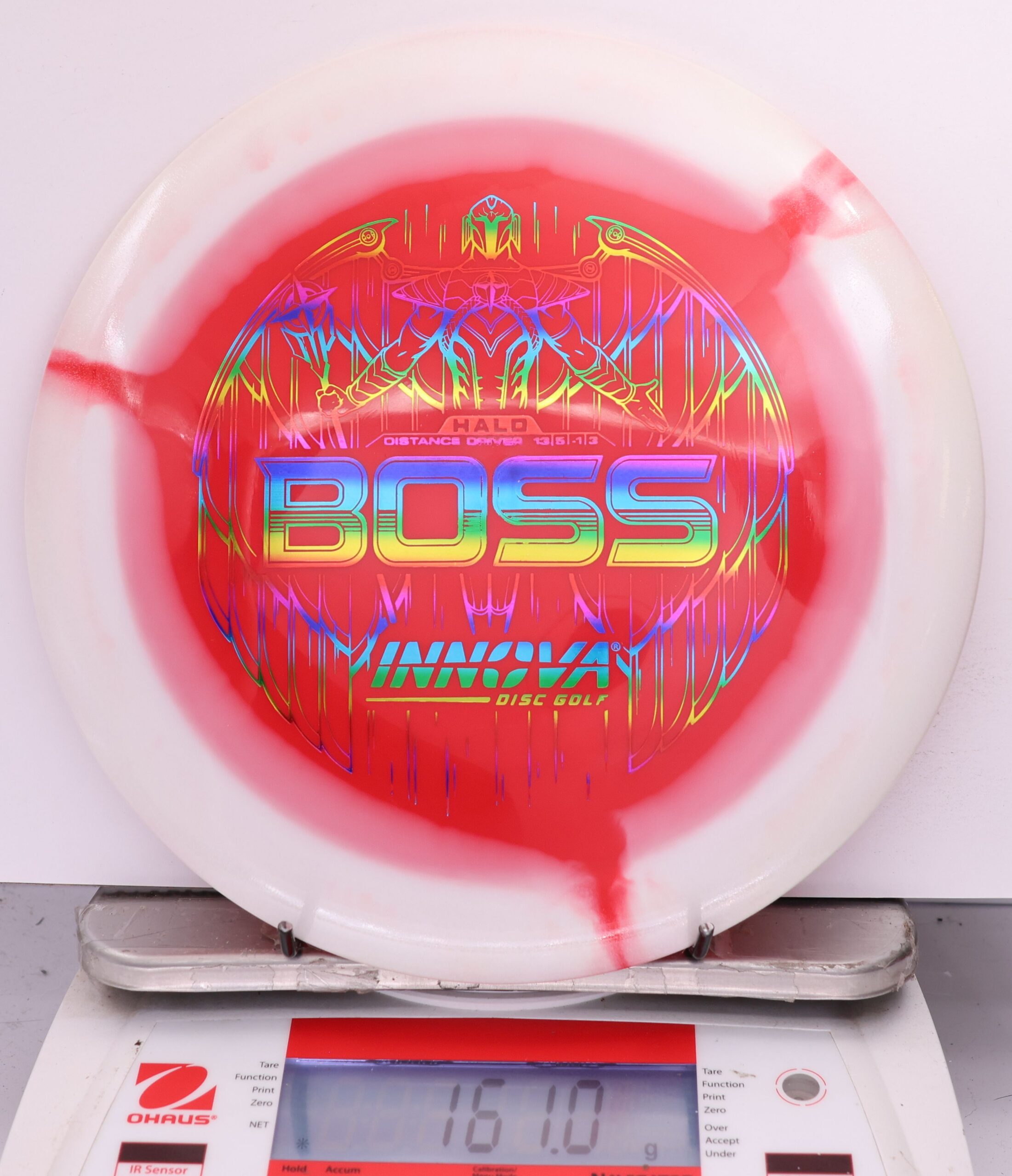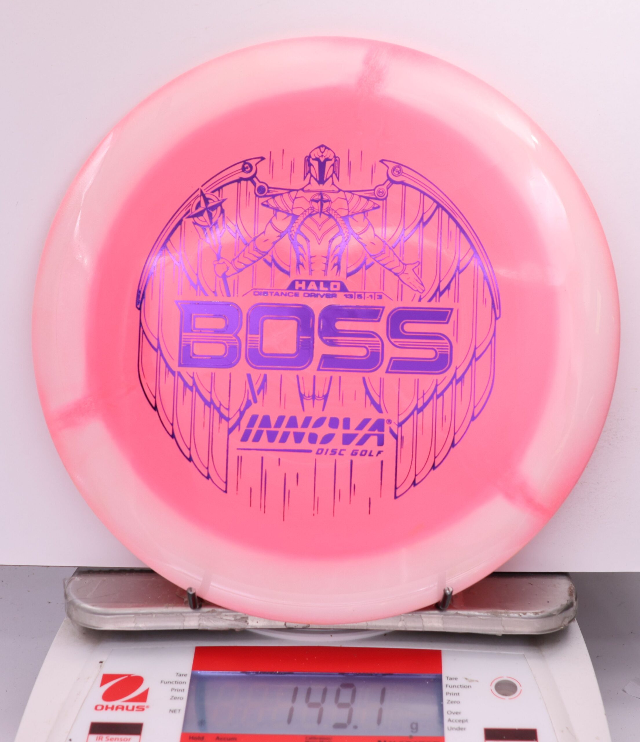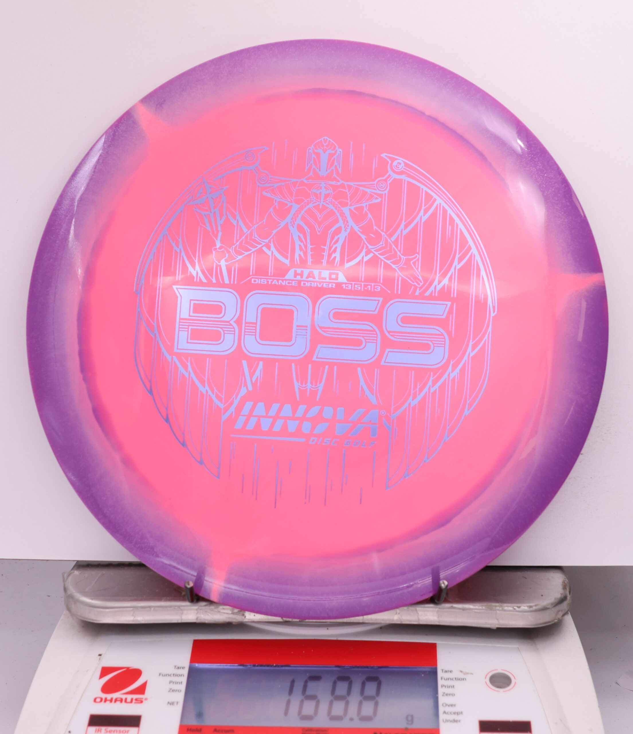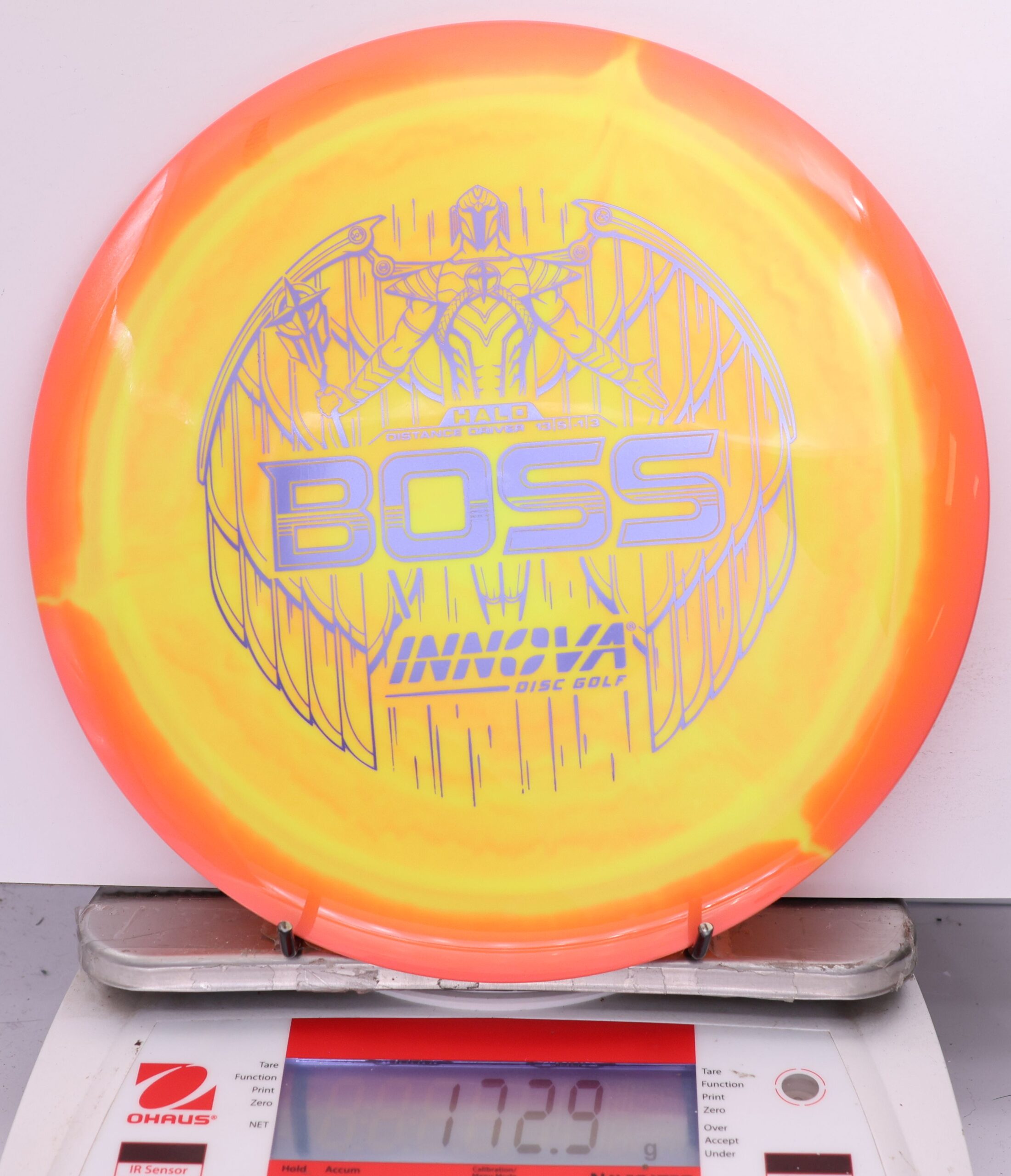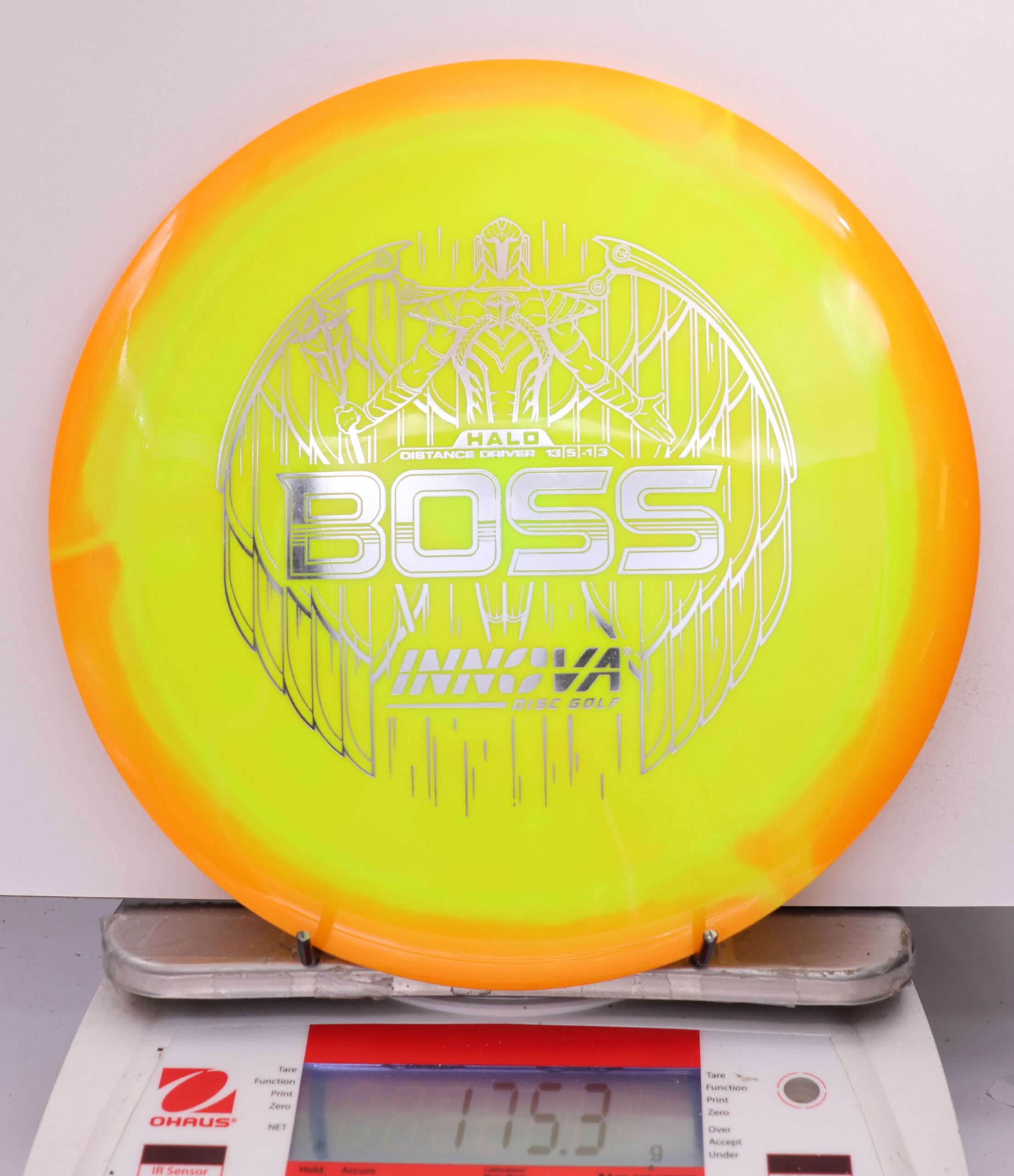 The Halo Star Boss is a powerhouse distance driver designed for advanced throwers seeking maximum distance and reliable fade. Featuring Innova’s premium Halo Star plastic, it offers exceptional durability, grip, and striking visuals—perfect for big arms and windy conditions alike.