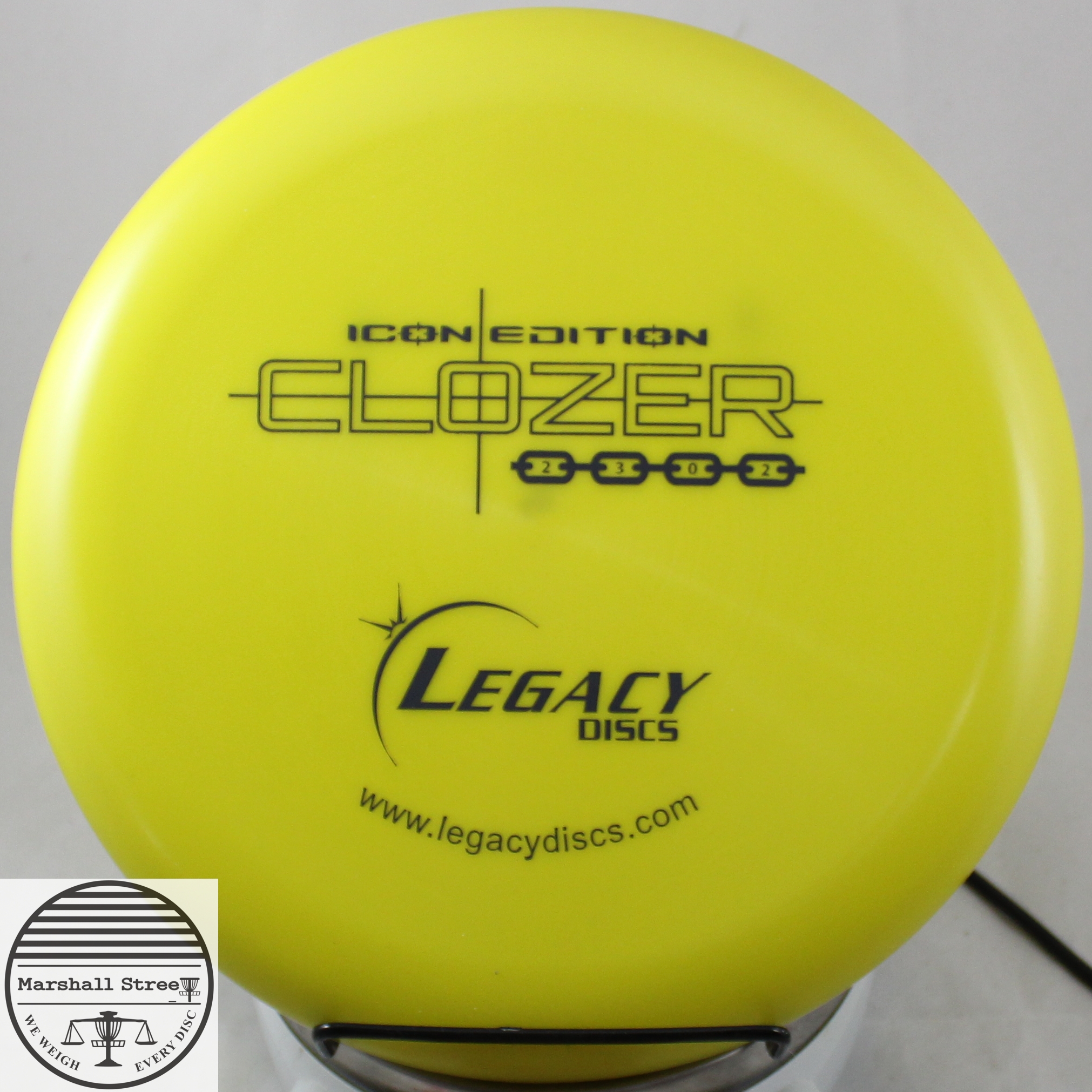 The Legacy Clozer is a straight flying, low speed disc that has fade at the end of its flight. This disc can be a stable short range driver or a putt and approach disc. It was designed to give a player the edge for a short range drive, upshot, or putt into a head wind.