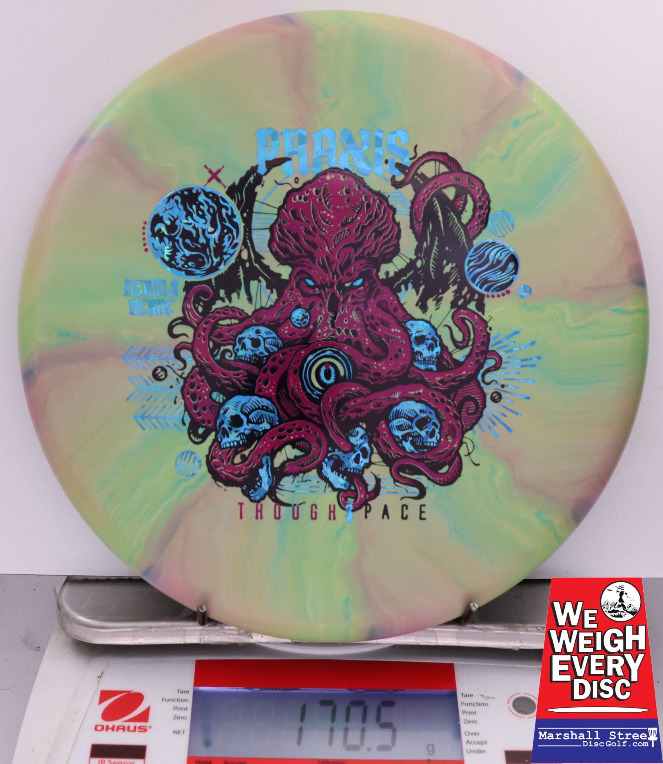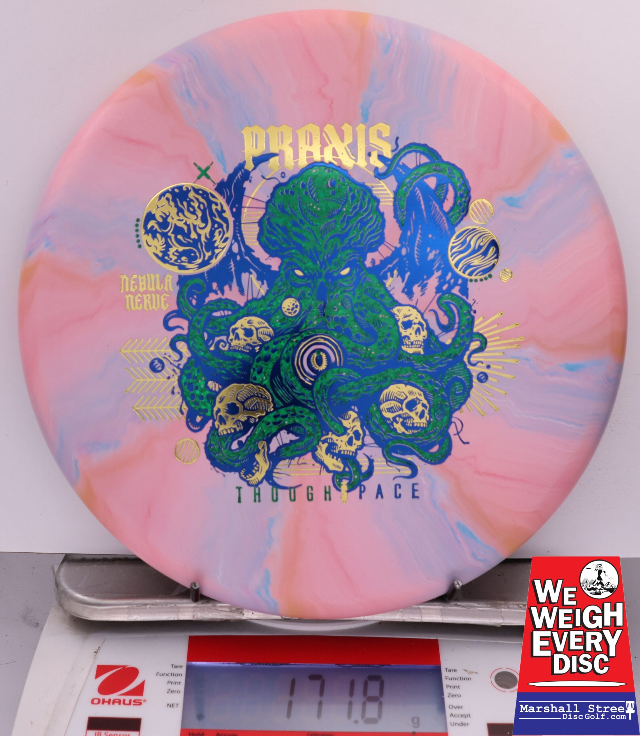 Experience unparalleled precision and comfort with the Nebula Nerve Praxis putter, engineered for disc golfers seeking a perfect blend of stunning grip and versatility on the course.