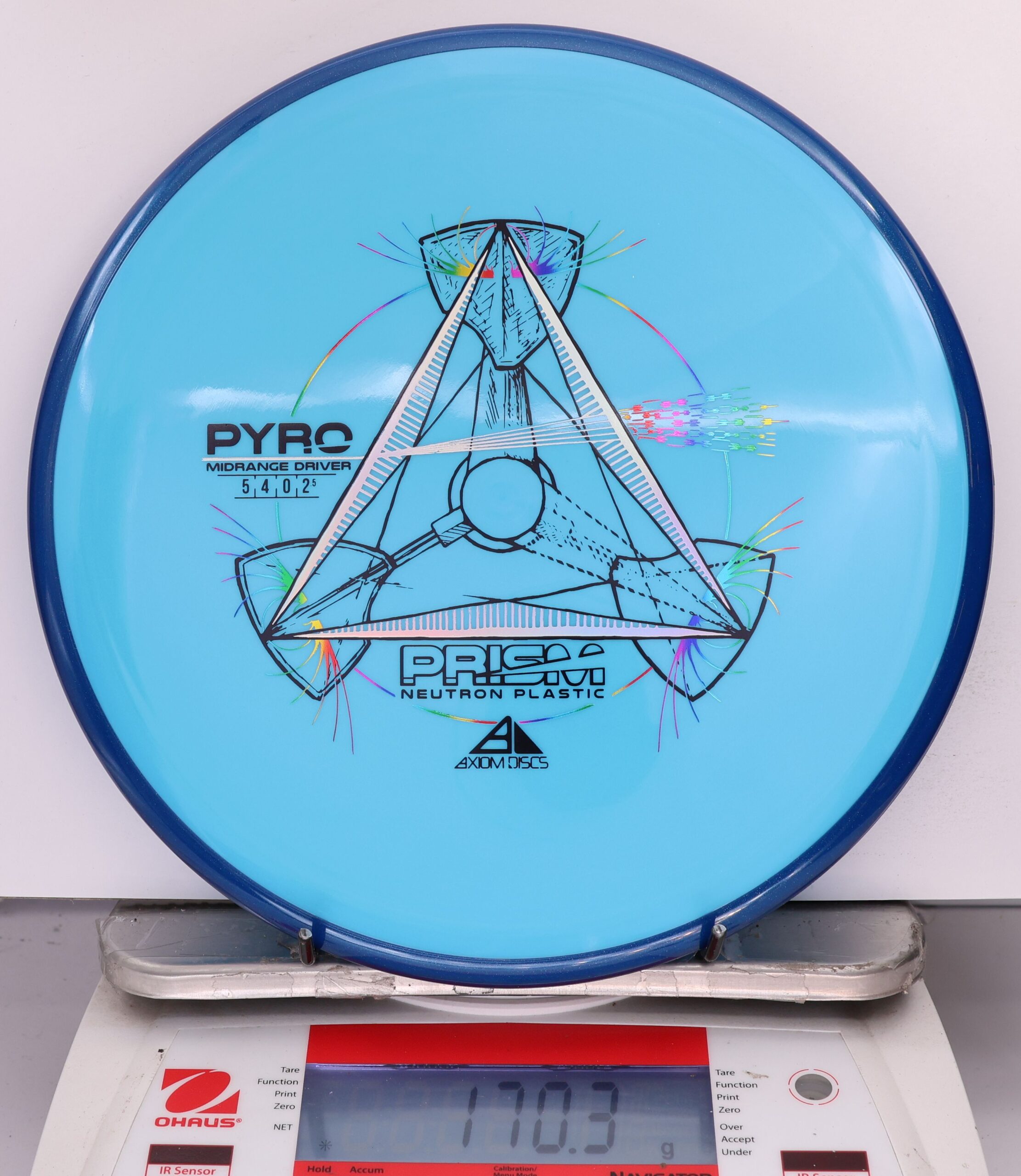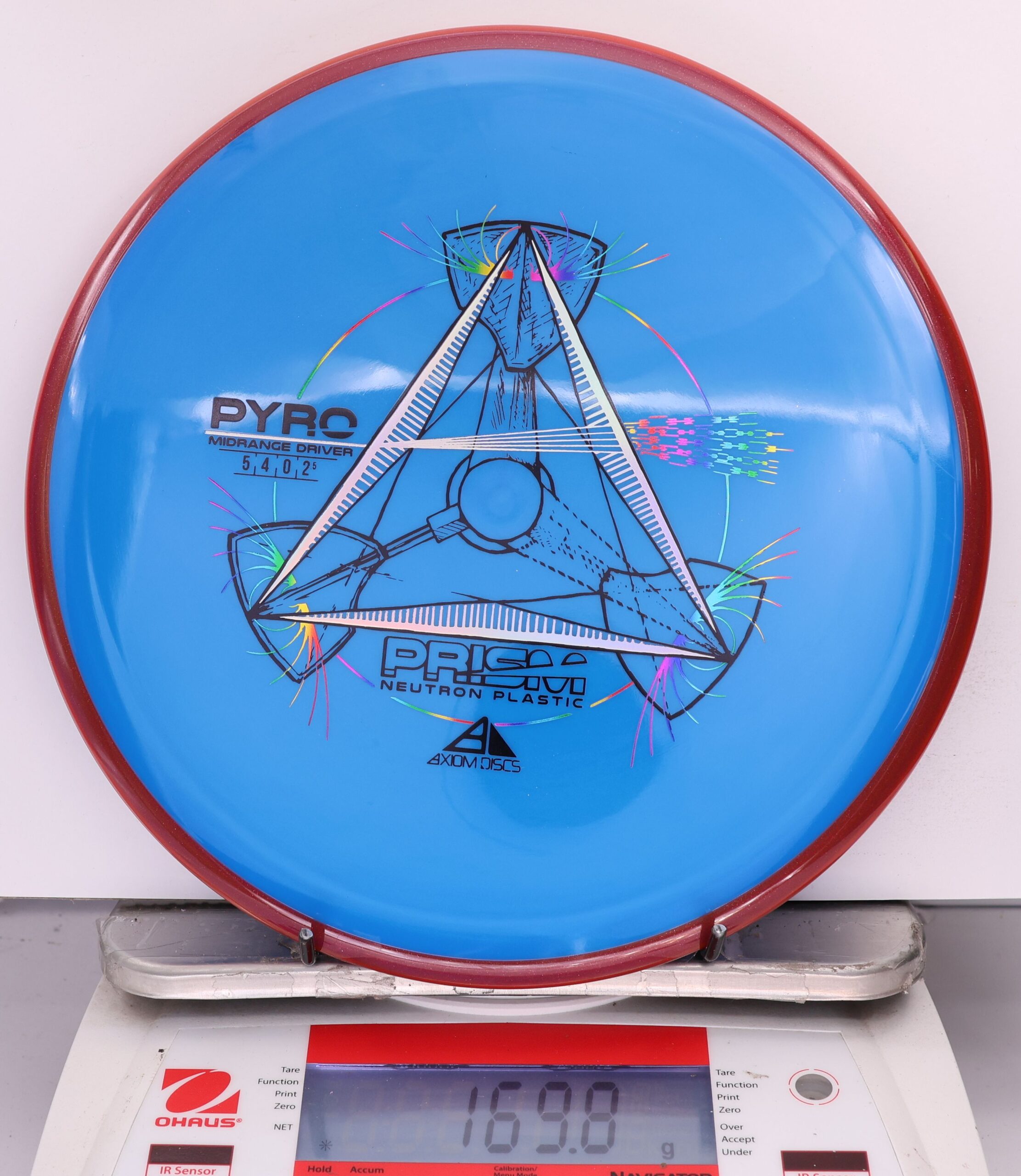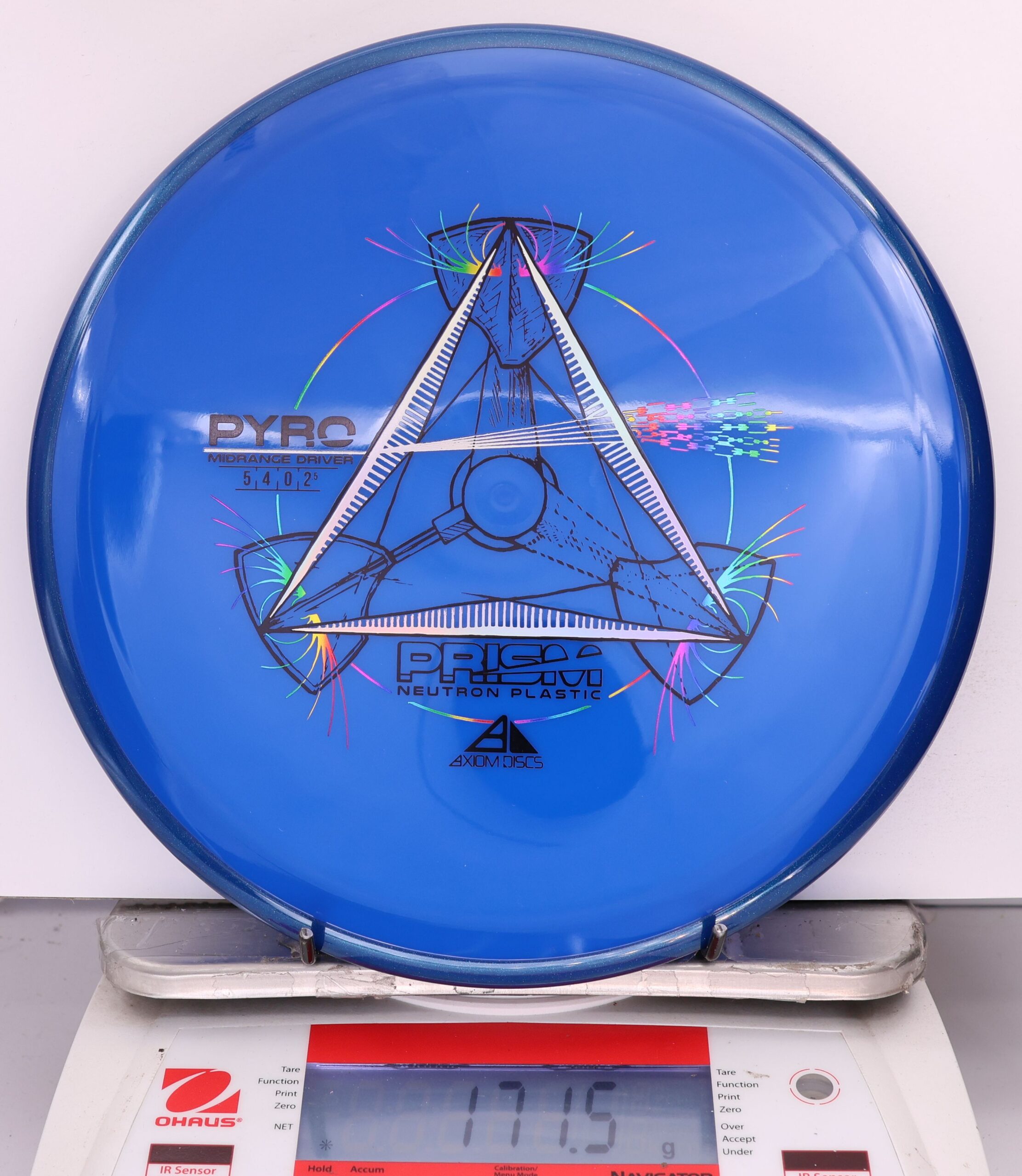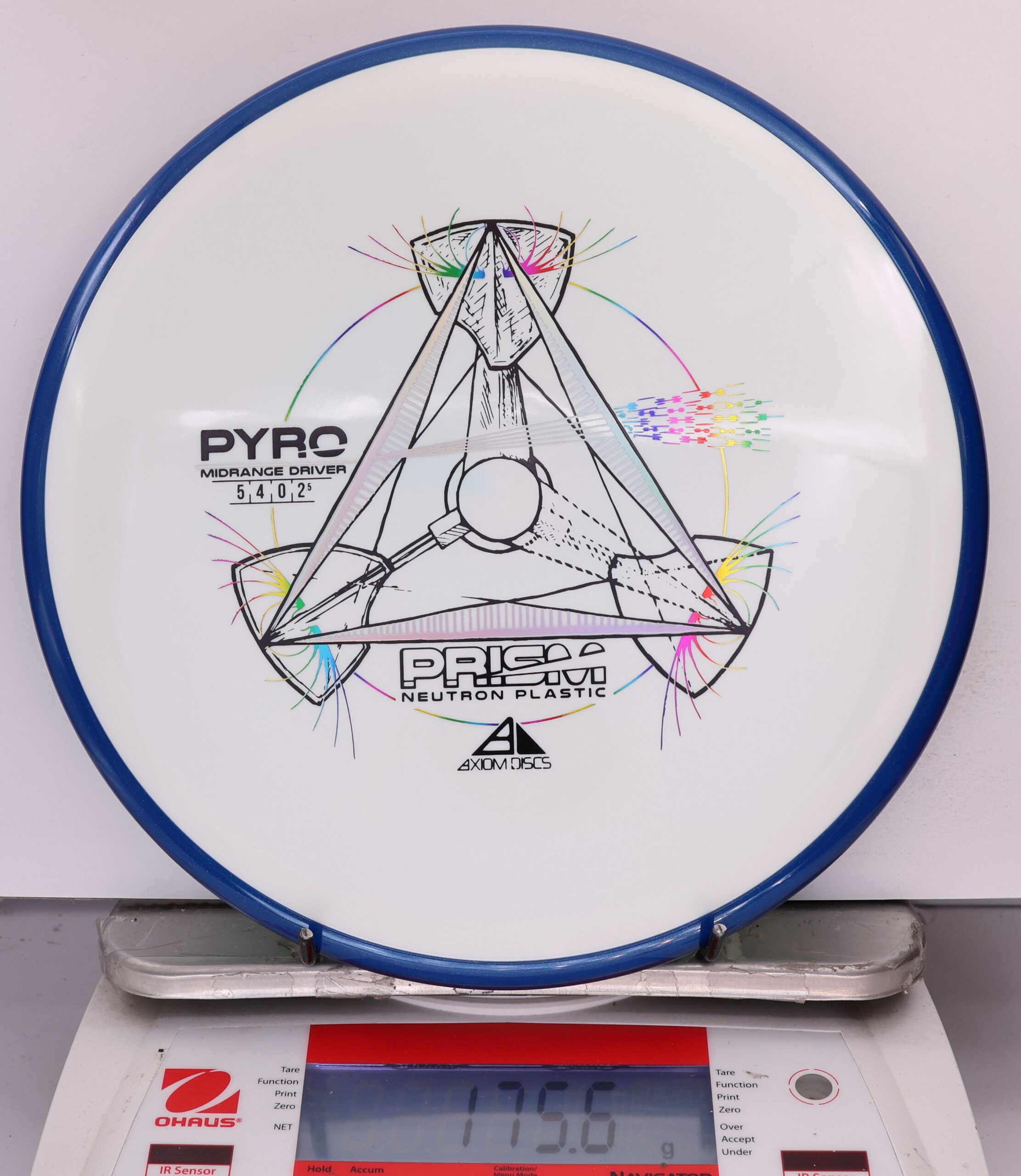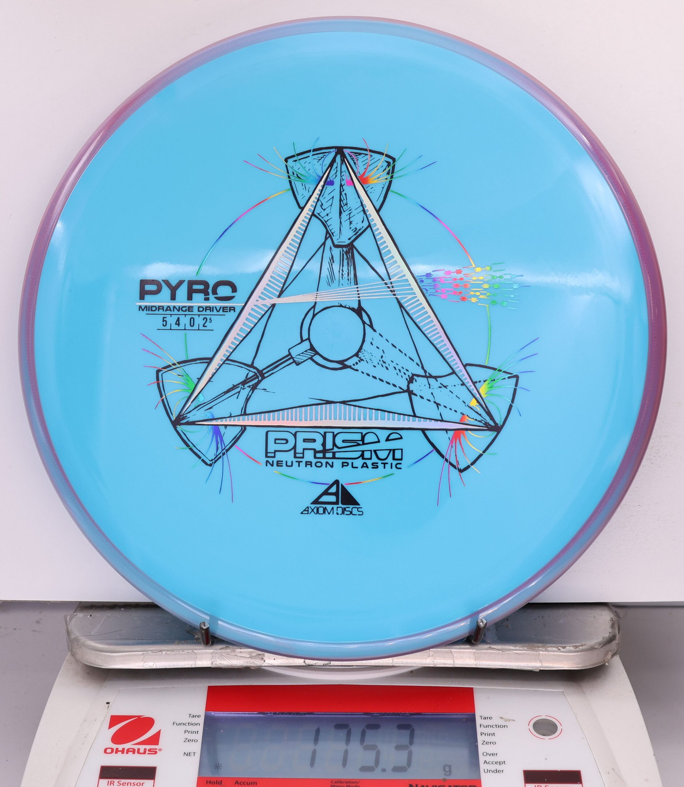 The Axiom Prism Neutron Pyro is a beefy midrange with a flashy, candy-coated rim and serious overstability. It’s made to handle power, fight wind, and end with a reliable fade—perfect for forehands, flex lines, and confident, controlled approaches.