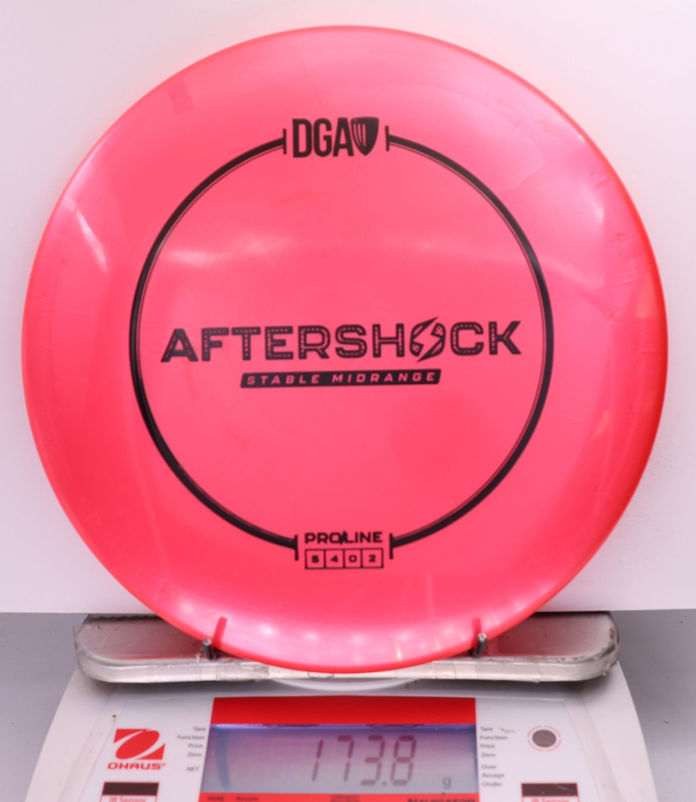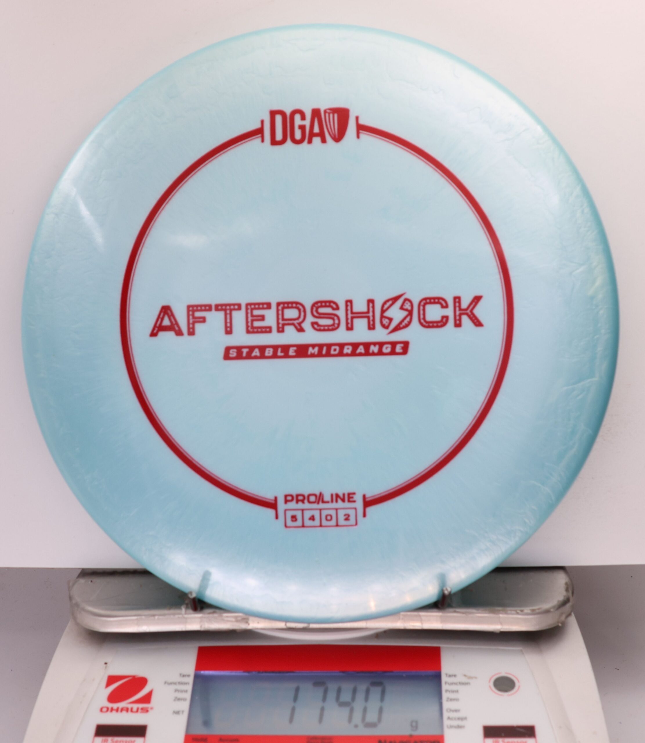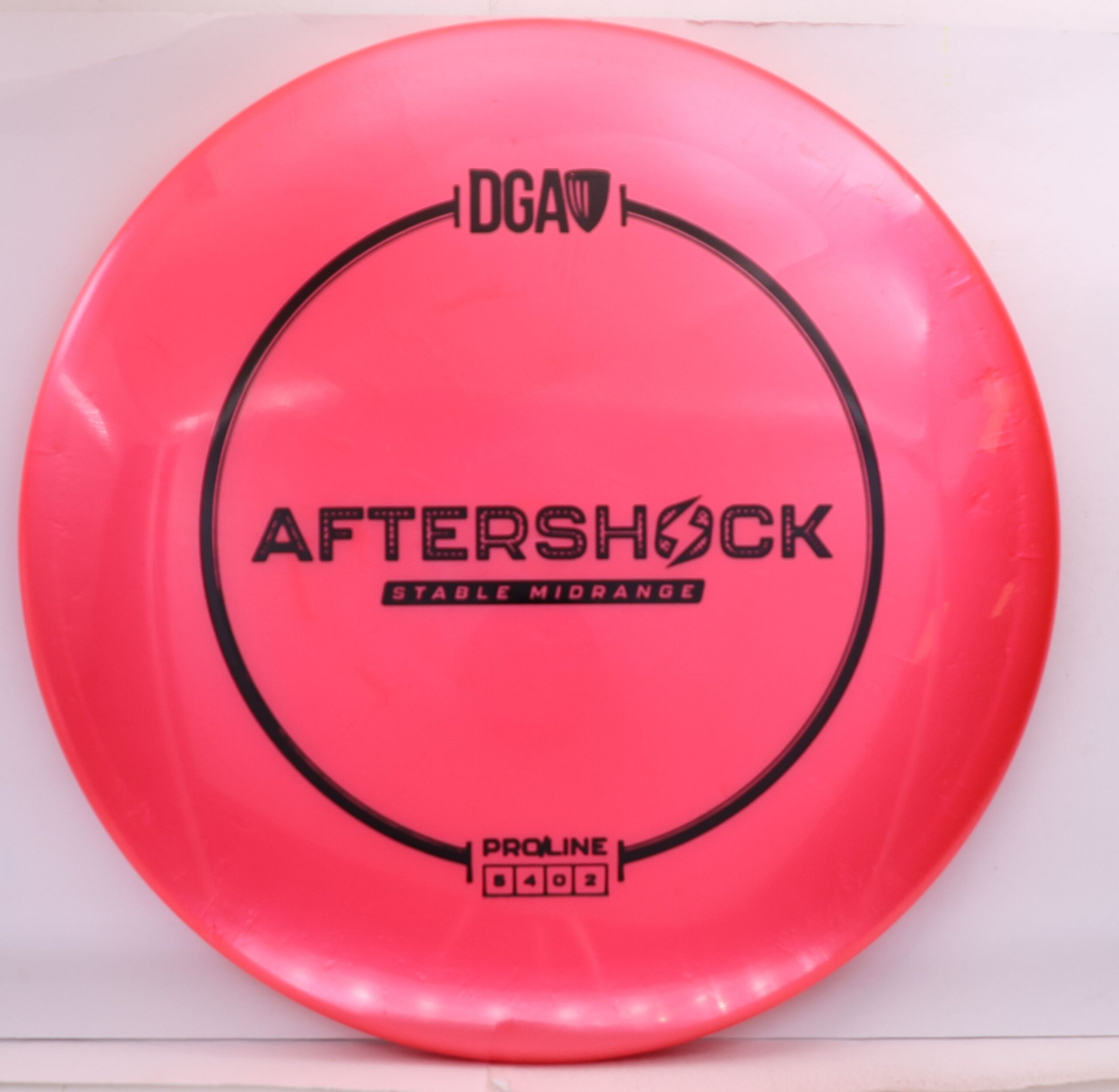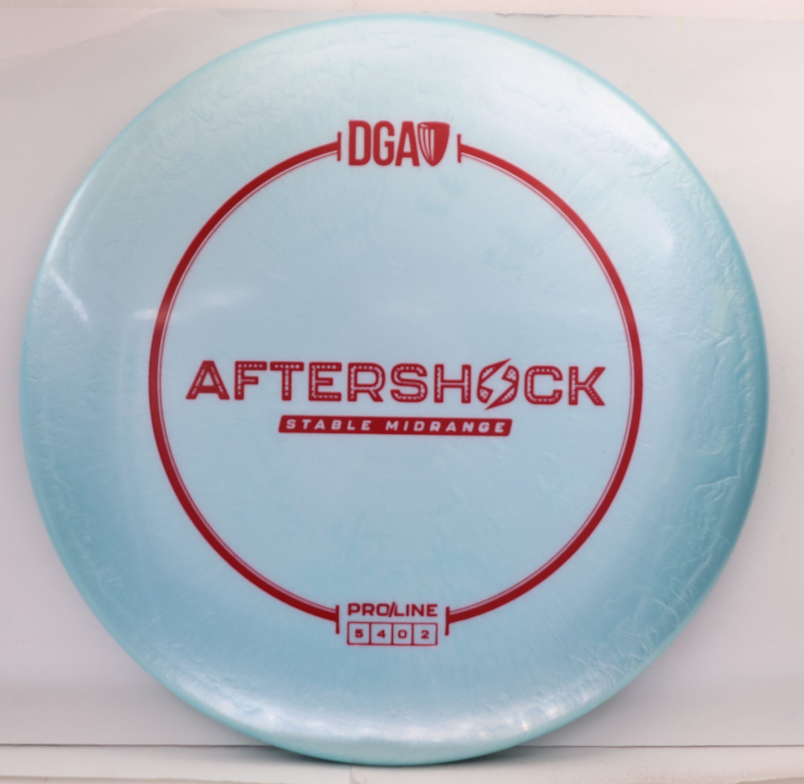 The Aftershock joins the rest of the DGA family with a slim stamp at the top of the disc. Flight pattern? Still a pretty straight shooter!