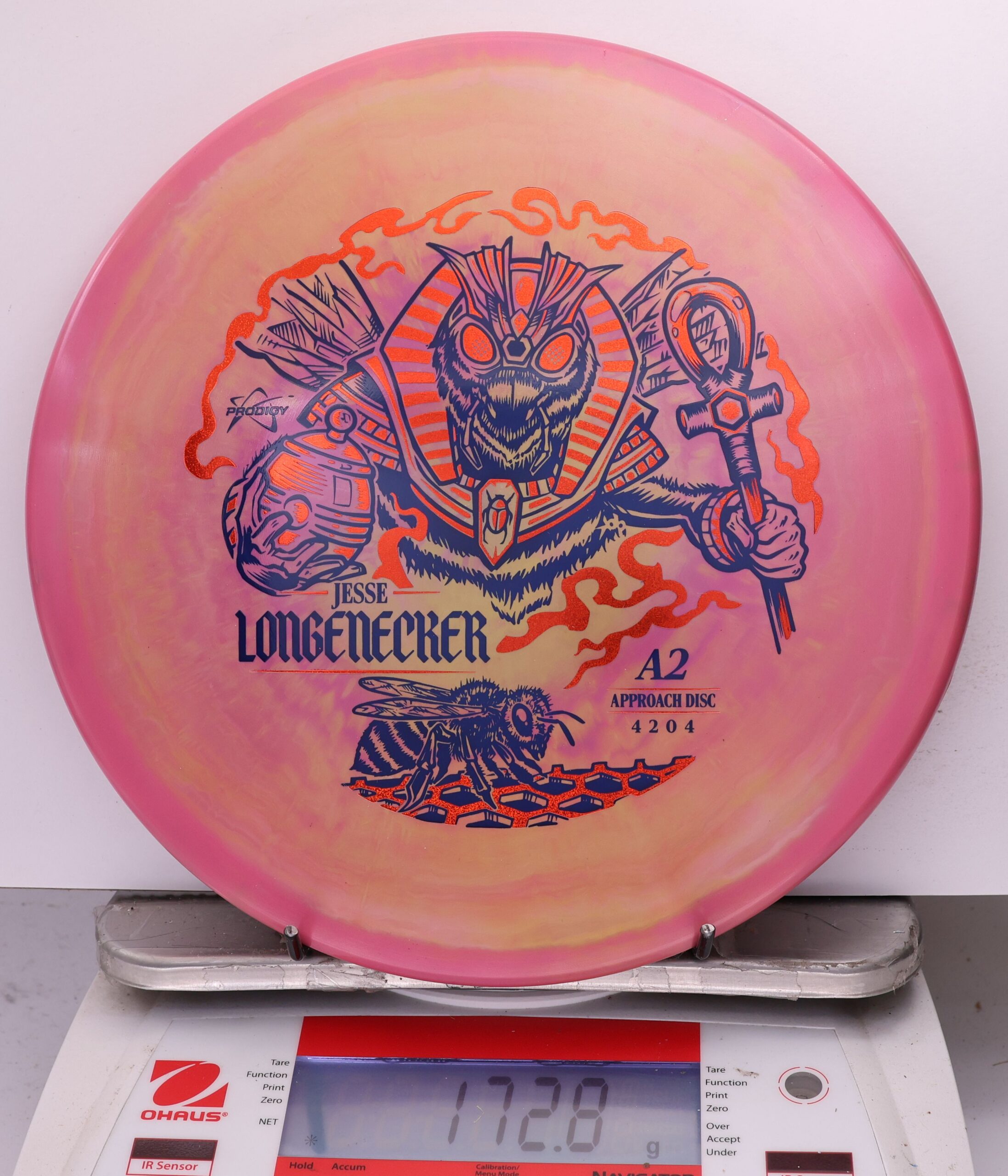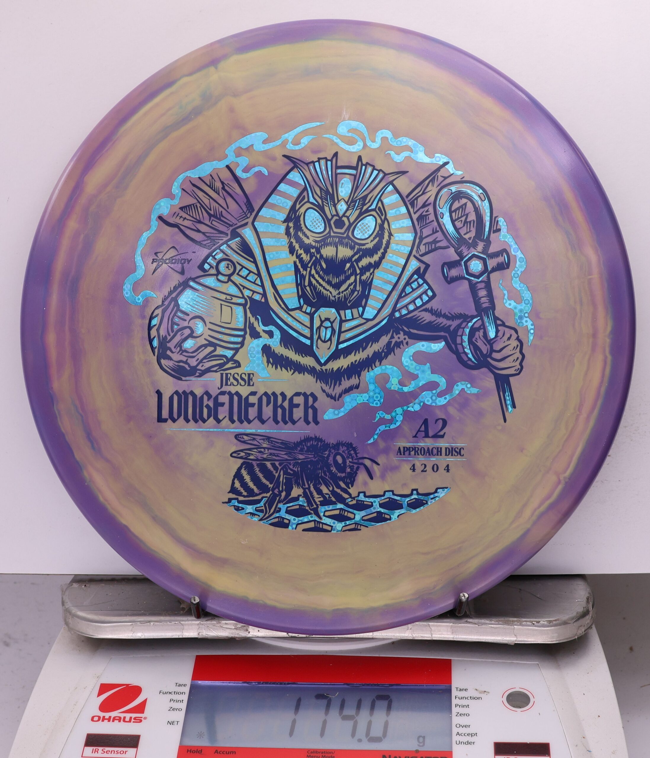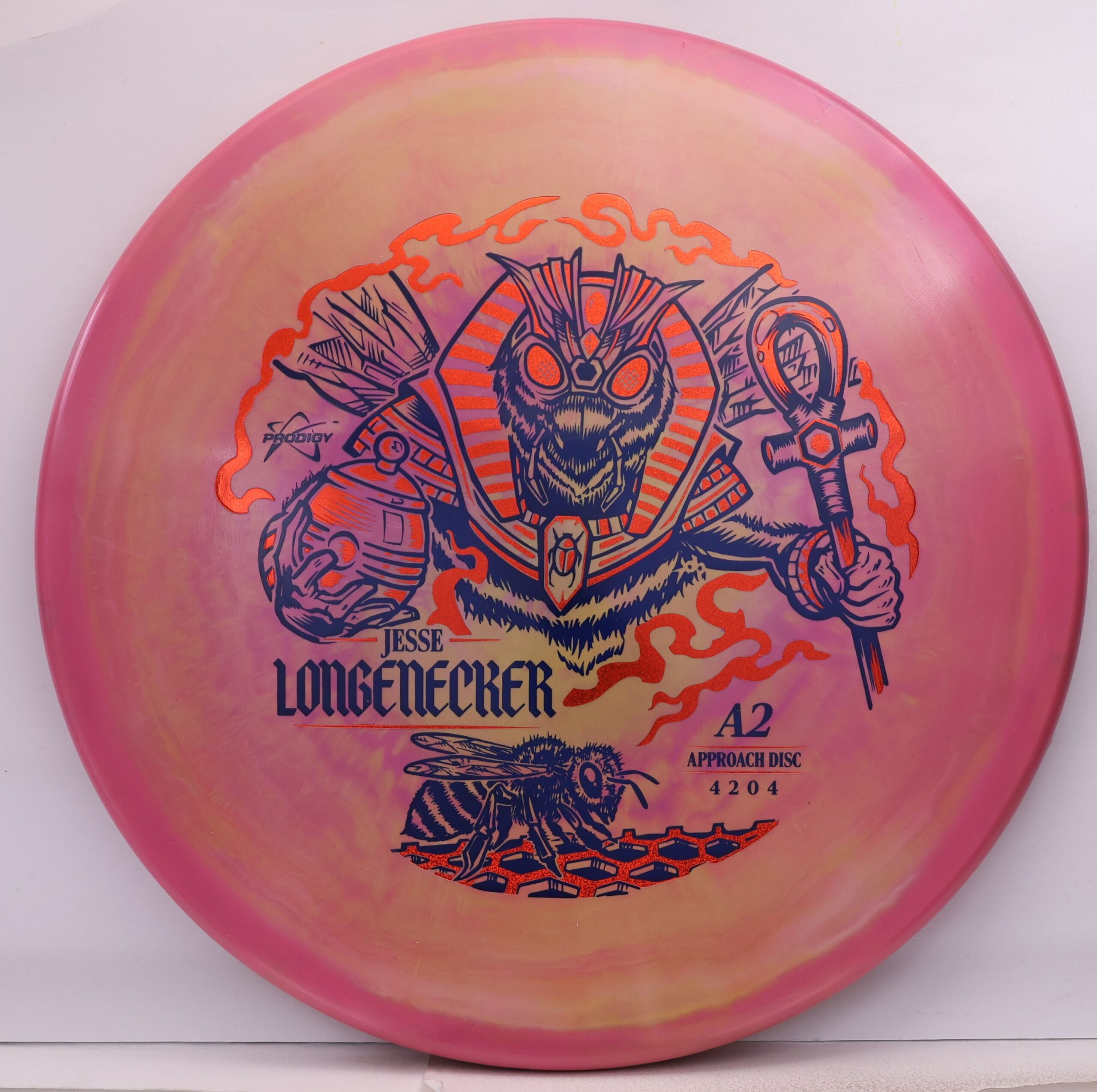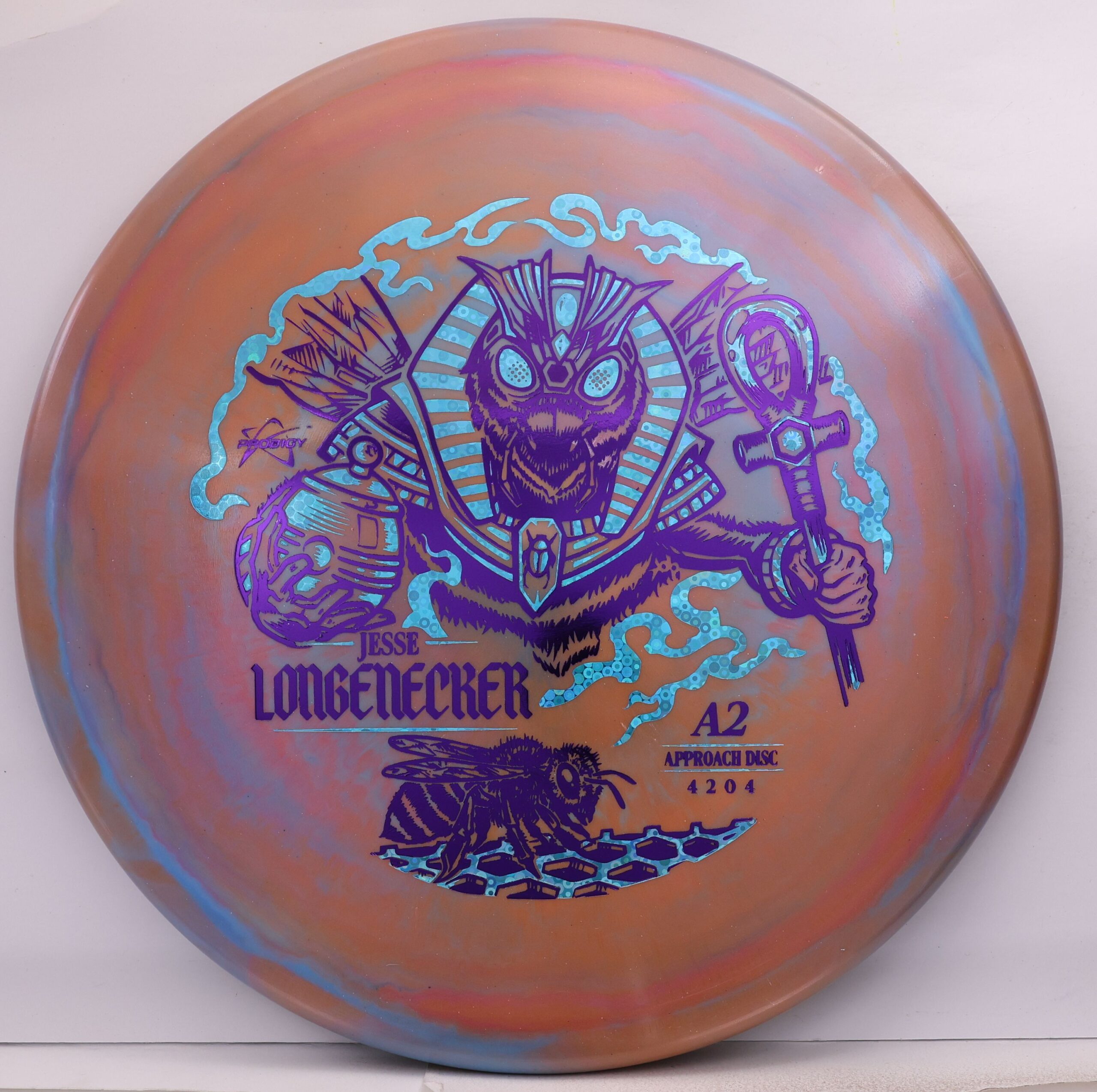 Prodigy A2 in 500 Spectrum — overstable, beaded approach disc with a flat top, torque resistance, and a strong forward fade. Longenecker 2026 Signature Series.