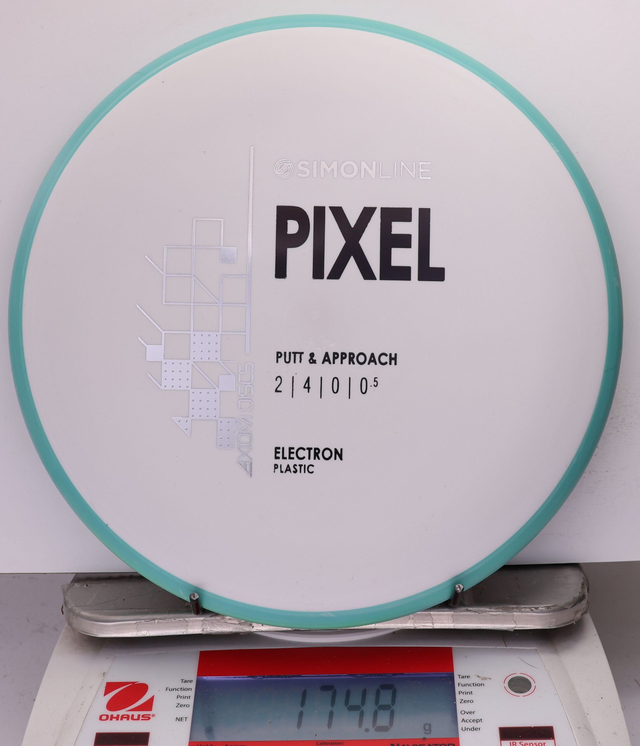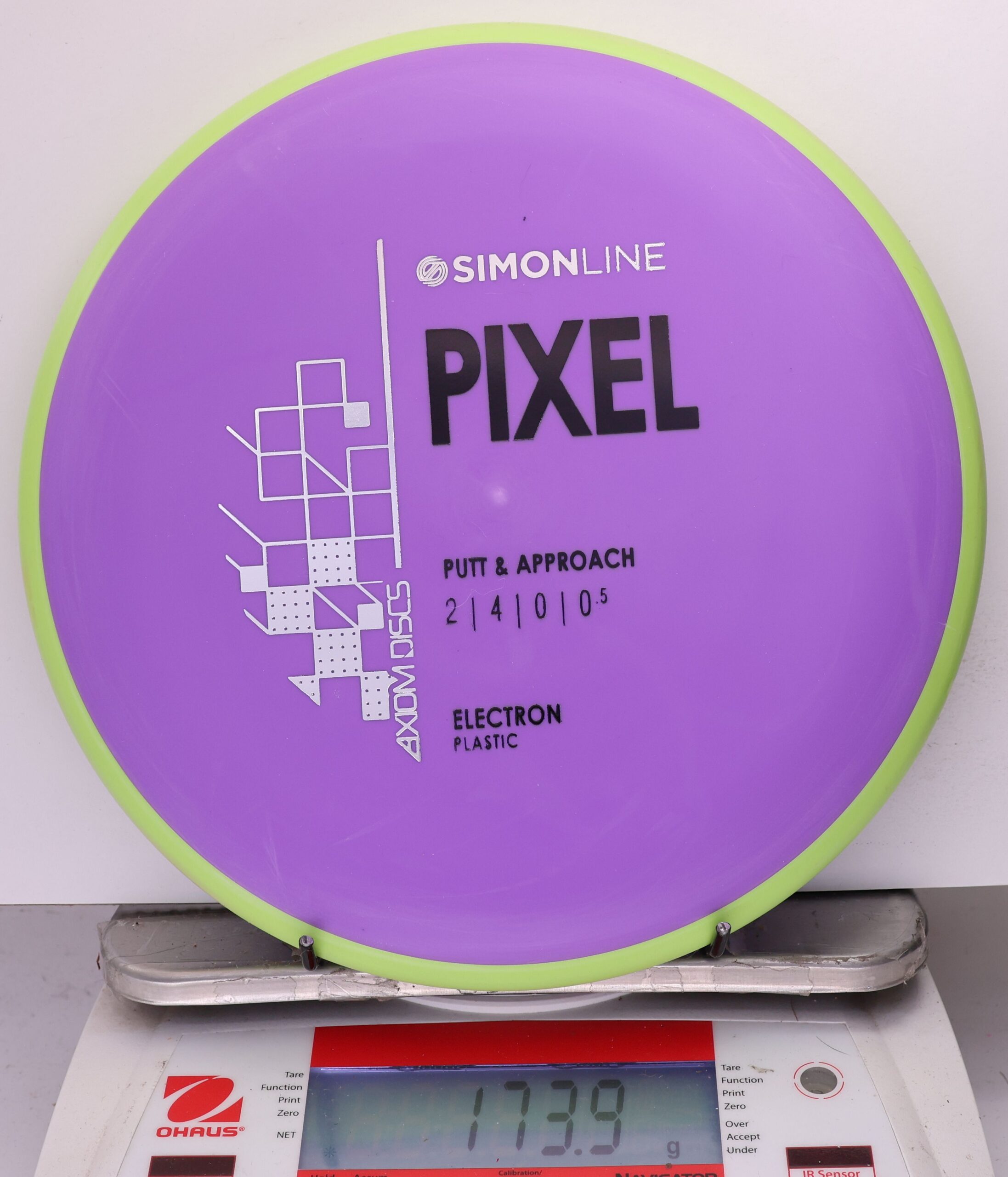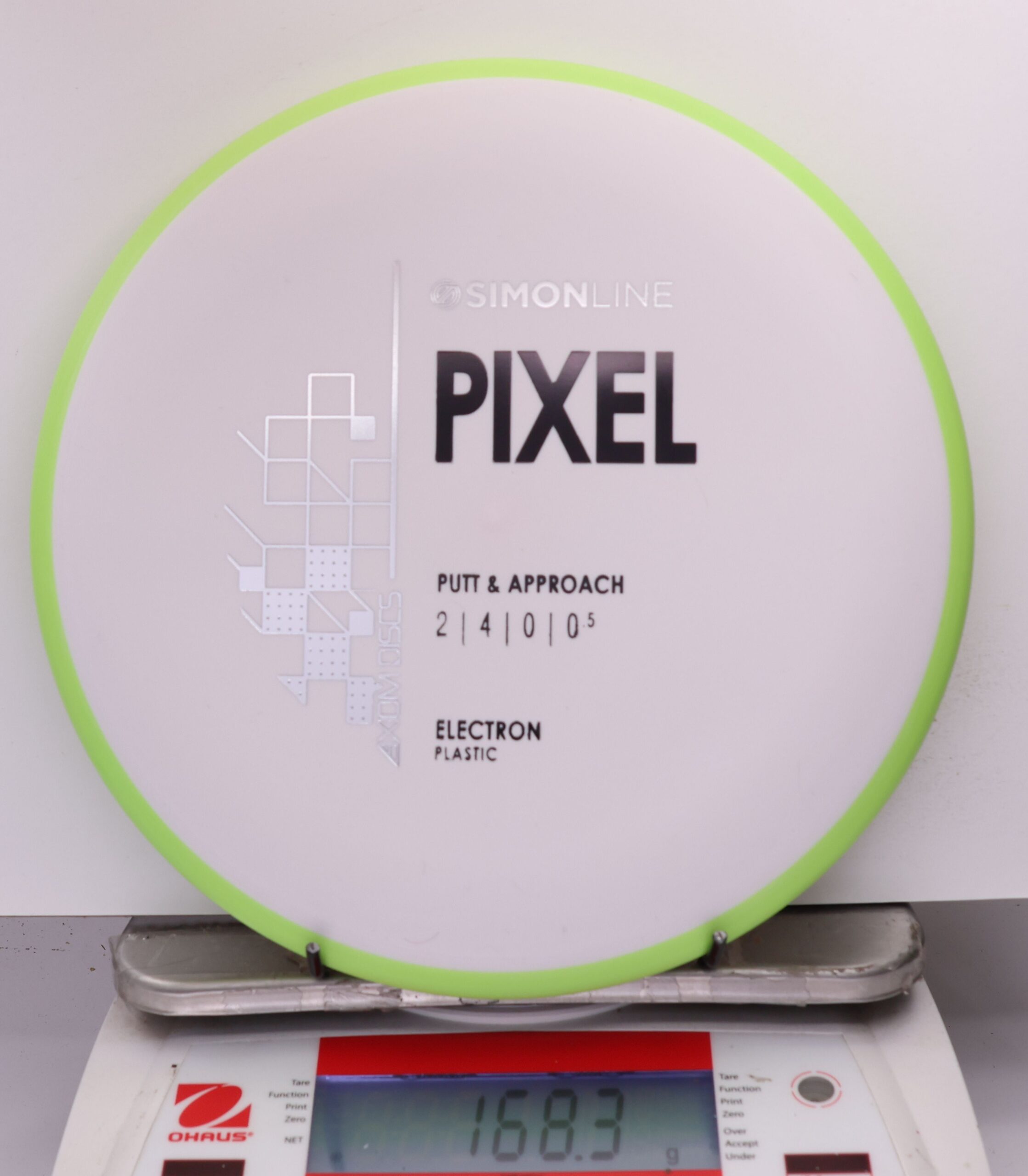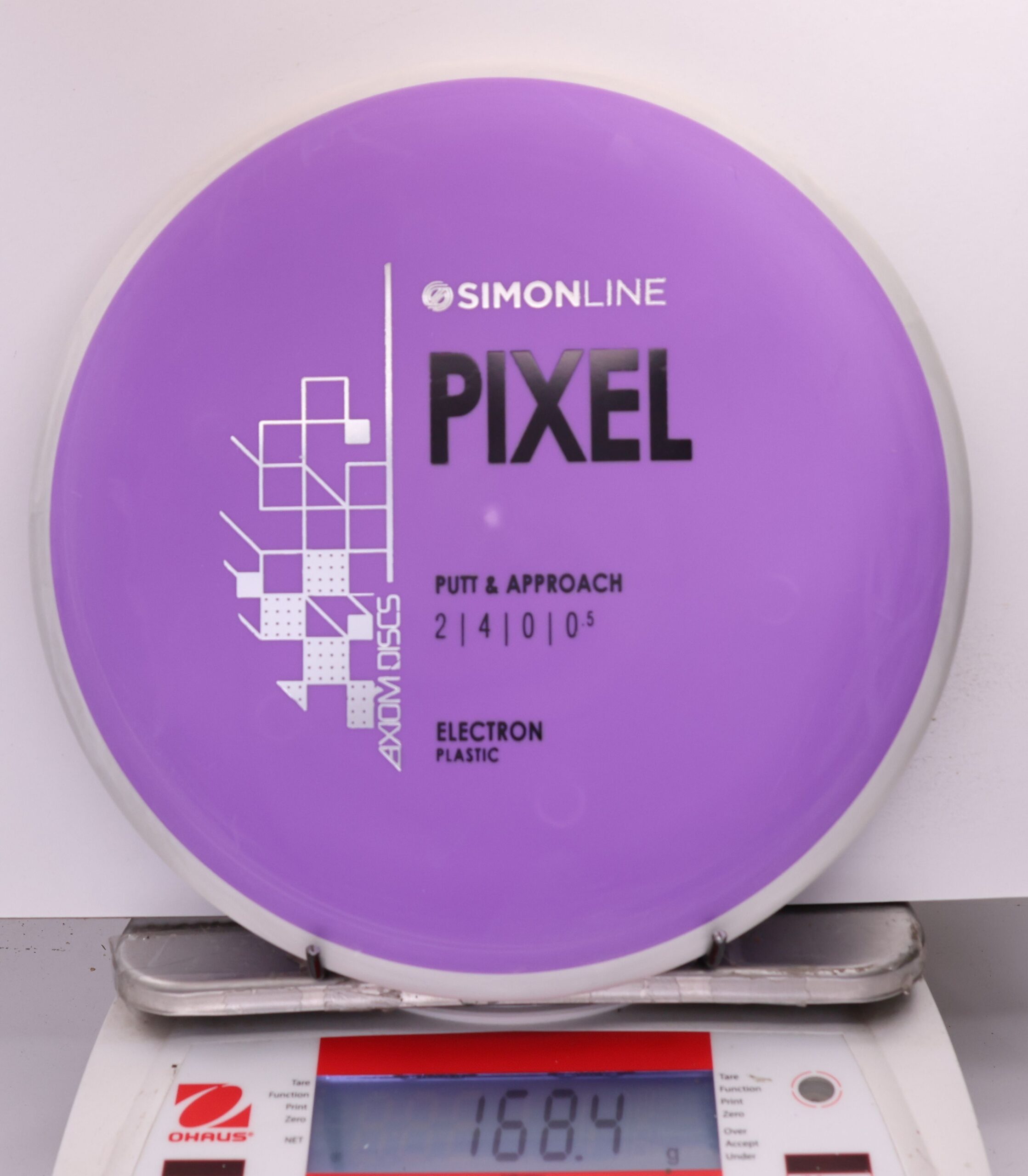 The Axiom Simon Line Electron Soft Pixel is a straight-stable putter with flight ratings of 2 | 4 | 0 | 0.5. Designed by Simon Lizotte, it features a deep profile and micro bead, offering exceptional glide and a smooth release.