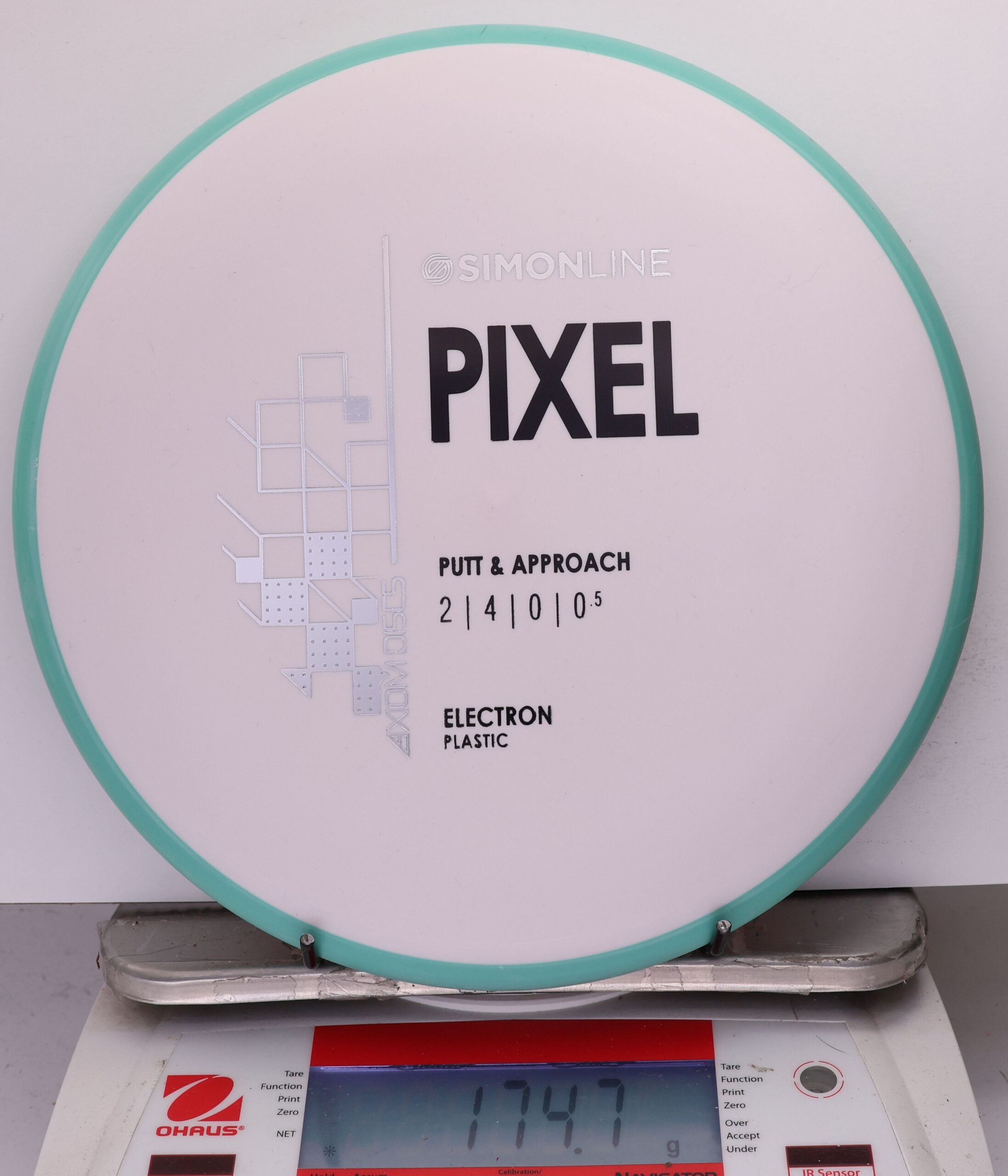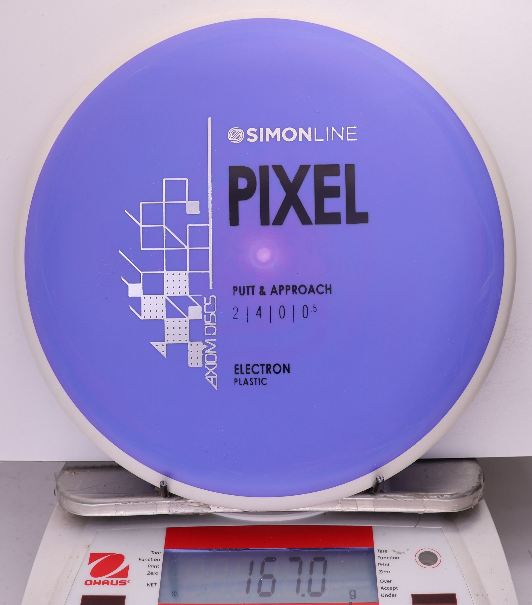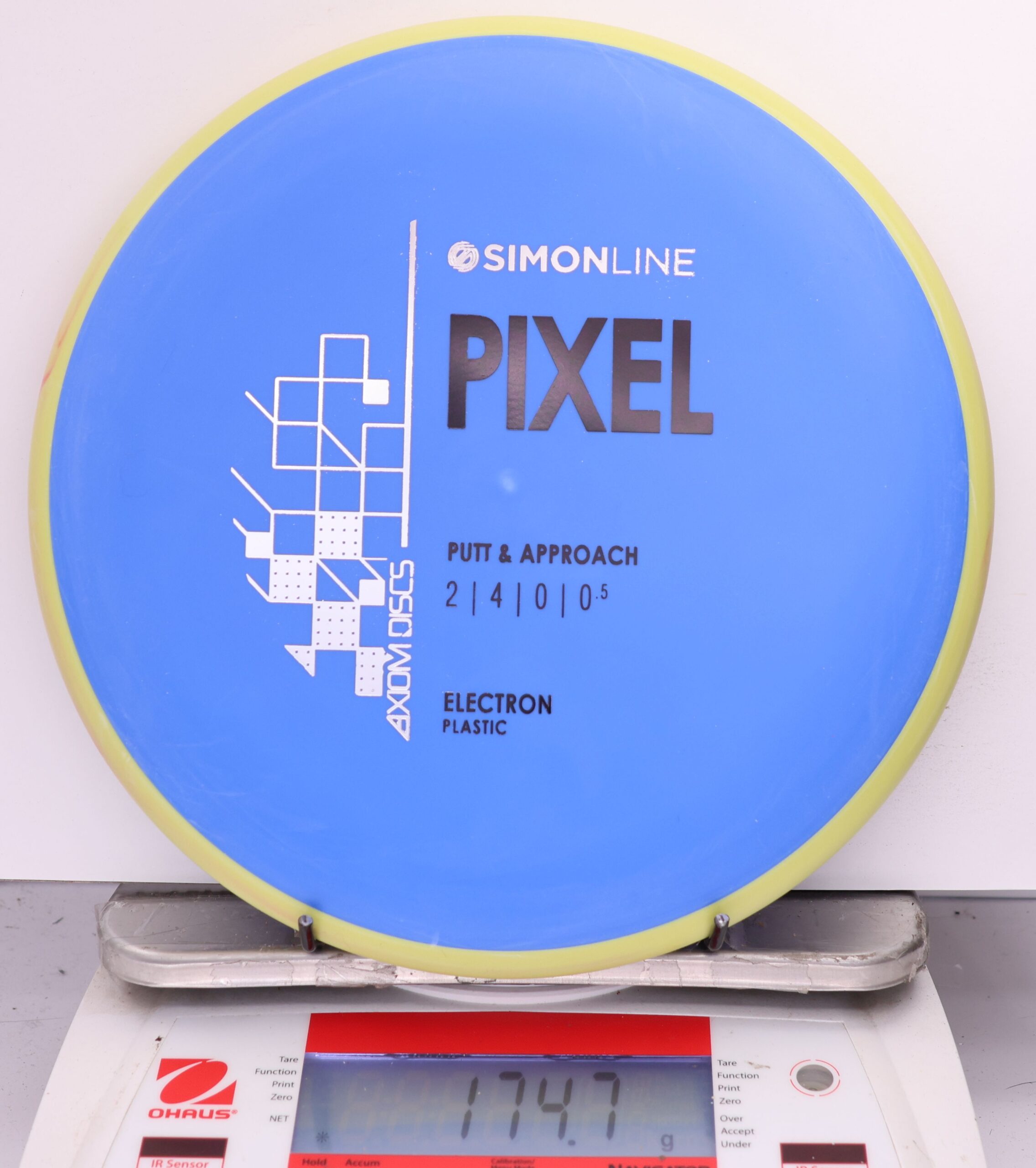 The Axiom Simon Line Electron Soft Pixel is a straight-stable putter with flight ratings of 2 | 4 | 0 | 0.5. Designed by Simon Lizotte, it features a deep profile and micro bead, offering exceptional glide and a smooth release.