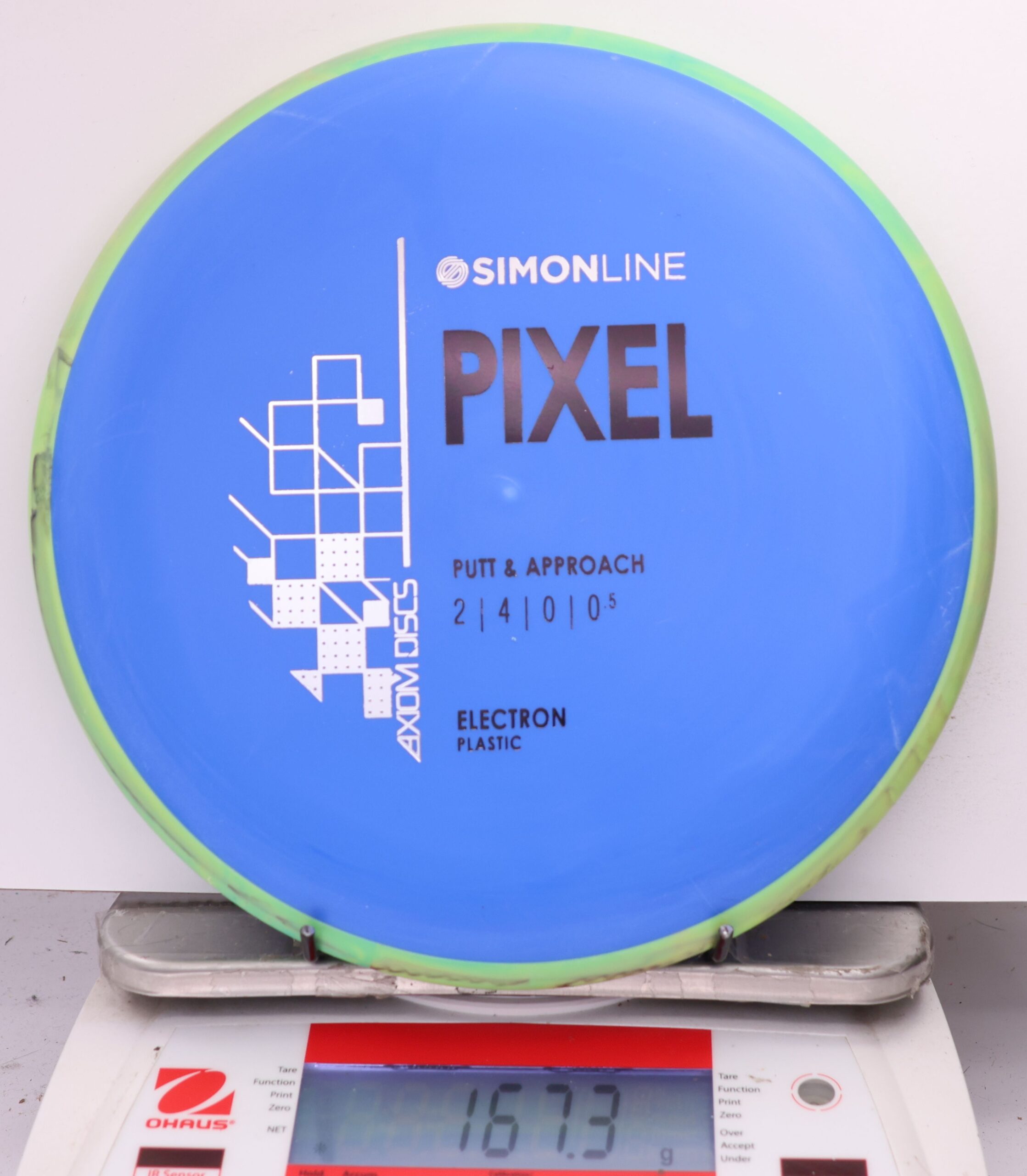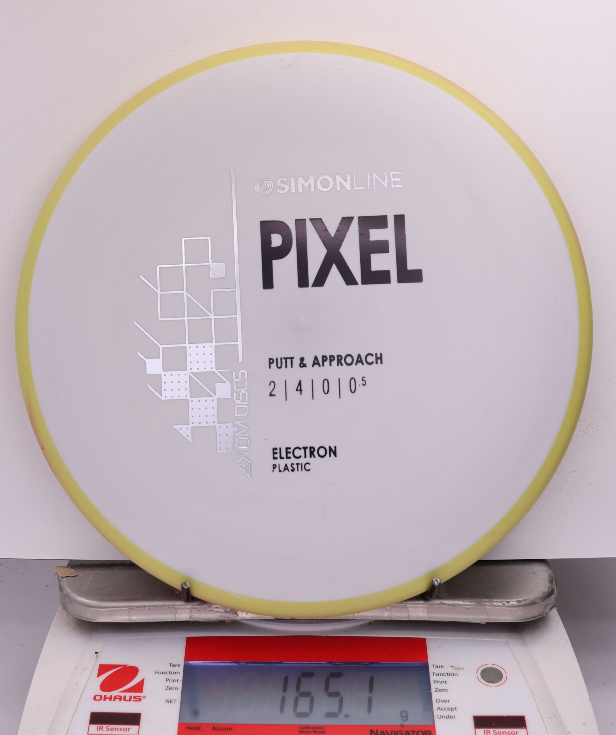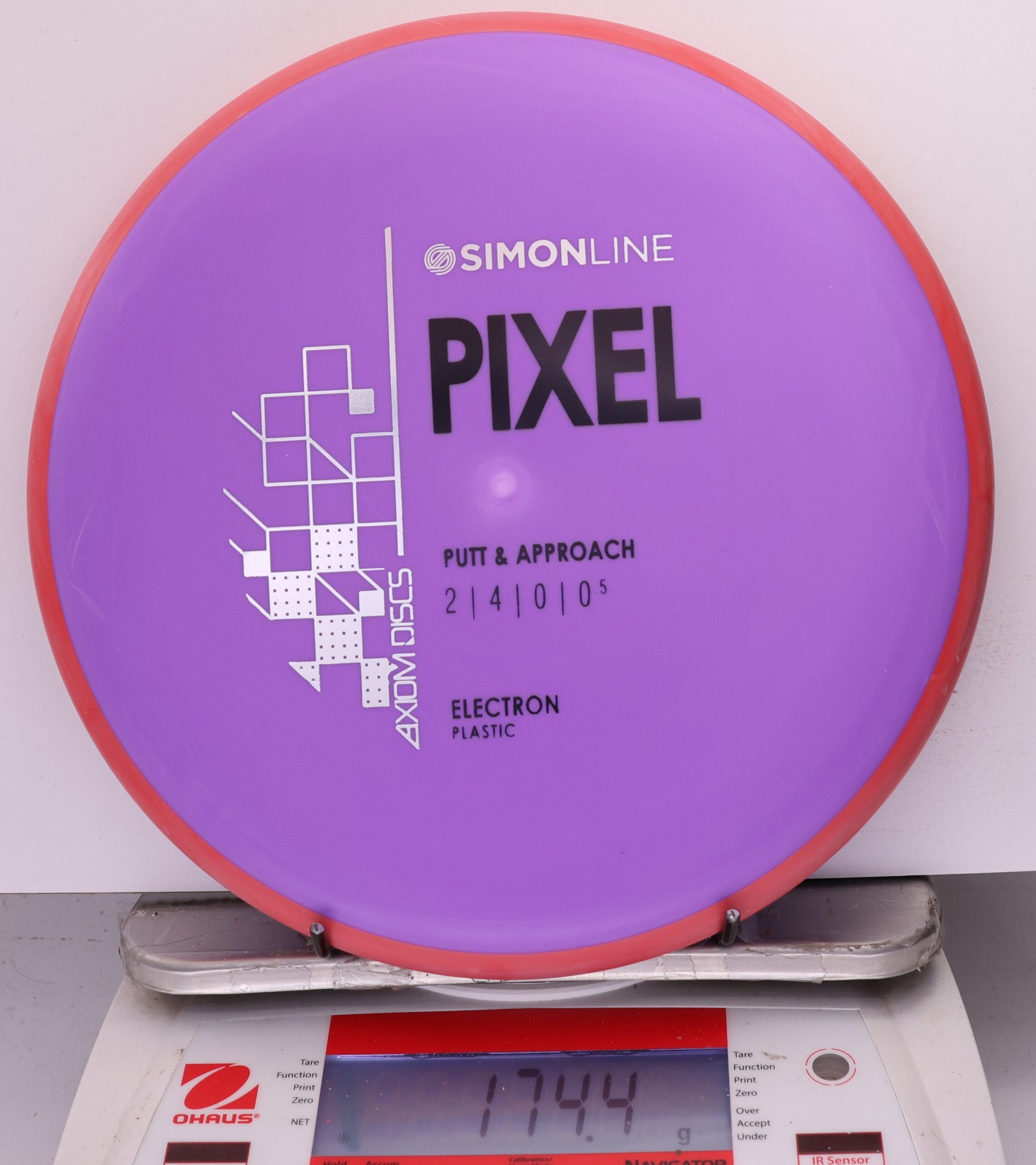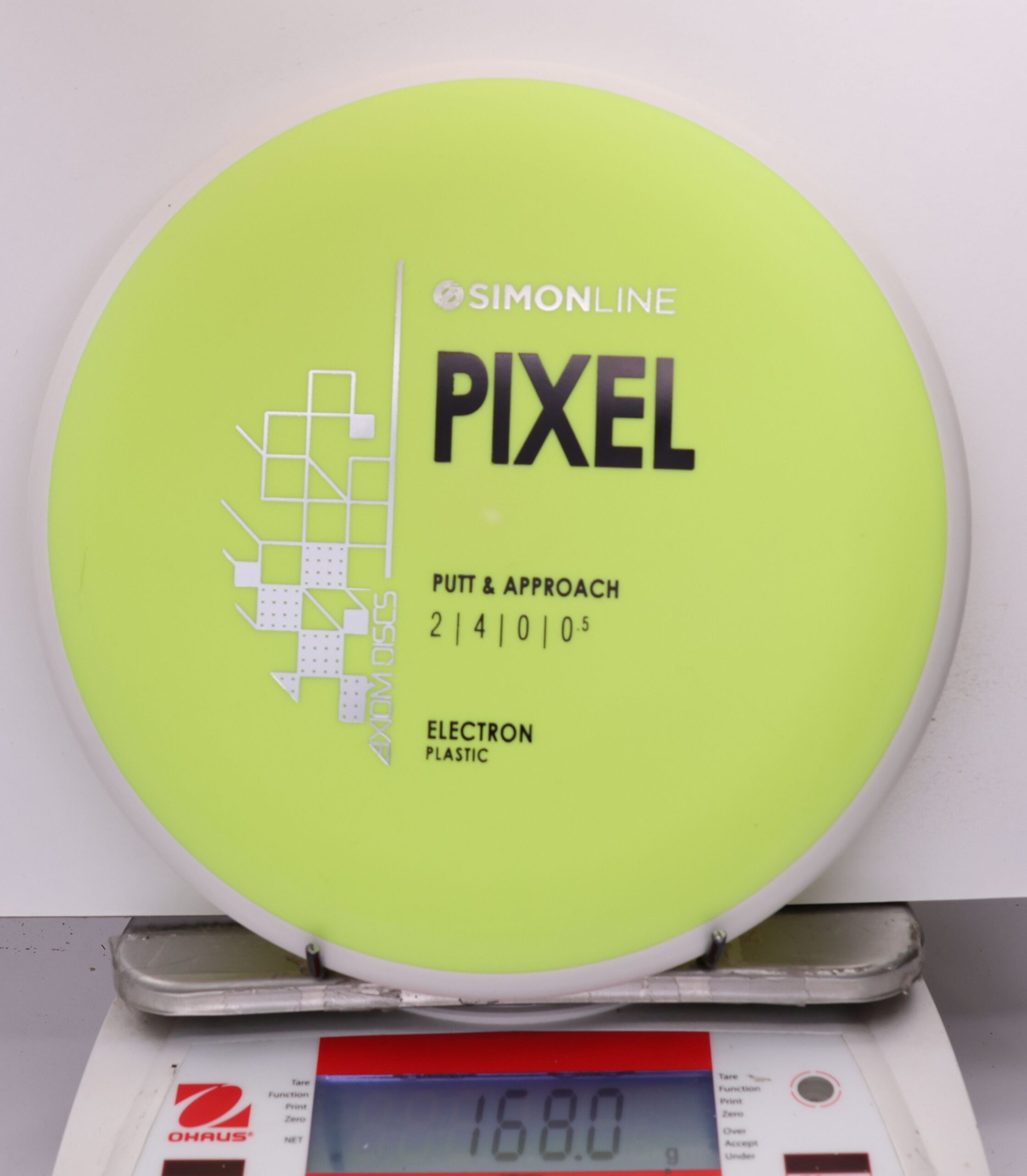 The Axiom Simon Line Electron Soft Pixel is a straight-stable putter with flight ratings of 2 | 4 | 0 | 0.5. Designed by Simon Lizotte, it features a deep profile and micro bead, offering exceptional glide and a smooth release.