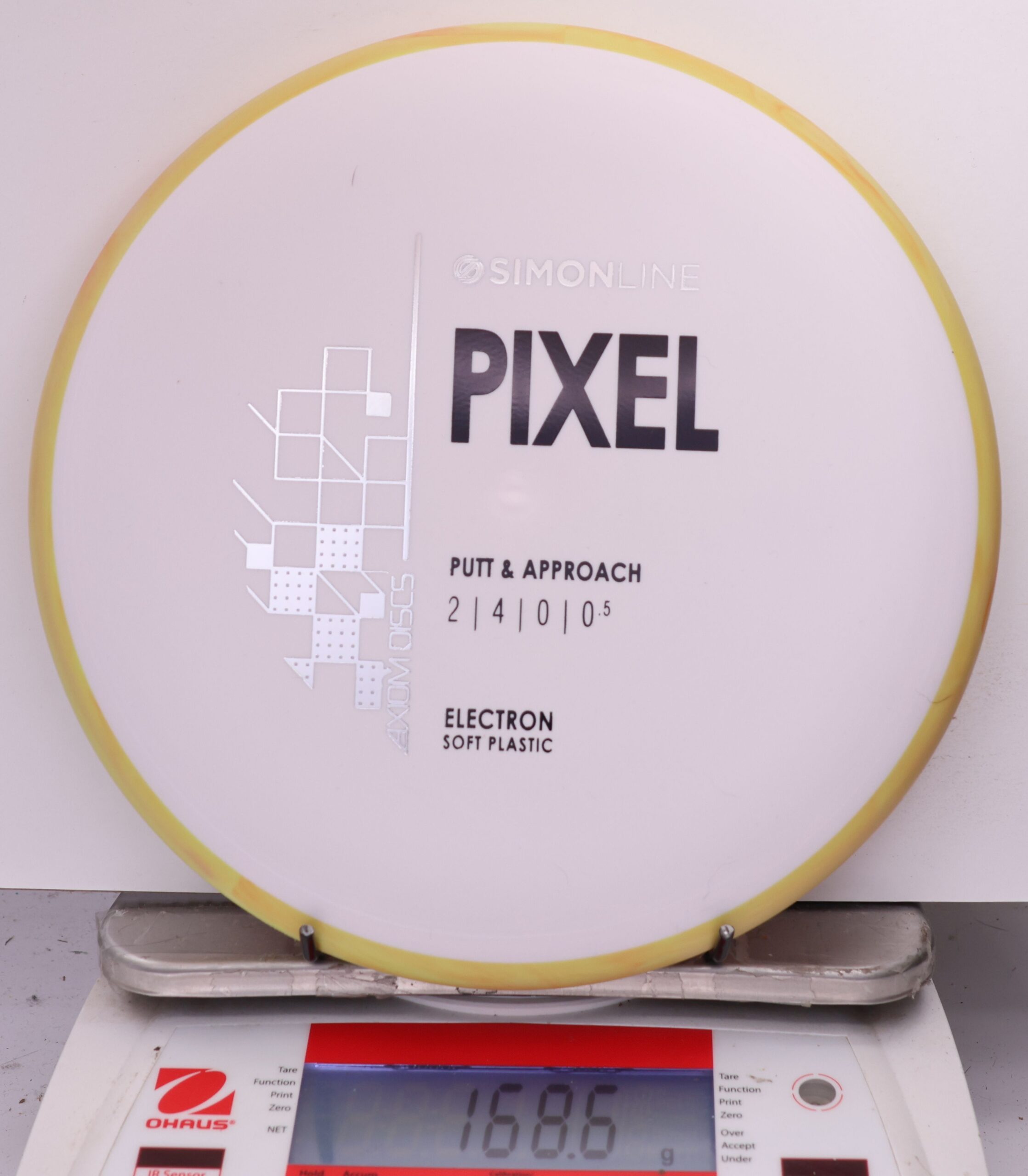 The second disc in the Simon Line is officially here, the Electron Pixel! Debuting with flight numbers of 2 | 4 | 0 | 0.5, the Pixel has a deep profile with a small micro bead, perfect for getting that full grip feeling. Off the tee, the Pixel is a straight/stable flier and will reliably hold any line it’s thrown on with a minimal amount of fade back. However, don’t let the low speed fool you – the Pixel can certainly go the distance, especially with the right wind conditions. On the putting green, whether you’re in C1 or C2, the Pixel shines with the right amount of glide to carry right into the chains.
