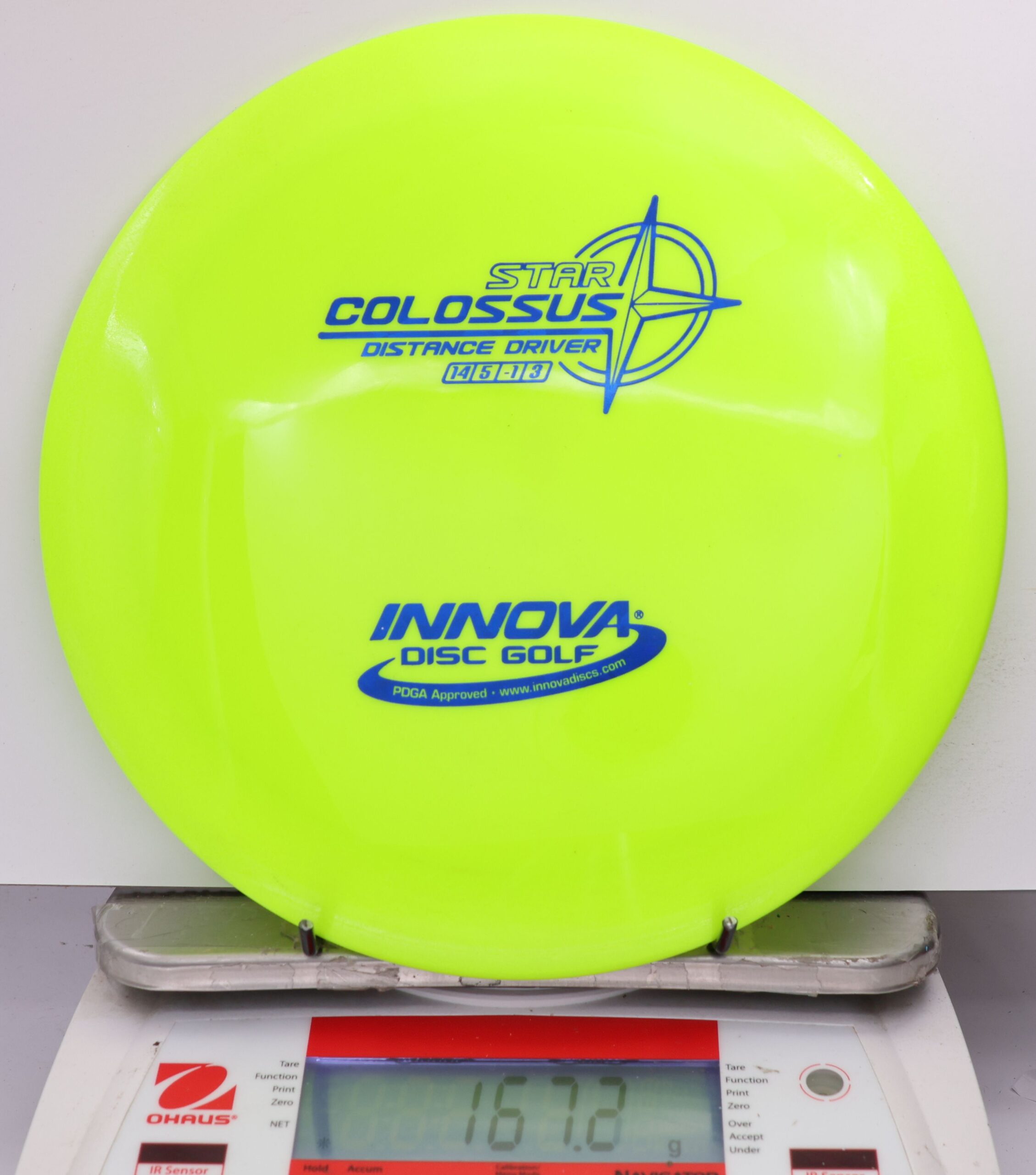 Innova Star Colossus delivers max-distance control with predictable turn-to-fade performance in premium Star plastic.