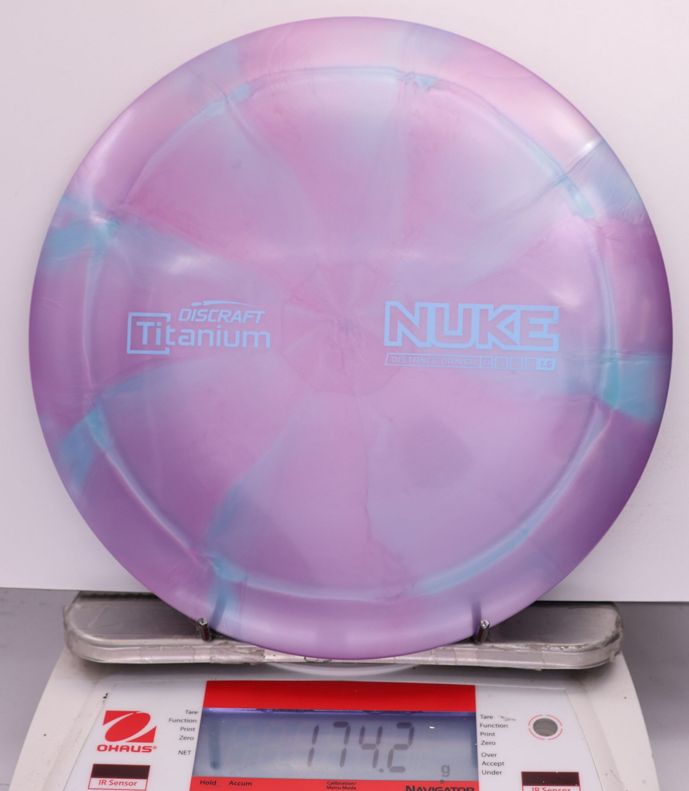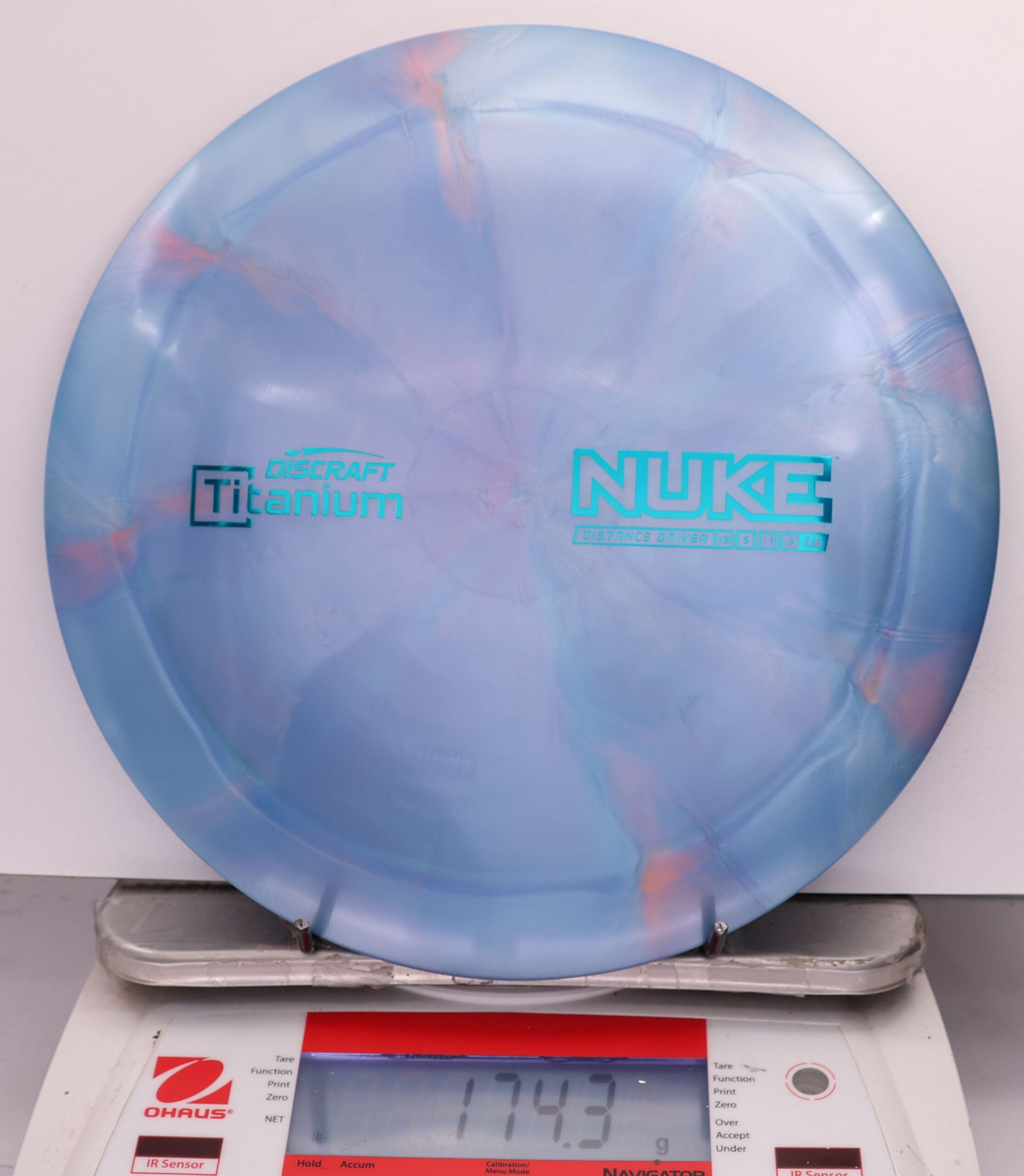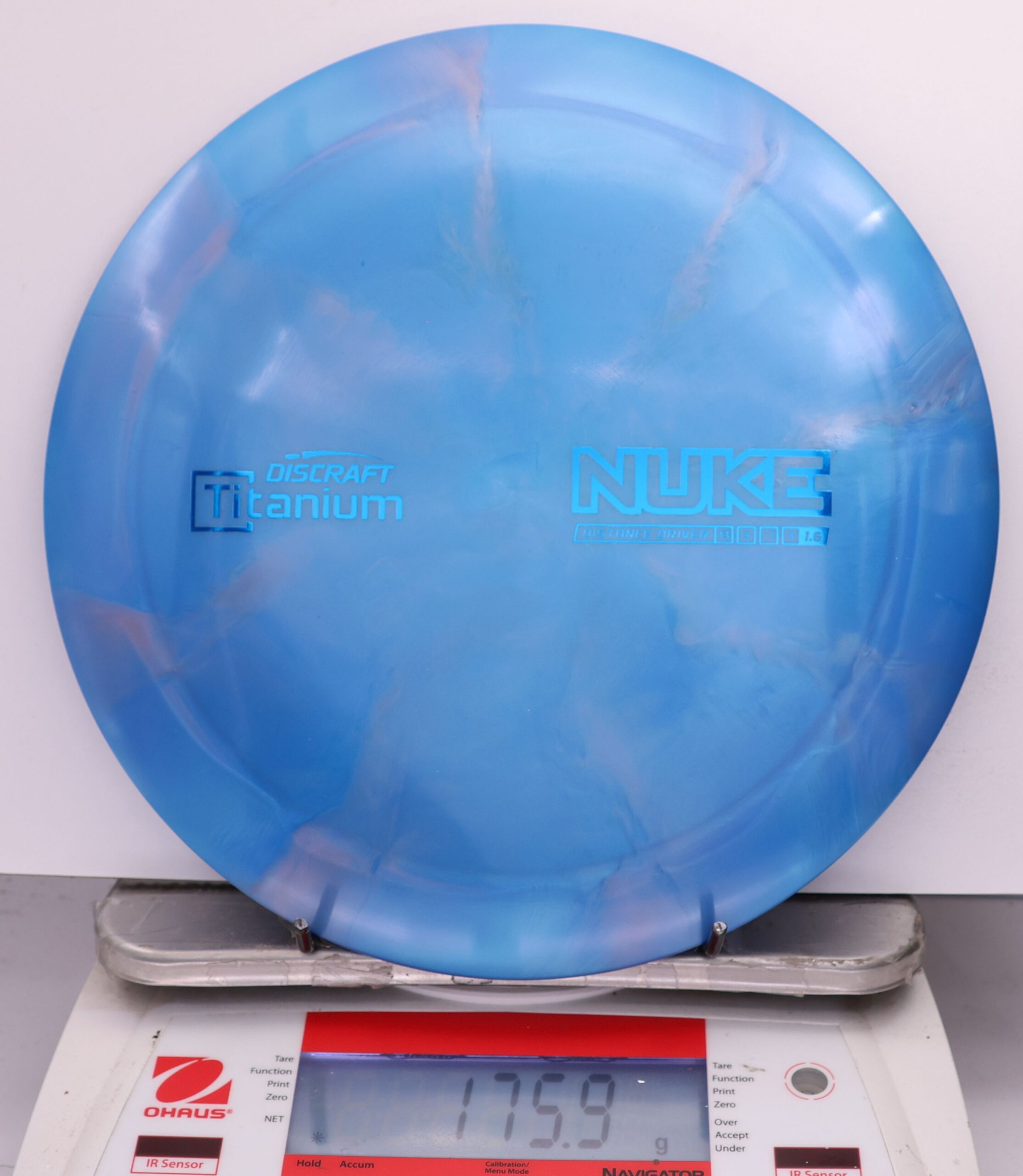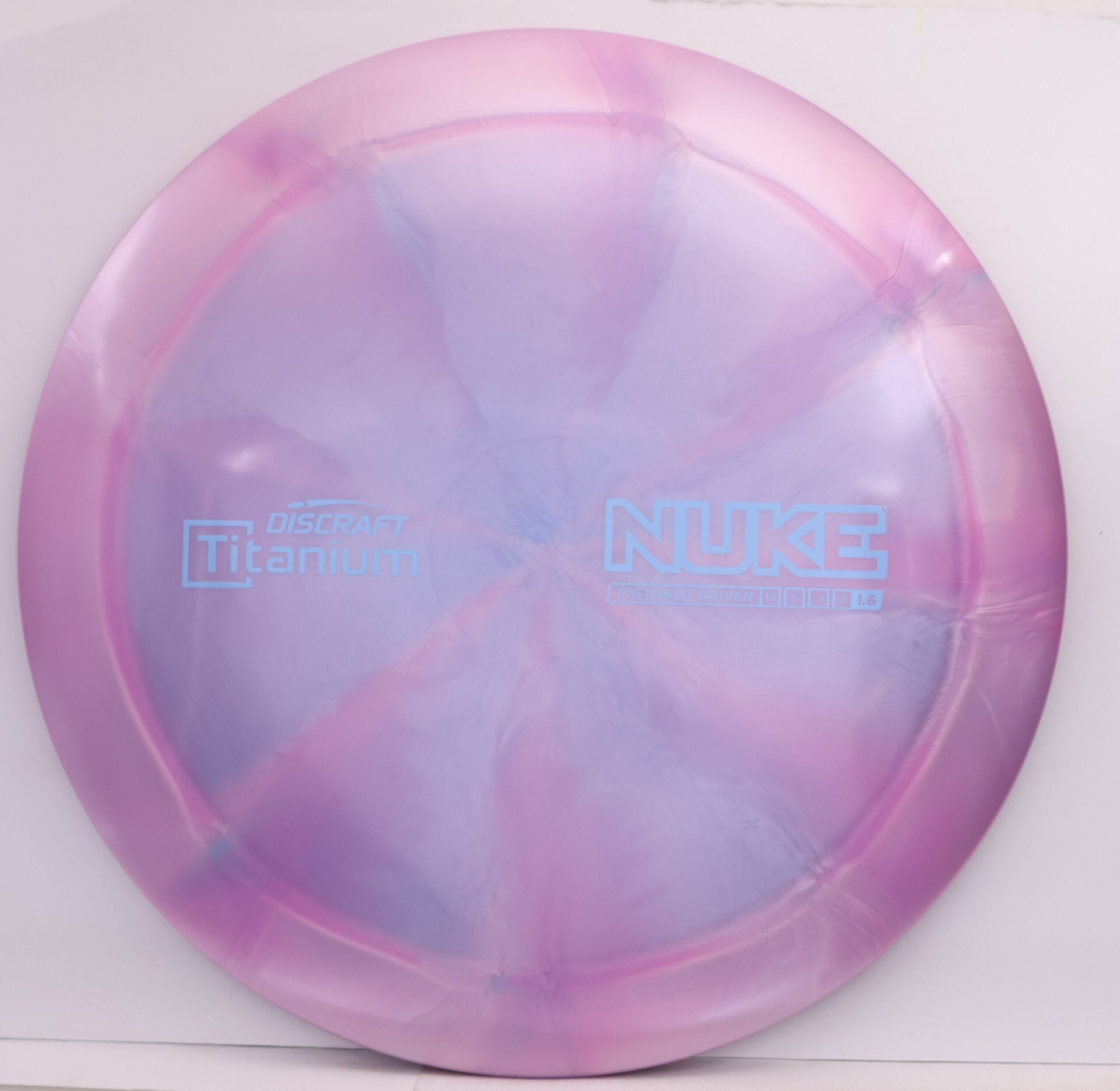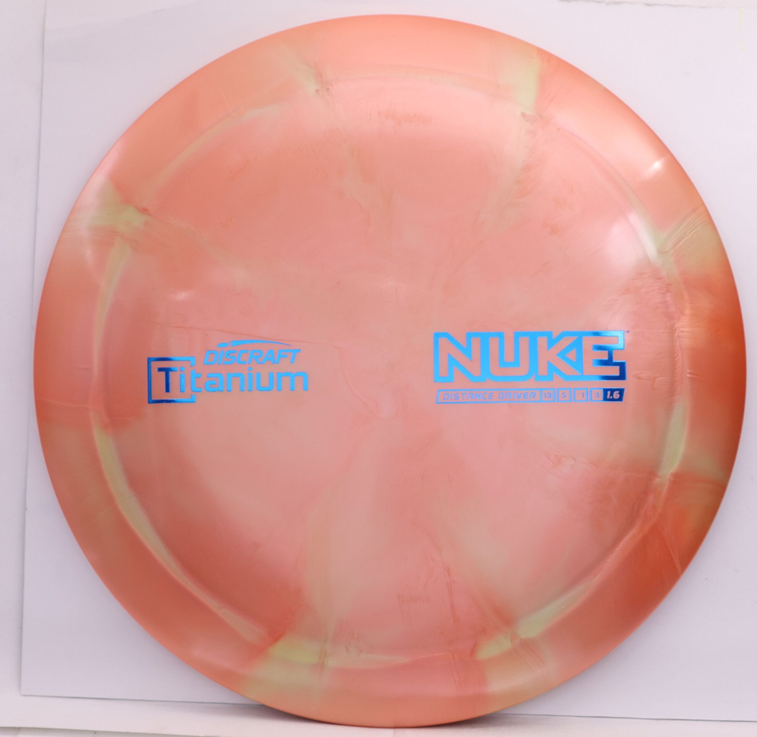 Discraft says: Longer drives are now as easy as pushing a button: NUKE delivers virtually effortless maximum distance for moderate to expert players. The wide, heavy rim and refined aerodynamic engineering give NUKE unparalleled velocity, while a 1.6 stability rating makes it more useful to a wider range of players.