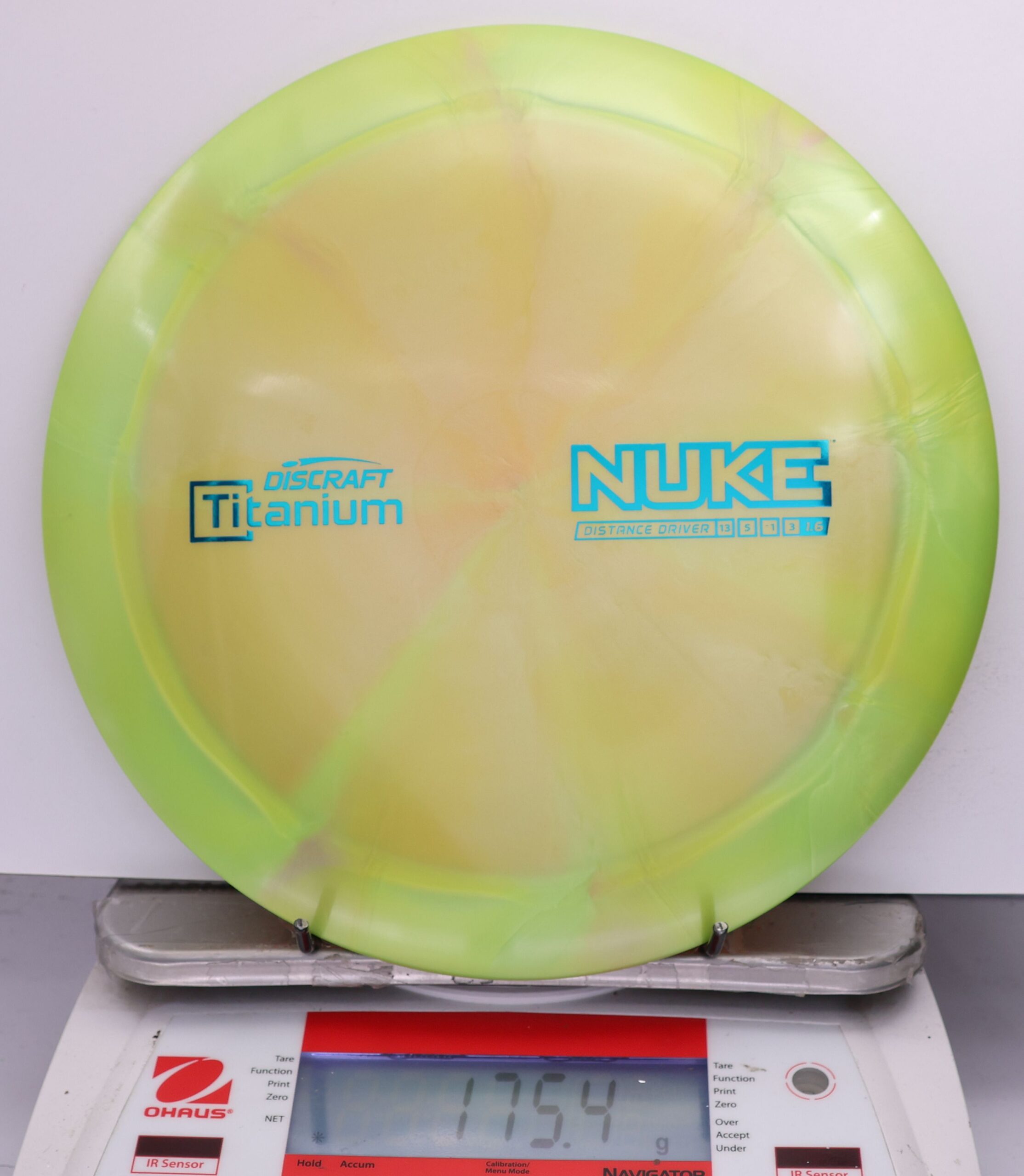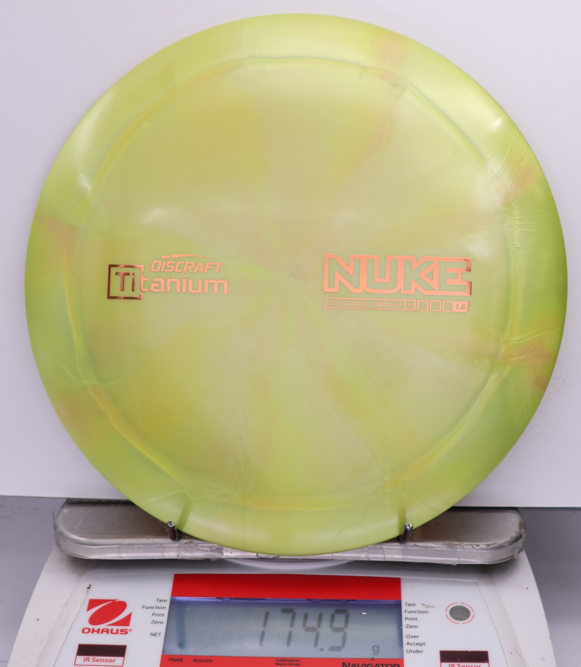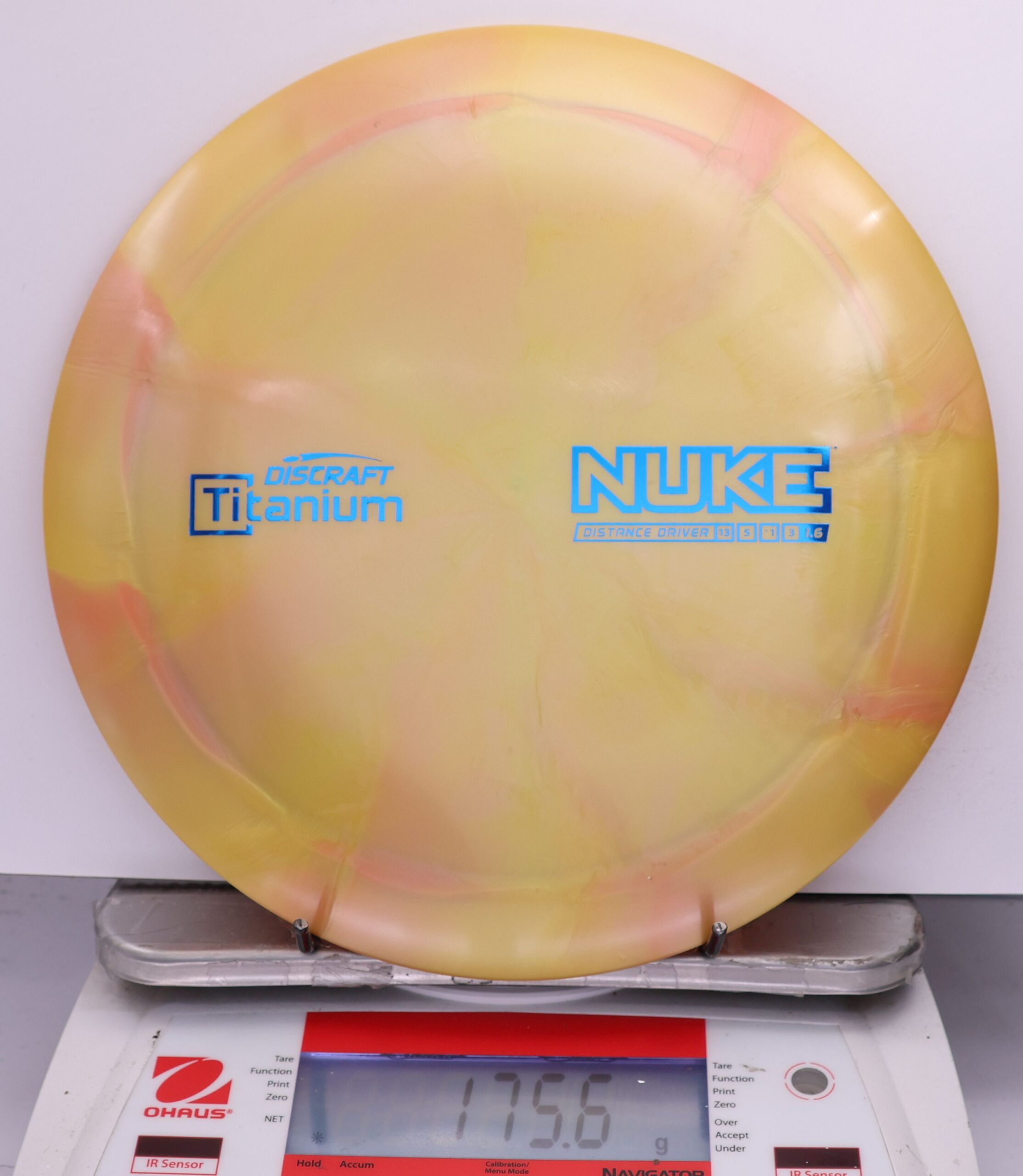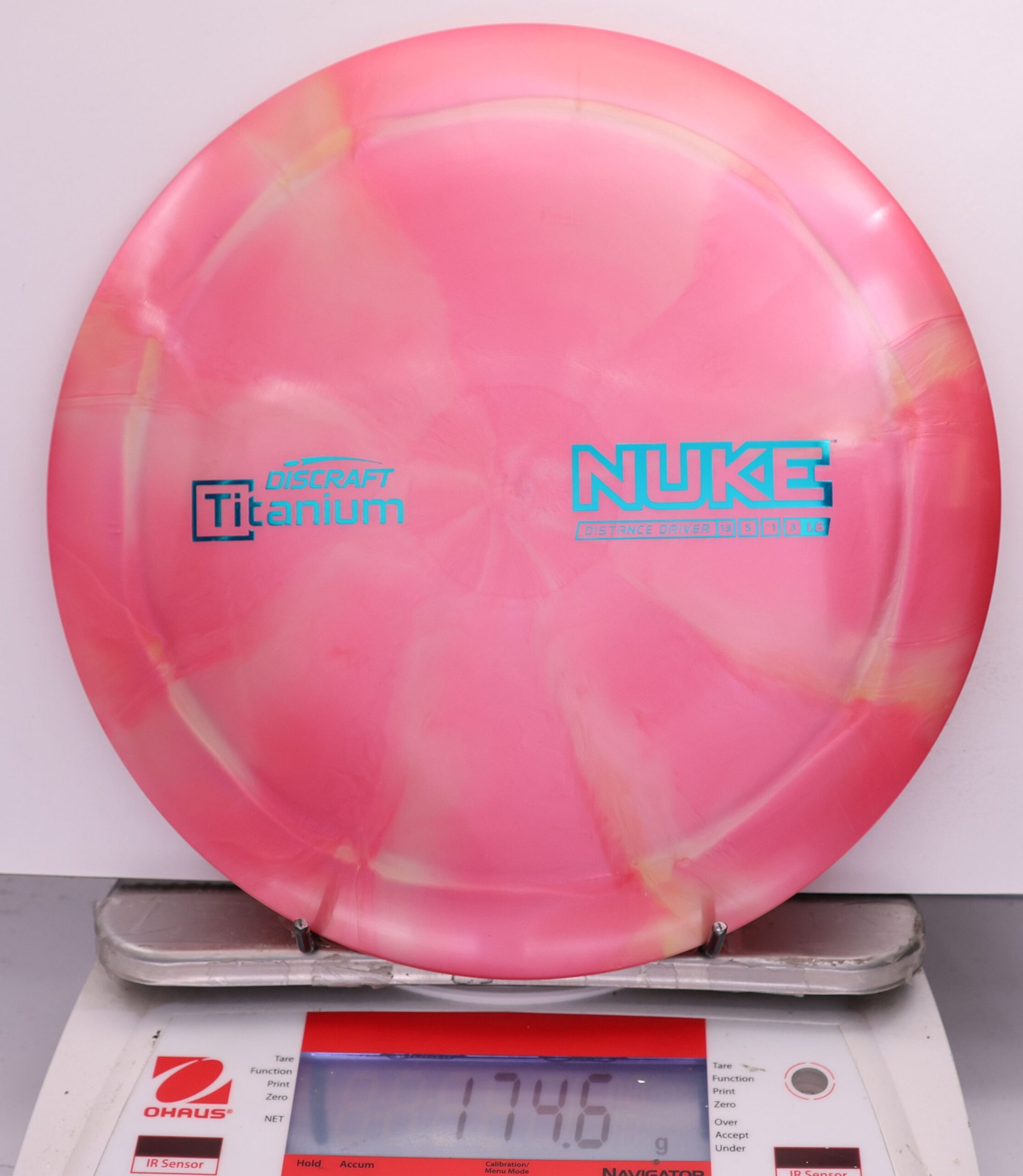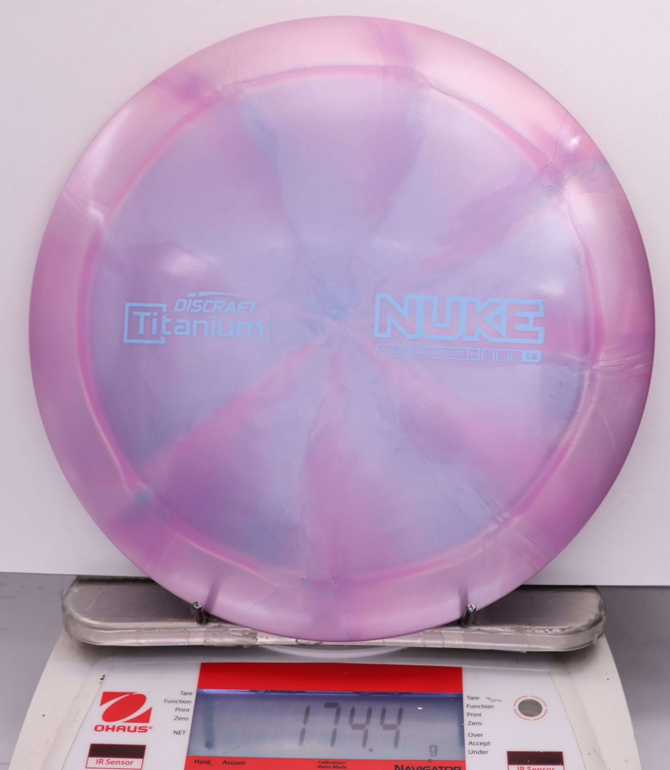 Discraft says: Longer drives are now as easy as pushing a button: NUKE delivers virtually effortless maximum distance for moderate to expert players. The wide, heavy rim and refined aerodynamic engineering give NUKE unparalleled velocity, while a 1.6 stability rating makes it more useful to a wider range of players.