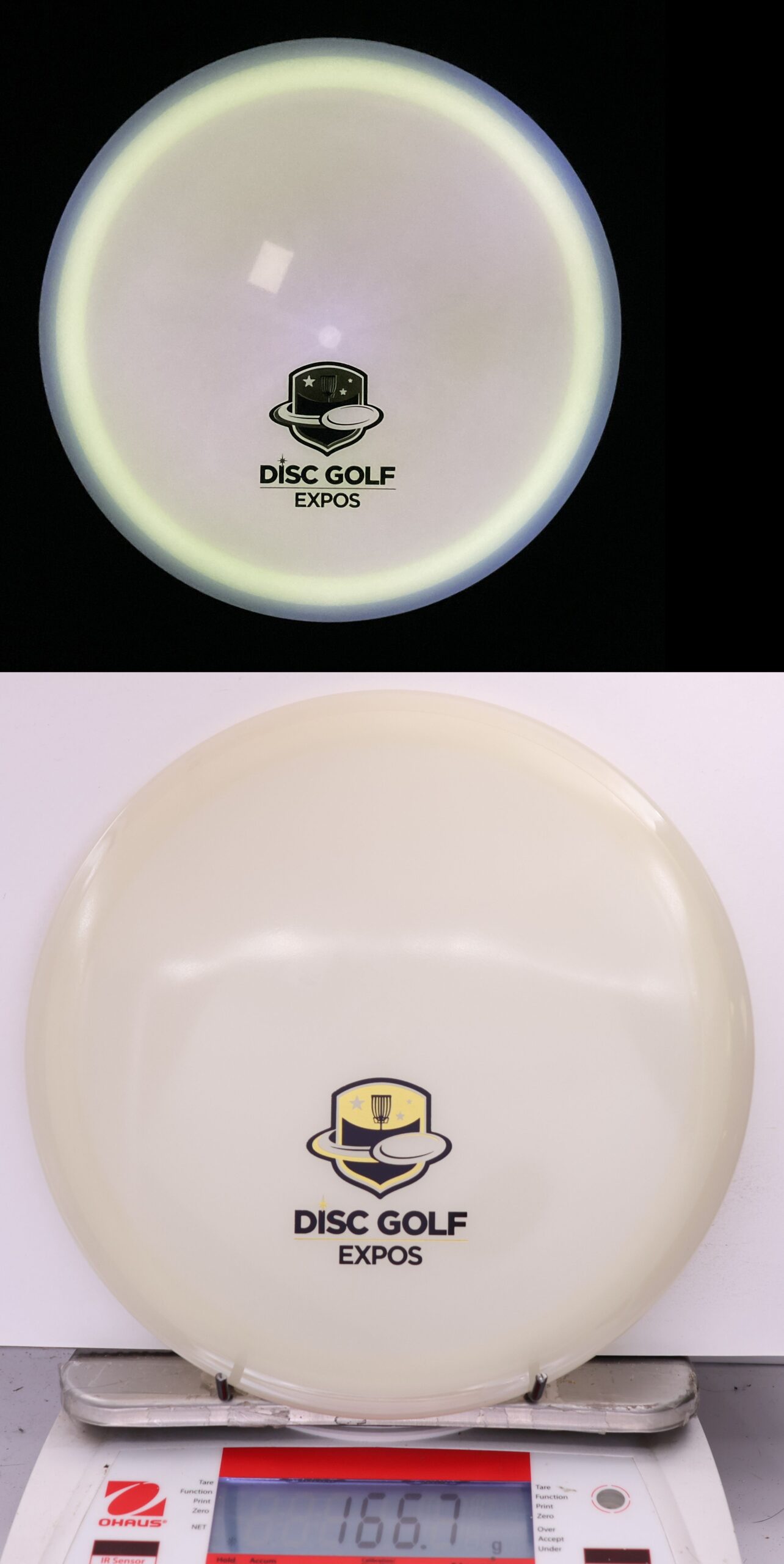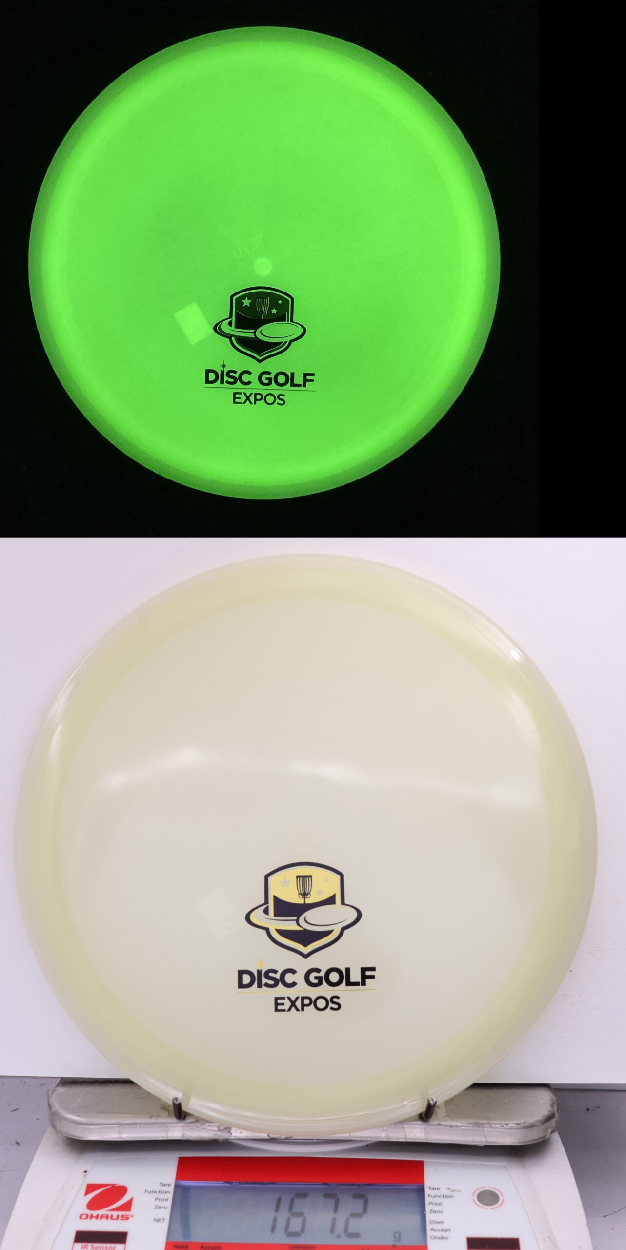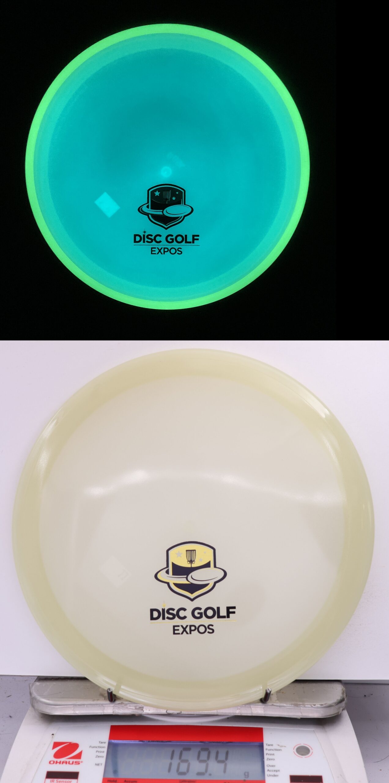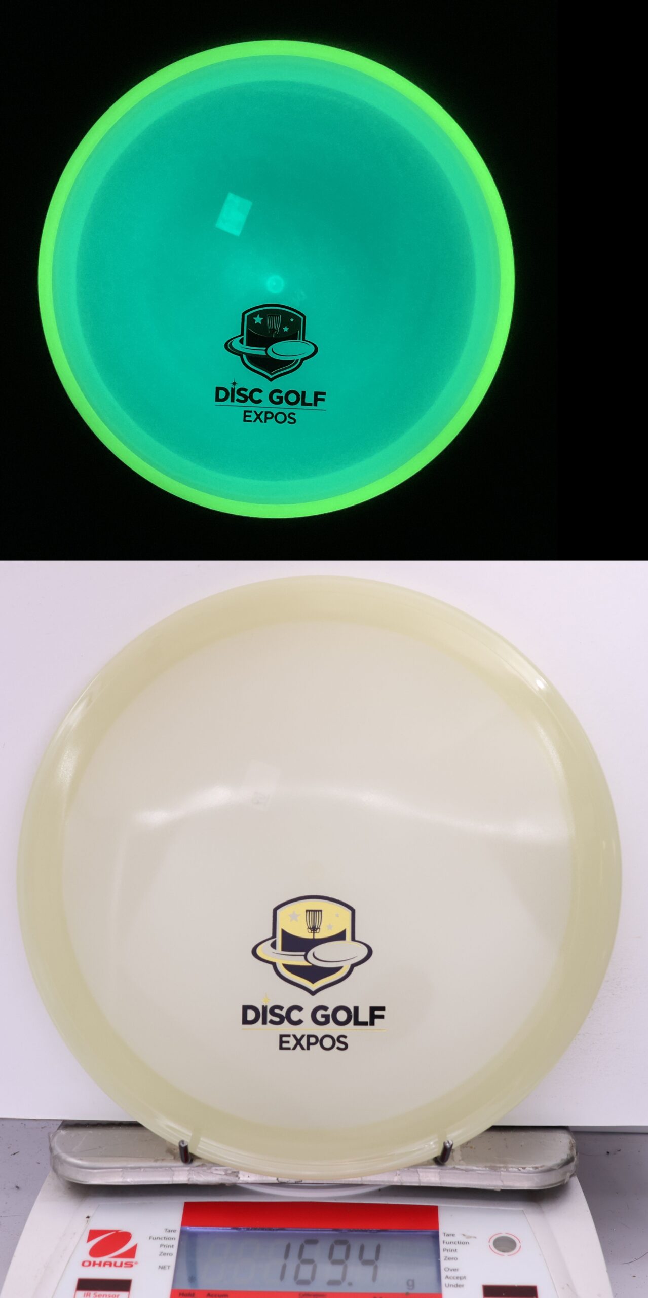 Totally Eclipsed out! Both the rim and the flight plate glow on these, and we take pictures of them glowing so you can pick out the one you want!