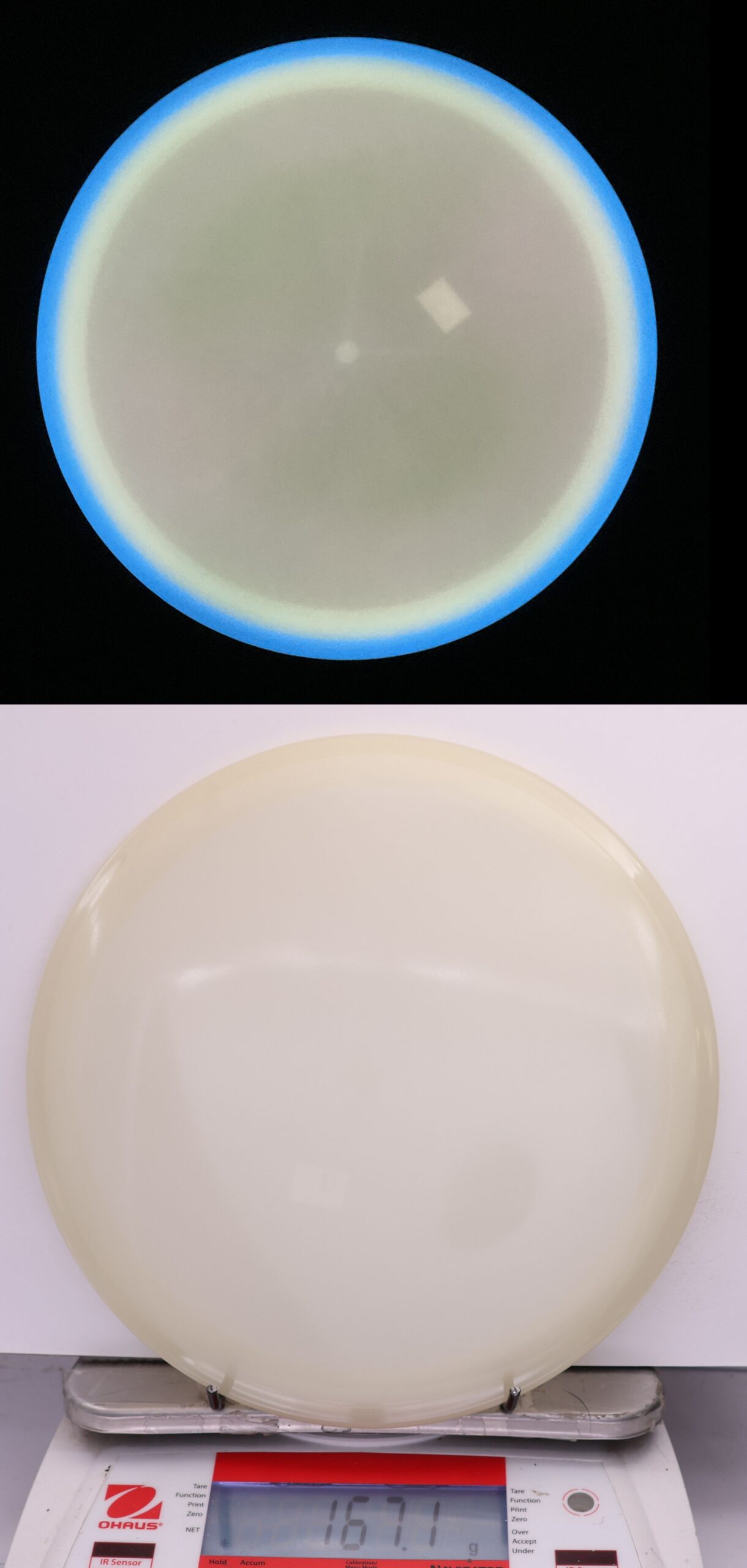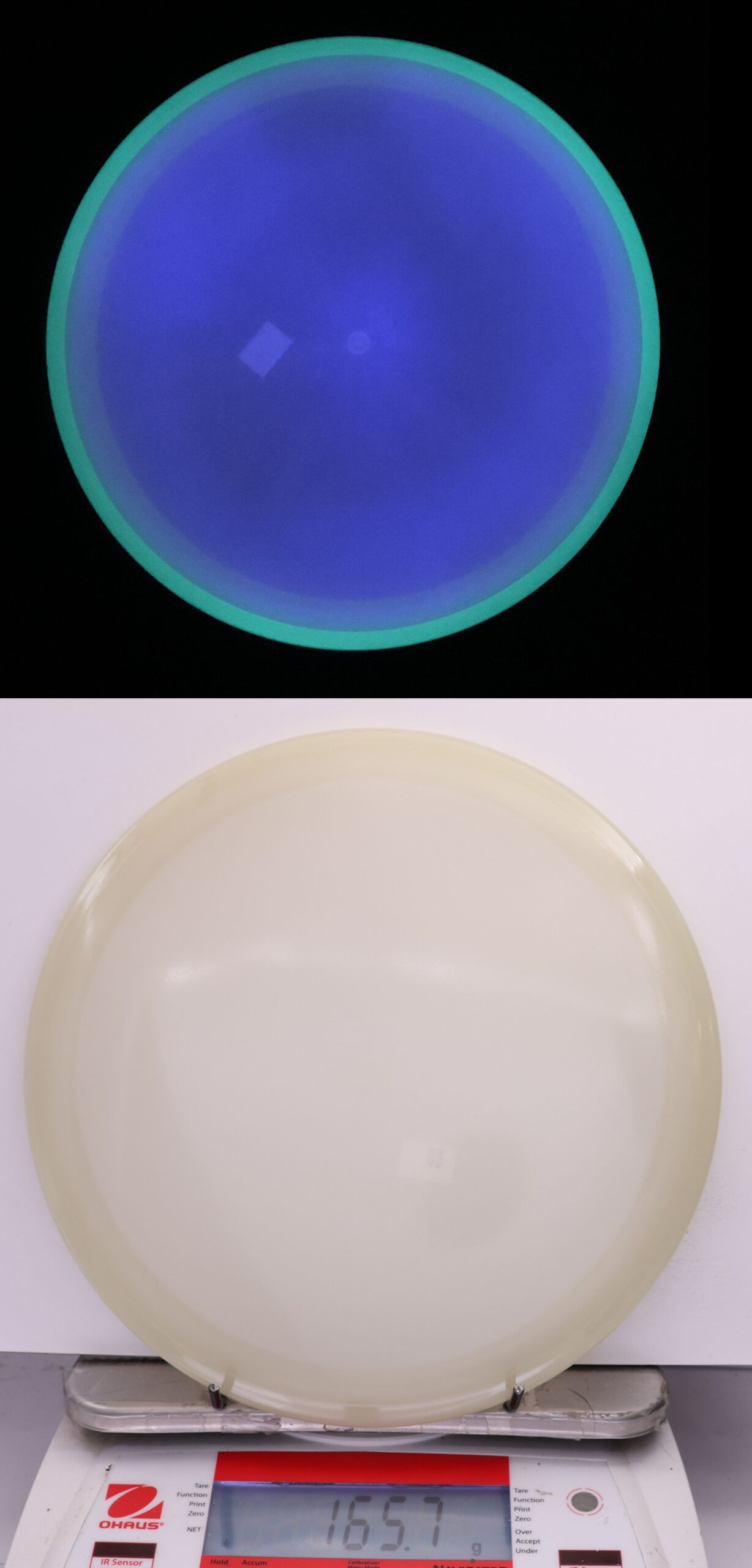 Totally Eclipsed out! Both the rim and the flight plate glow on these, and we take pictures of them glowing so you can pick out the one you want!