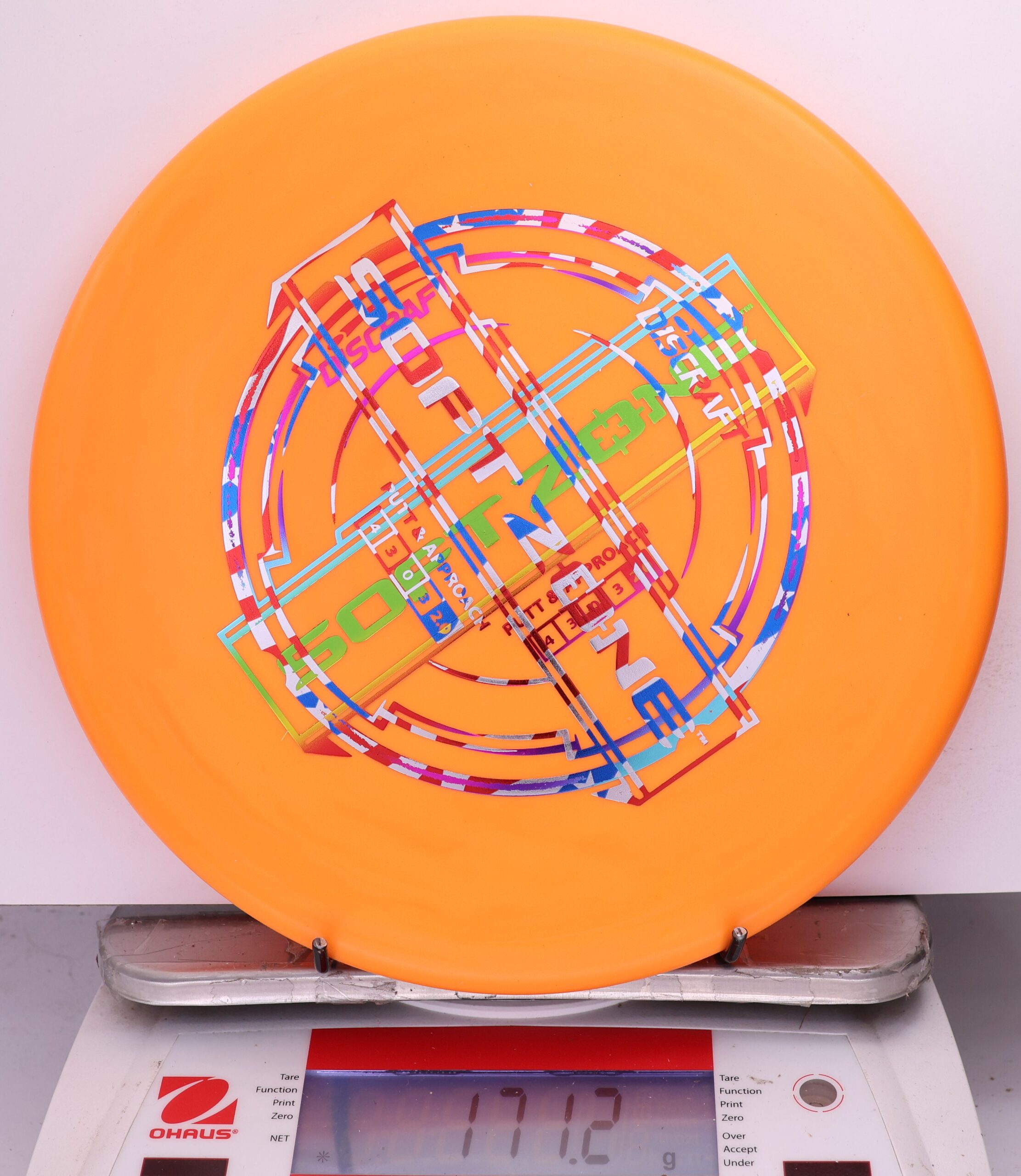The Discraft X-Out Putter Line Soft Zone delivers reliable overstability in tacky, flexible baseline plastic — ideal for forehand approaches, spike hyzers, and headwinds. Minor cosmetic blemishes only.